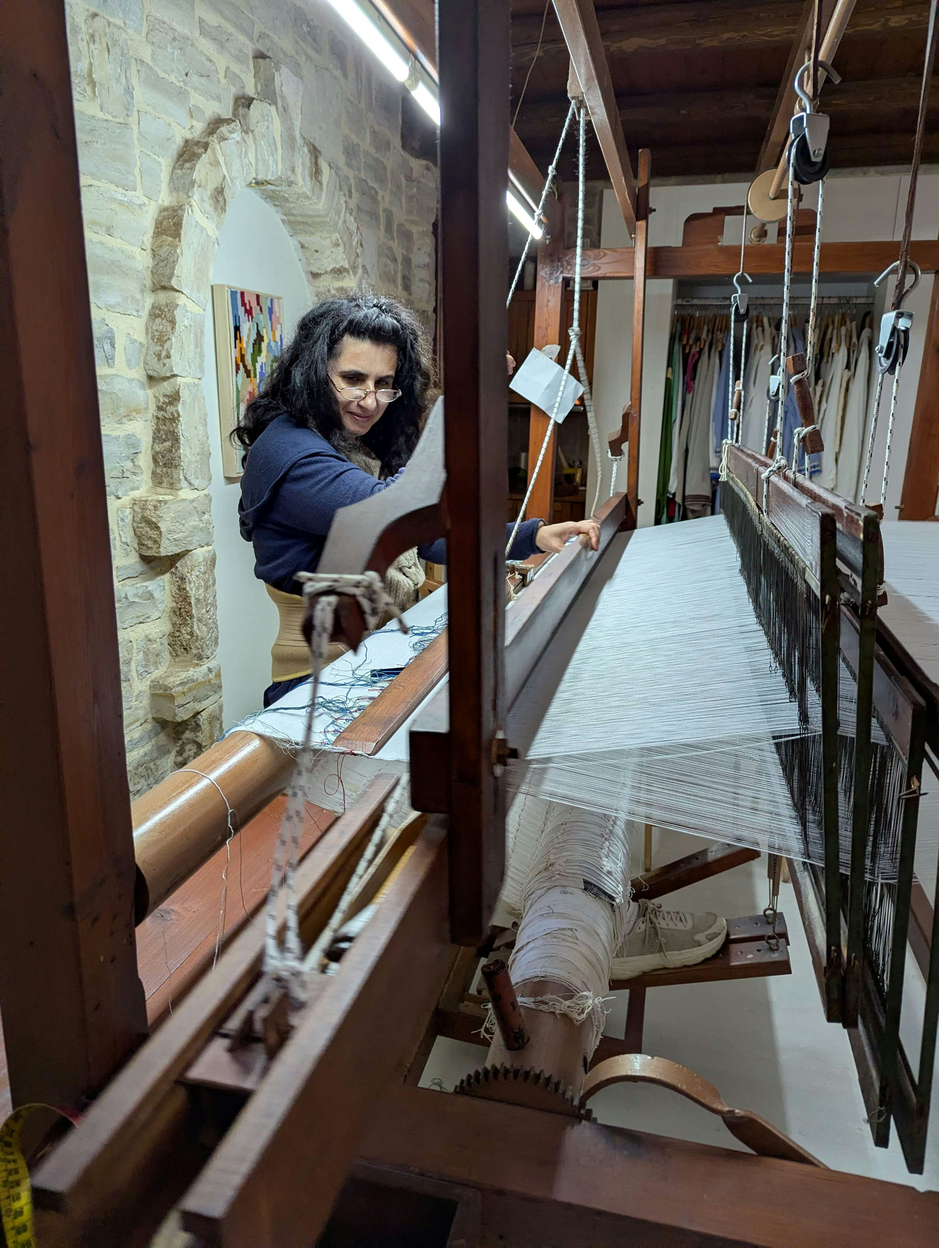 Such an amazing experience. It was fascinating to use the looms and learn the embroidery technique. Alexandra, Nektaria, and Simona were excellent hosts, and made my time there very comfortable and enjoyable. The studio was a wonderful place to spend time, as was Crete. I found myself sorry to leave, and hoping to go back again!