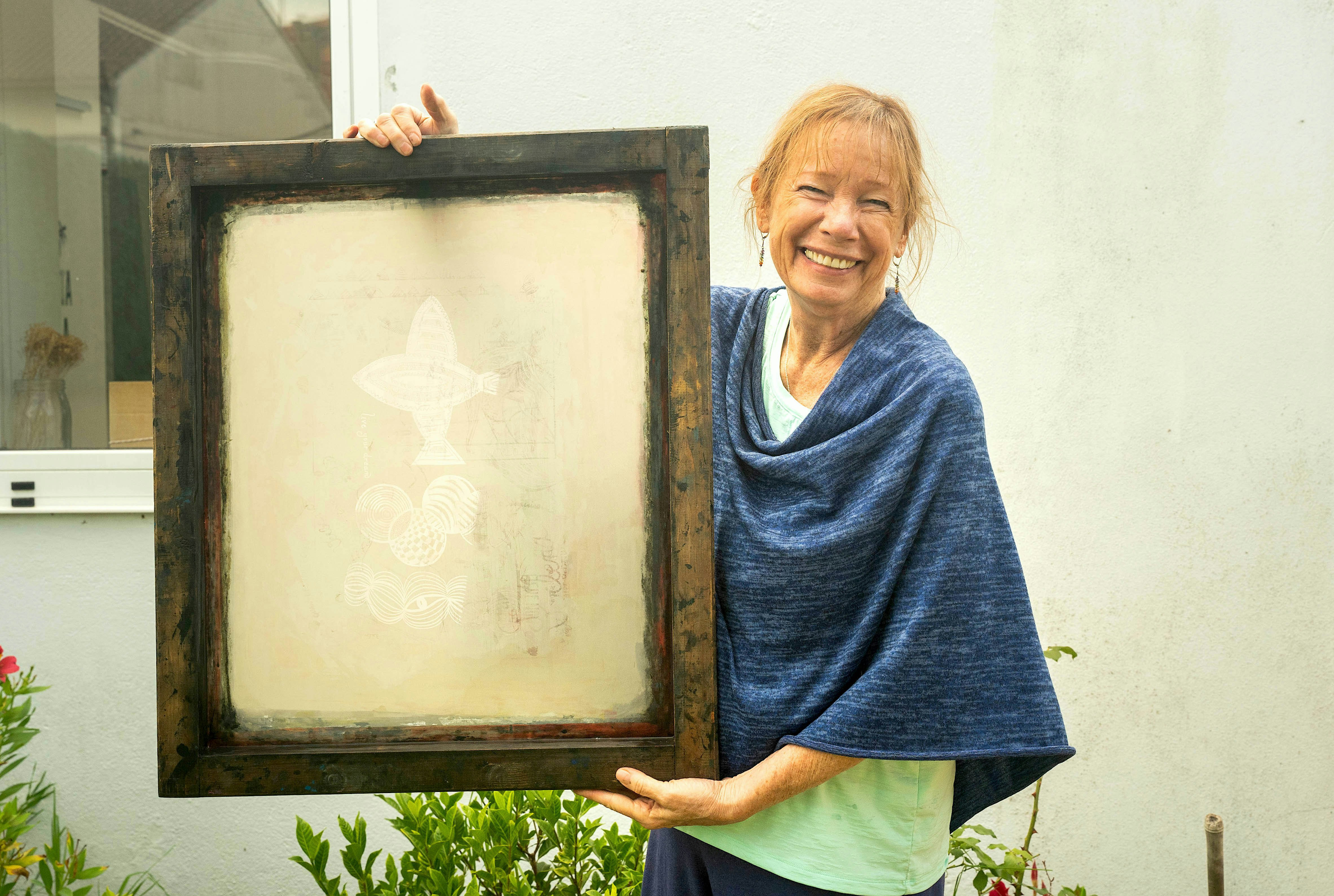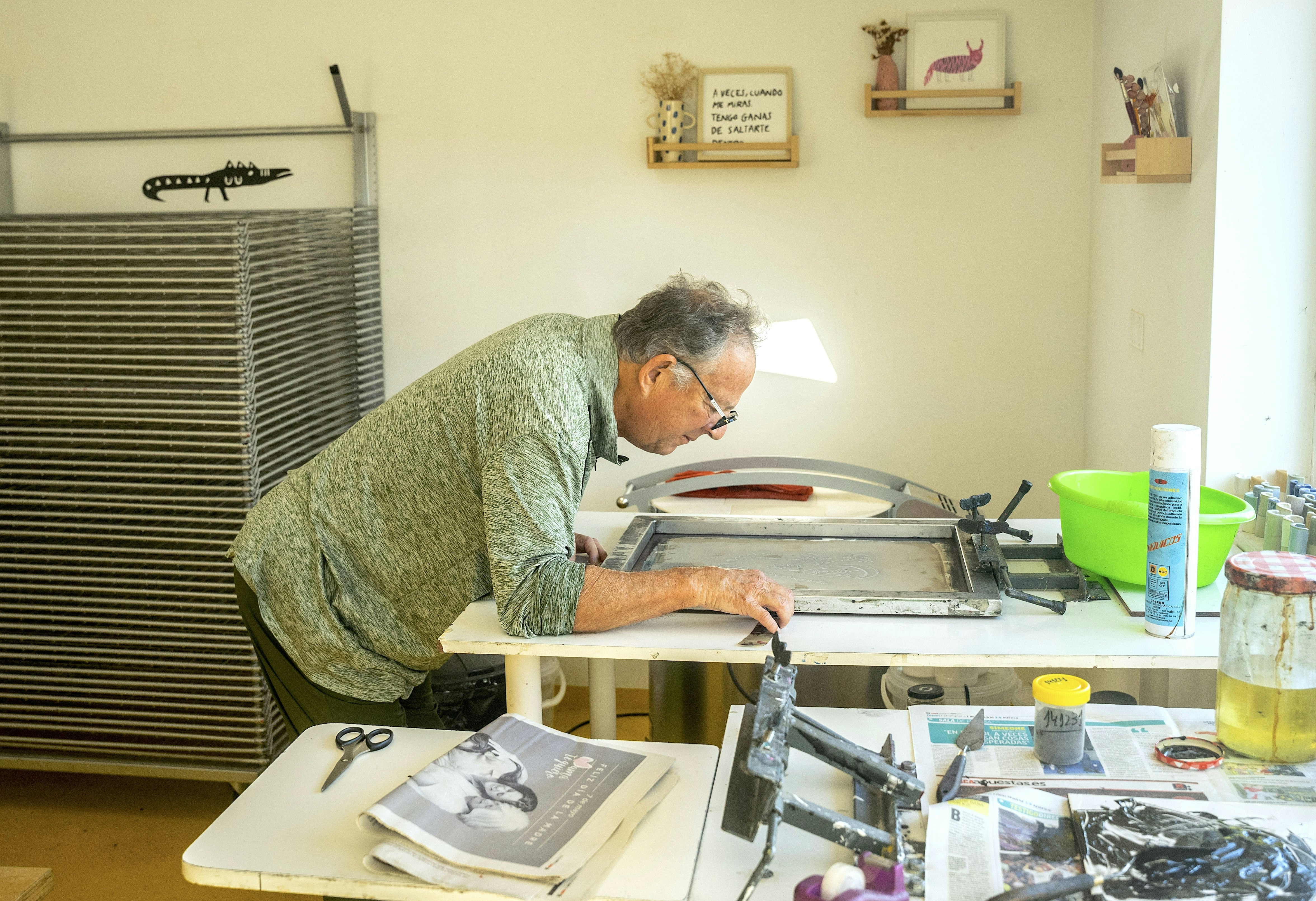 Her grandfather was a sailor on this Atlantic island who loved from his heart. He inspired her to trust in life and pursue art with an open heart and no fear. She transformed her family home into a place for creativity and a refuge for silkscreen lovers. She describes it as a place for those who still wake up every day and think they have something to tell, discover, and above all, feel like they want to do it.