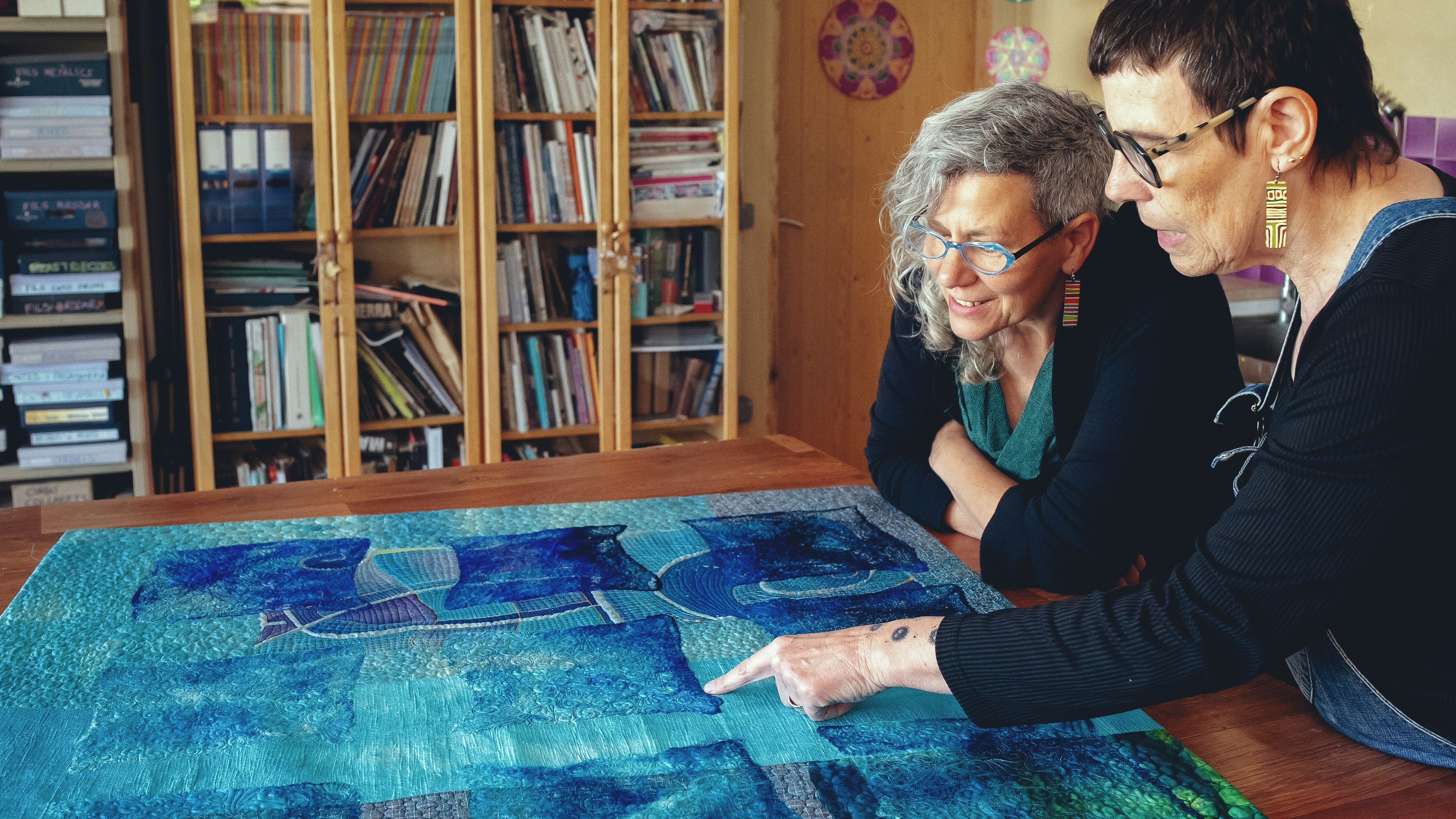 Cecília and Mercè are sisters and textile artists with over 25 years of experience. Introduced to sewing and needlework by their mother at an early age, they transformed a lifelong passion for handicrafts into a refined mastery of silk painting, quilting, embroidery, and textile printing.