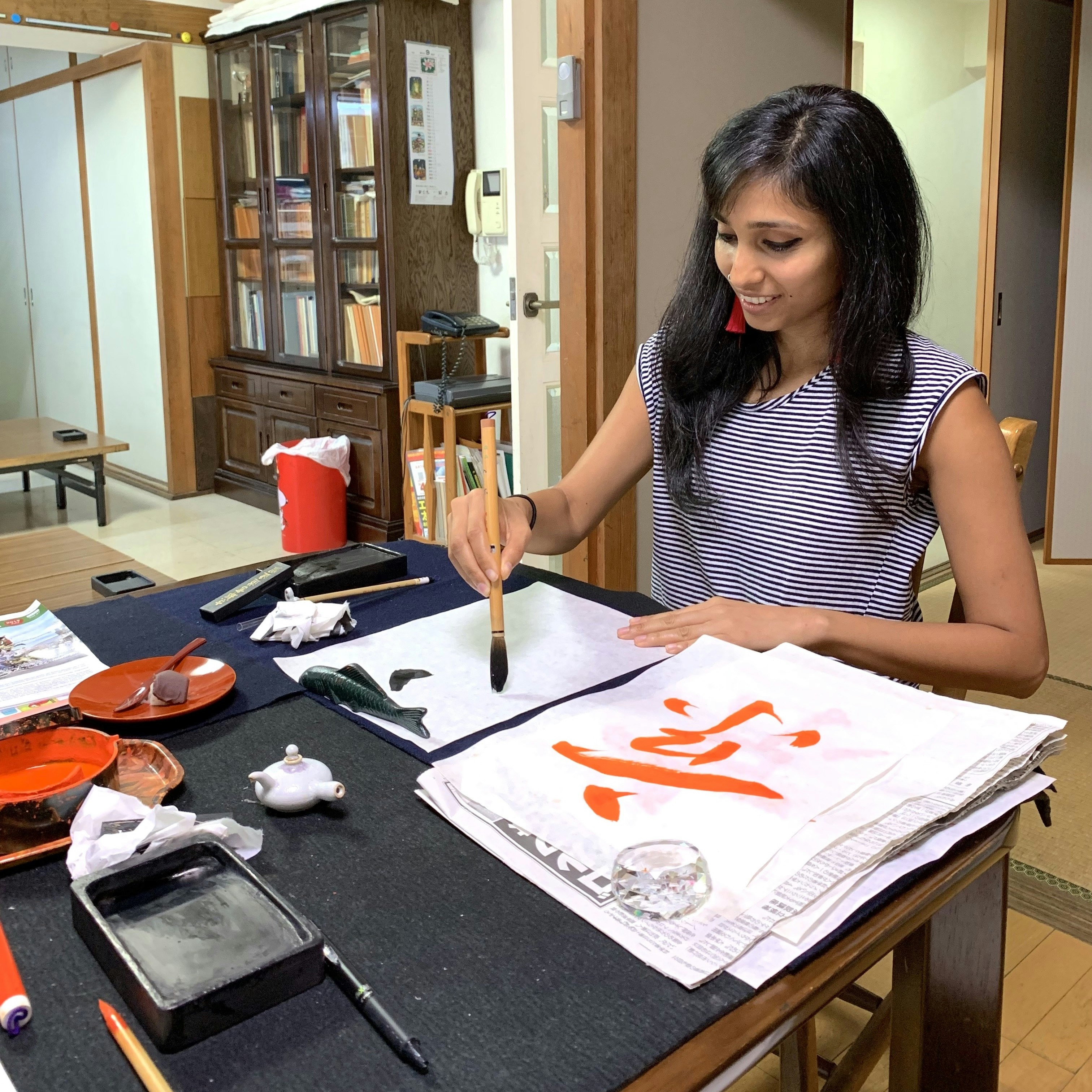 I had a very inspiring four half days with Chikako and an insight into calligraphy. It looks so simple but it is humbling to experience how difficult it is in reality. Chikako is a great teacher and is very committed to her work and students. I highly recommend the experience with her!
