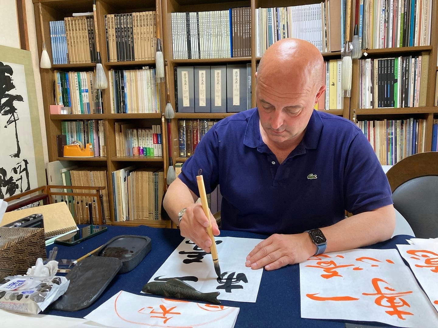 - Learning about different calligraphy tools, brushes and inks.