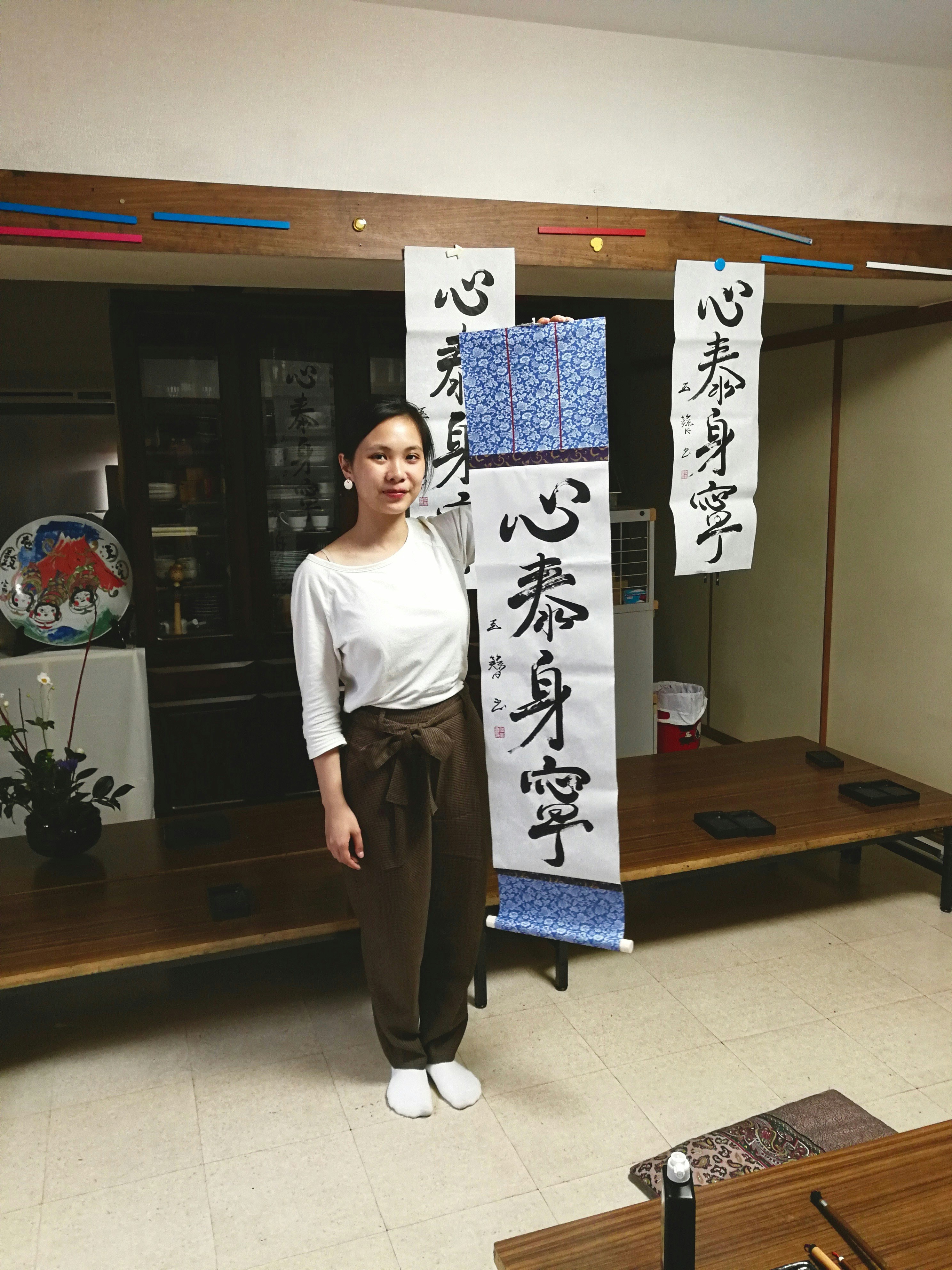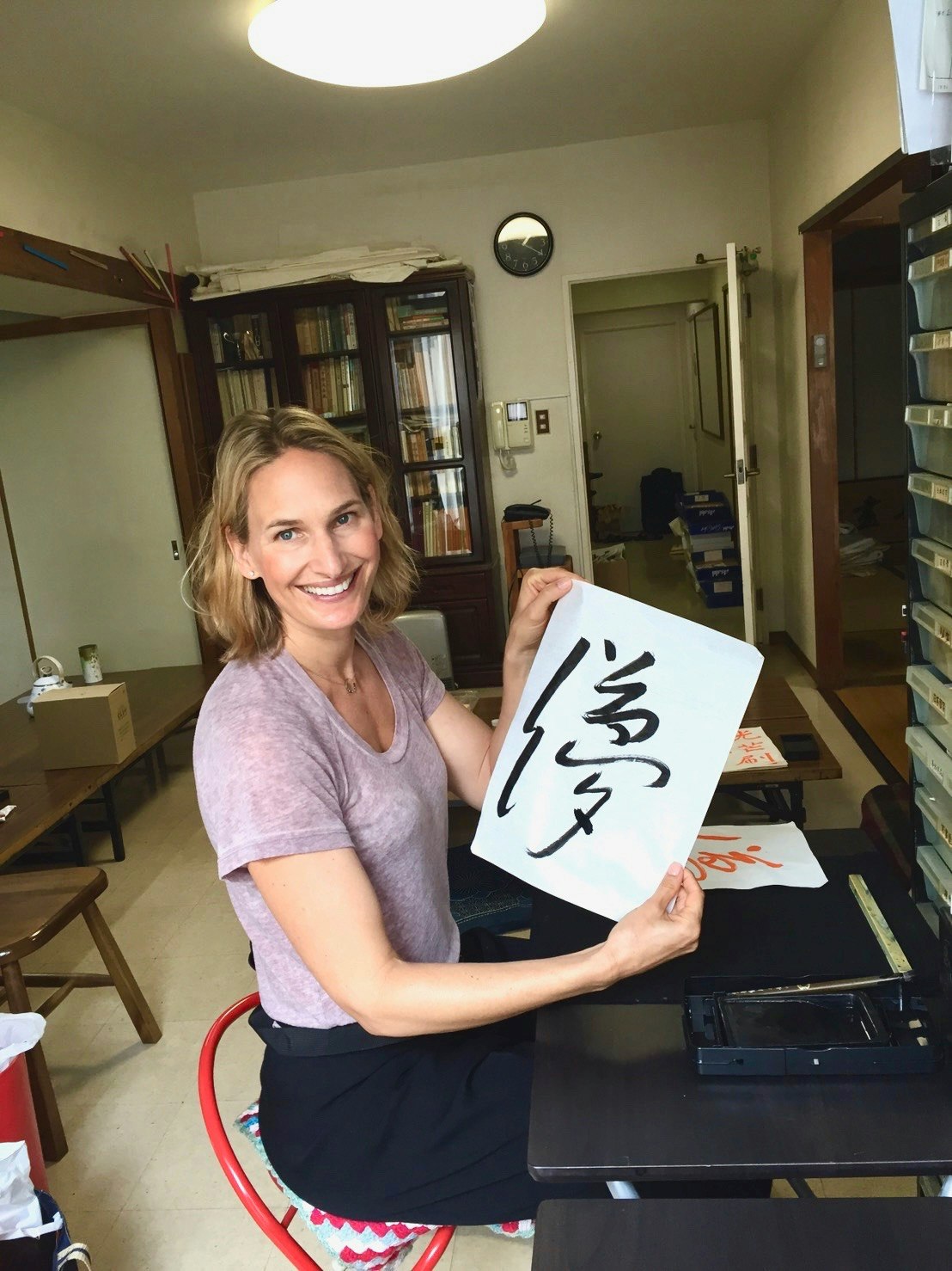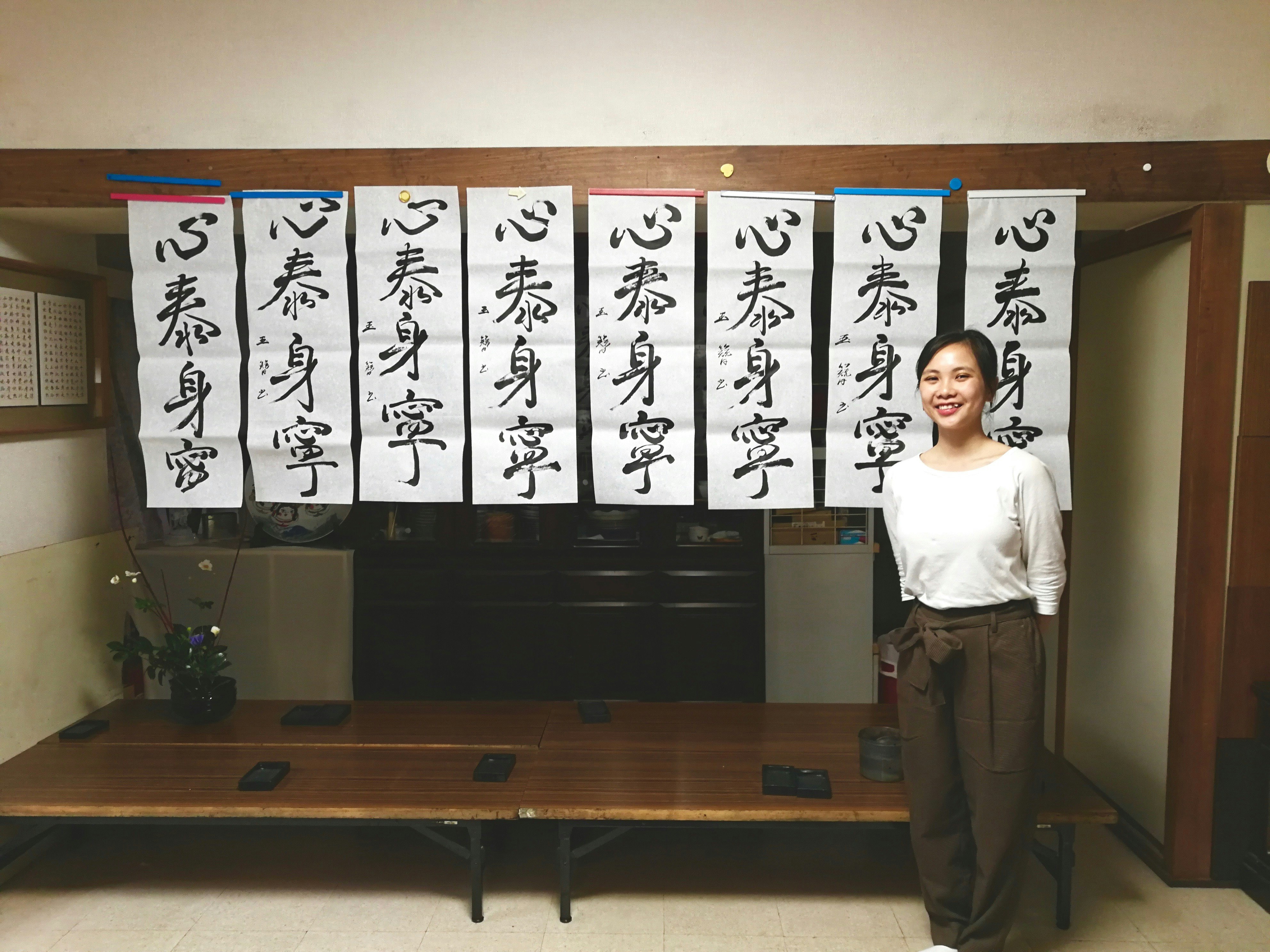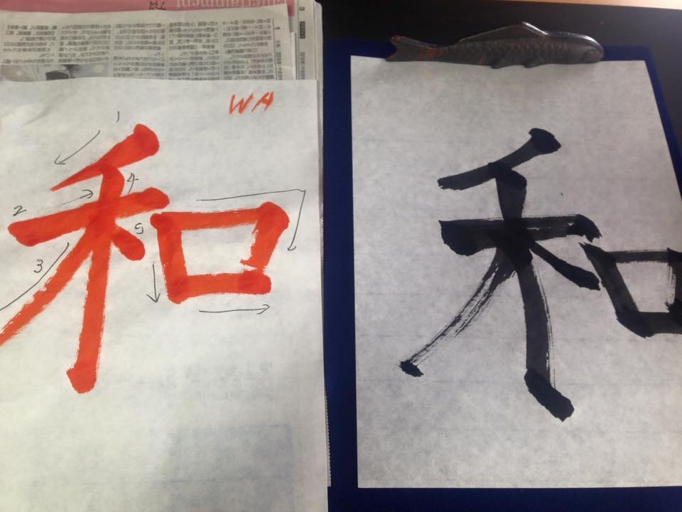 - Practicing calligraphy with Chikako’s students in different studios.