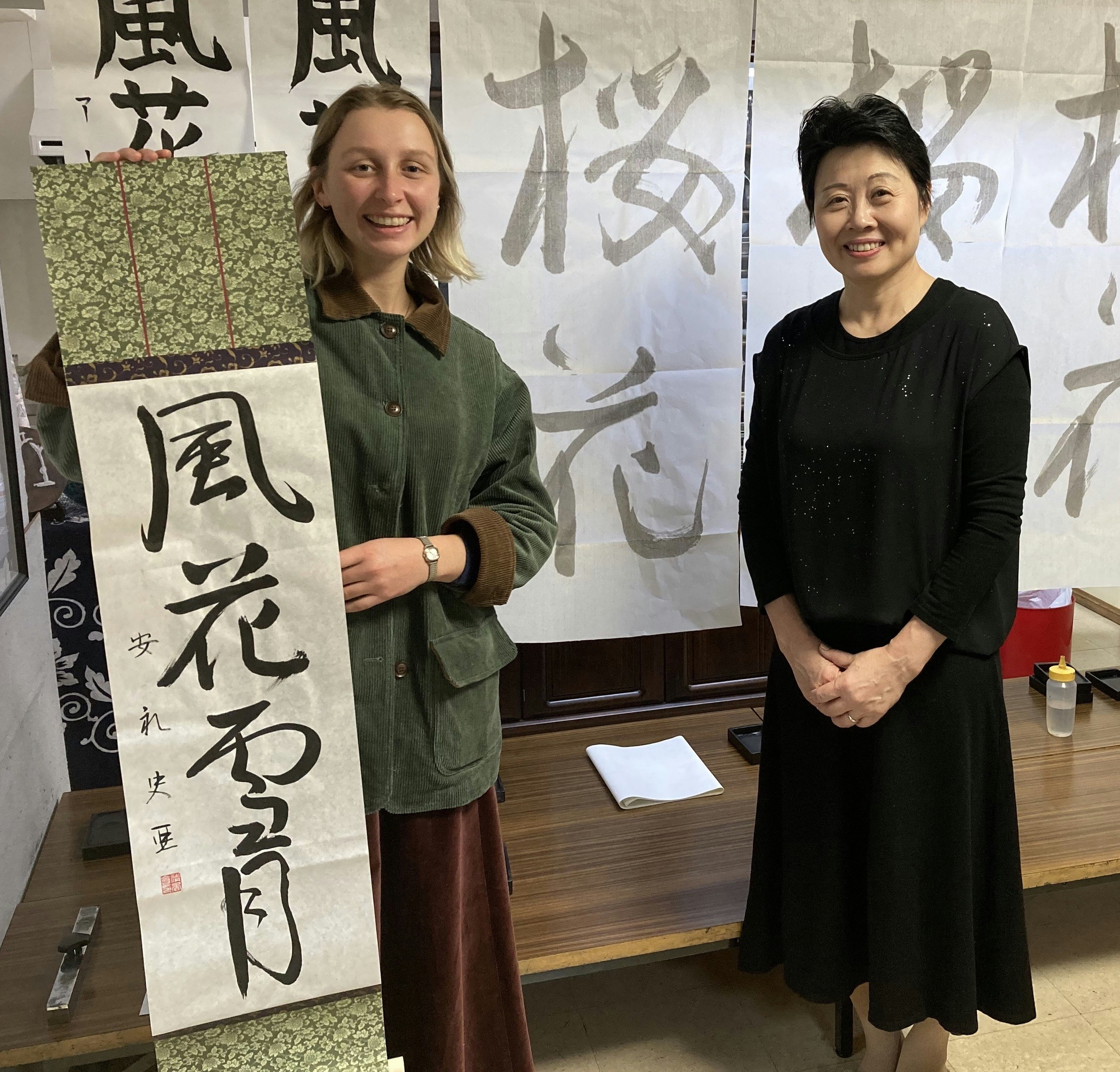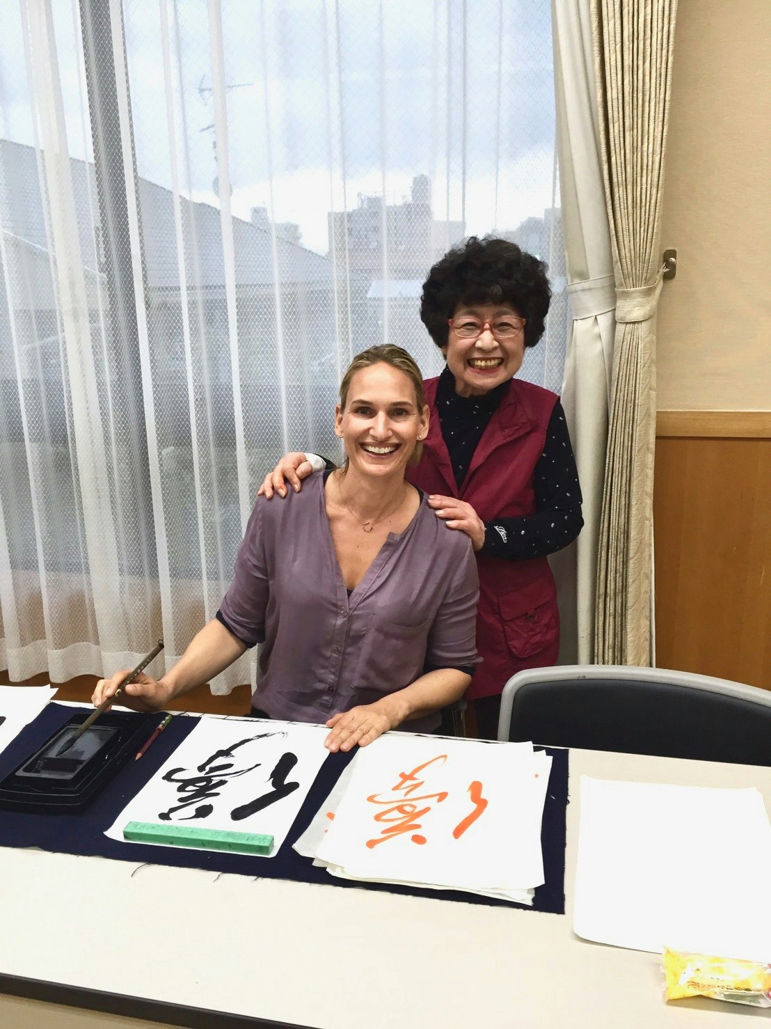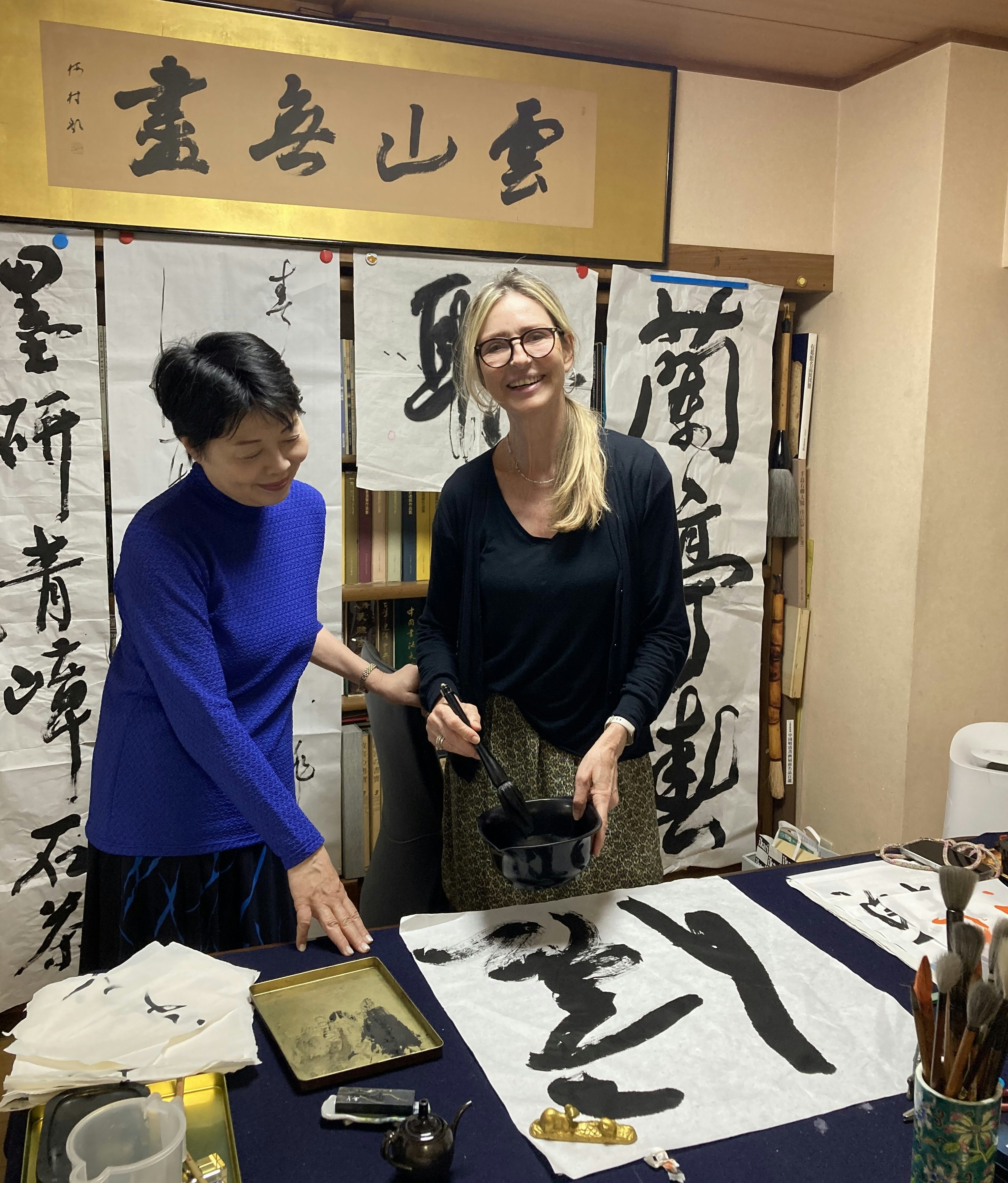I had a wonderful time learning about shodō with Chikako. She is a great teacher, with tremendous patience and a sense of humor. Outside of class, having lunch together at the neighborhood cafe, and visiting the nearby shrine deepened my experience. Would love to take the class again!