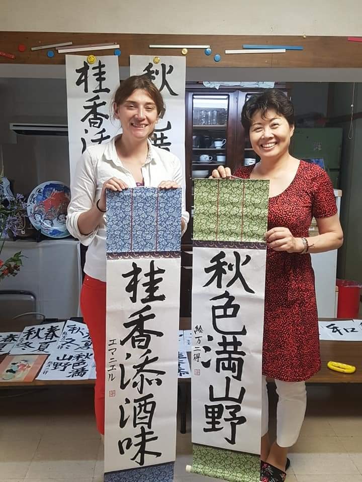 The experience of attending Chikako’s calligraphy classes for for days was very interesting. I could not have asked for a better artist and teacher, to make first steps in calligraphy. Her explanations helped me to involve the whole body.