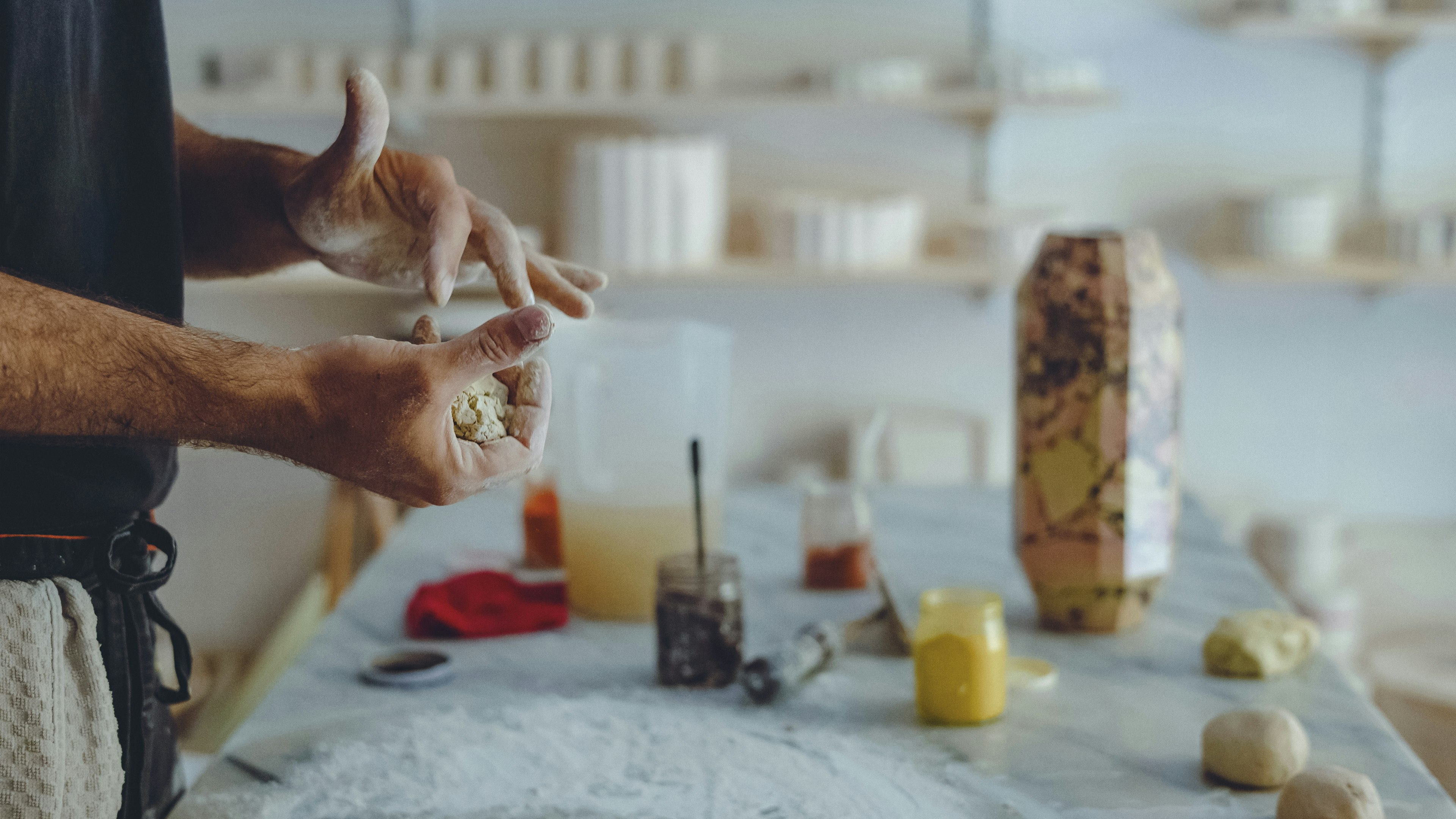 Claudio is an Italian artisan and designer known for his mastery of ceramics and the ancient Scagliola technique, which he reimagines with a contemporary sensibility. Born in northern Italy, his creative path led him through studies in art history, sculpture, embroidery, weaving, and ceramics. It was during this time that he discovered Scagliola—an age-old method once used in architecture and inlay as an alternative to stone—and became captivated by its potential. He later studied this 16th-century technique under Master Mauro Patrini at the European Center for Restoration, deepening his commitment to preserving and evolving this rare craft.