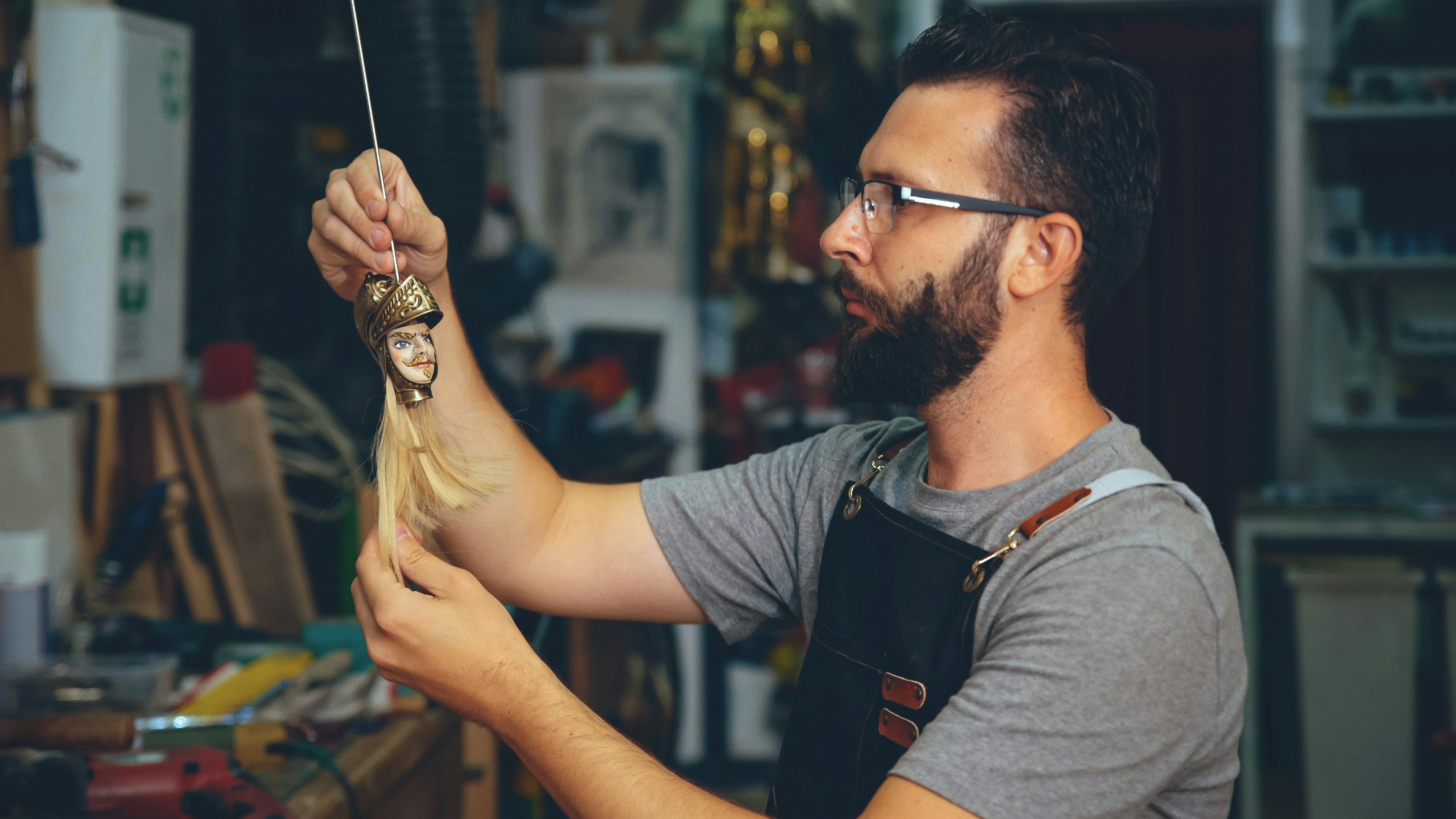 Daniel is a distinguished Sicilian puppeteer and artisan, representing the third generation of his family devoted to the Opera dei Pupi—the storied tradition of Sicilian marionette theater, recognized by UNESCO as an Intangible Cultural Heritage of Humanity. Working alongside his parents in their historic workshop, he carries this legacy forward, infusing it with his own contemporary artistic vision.