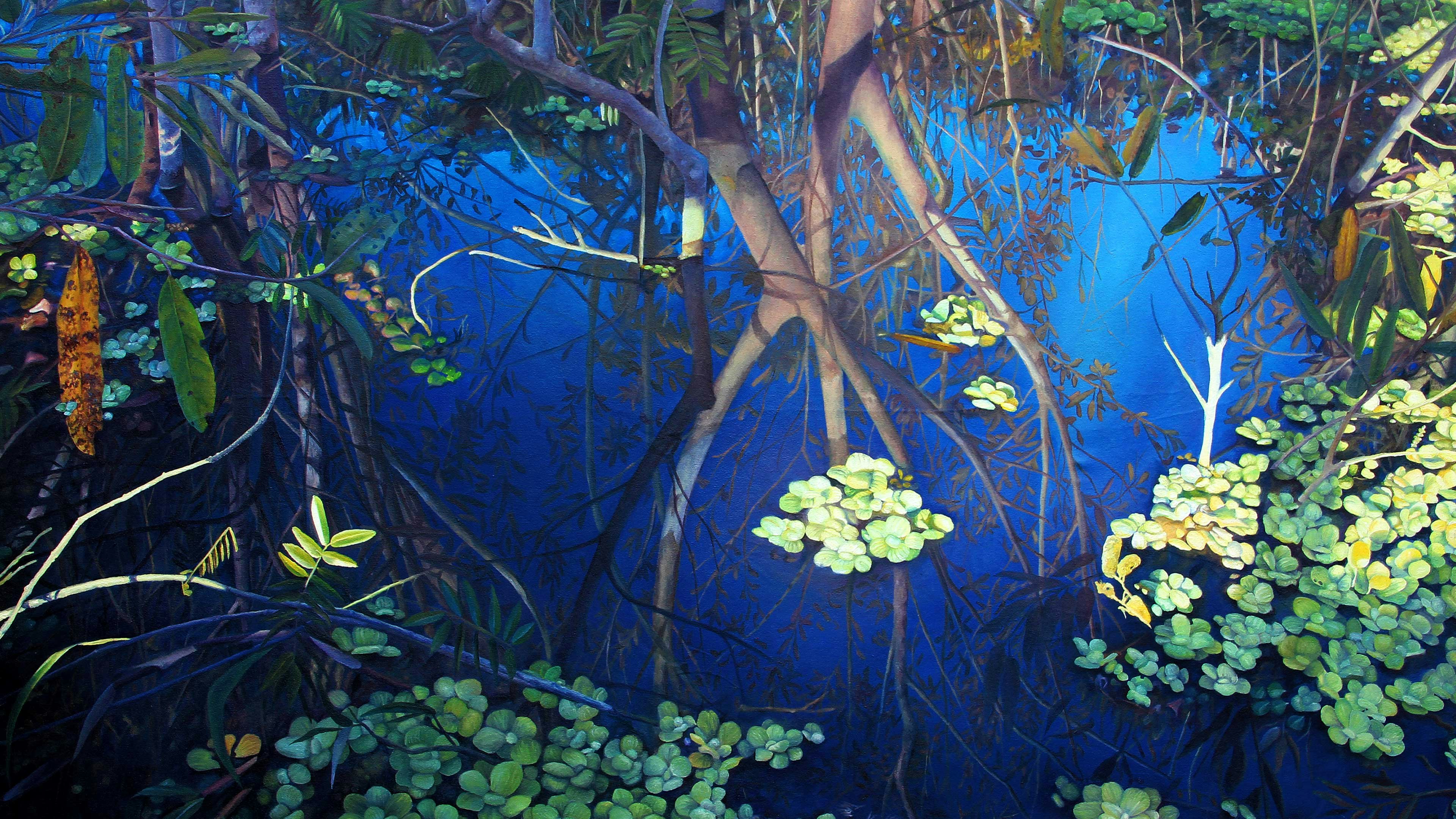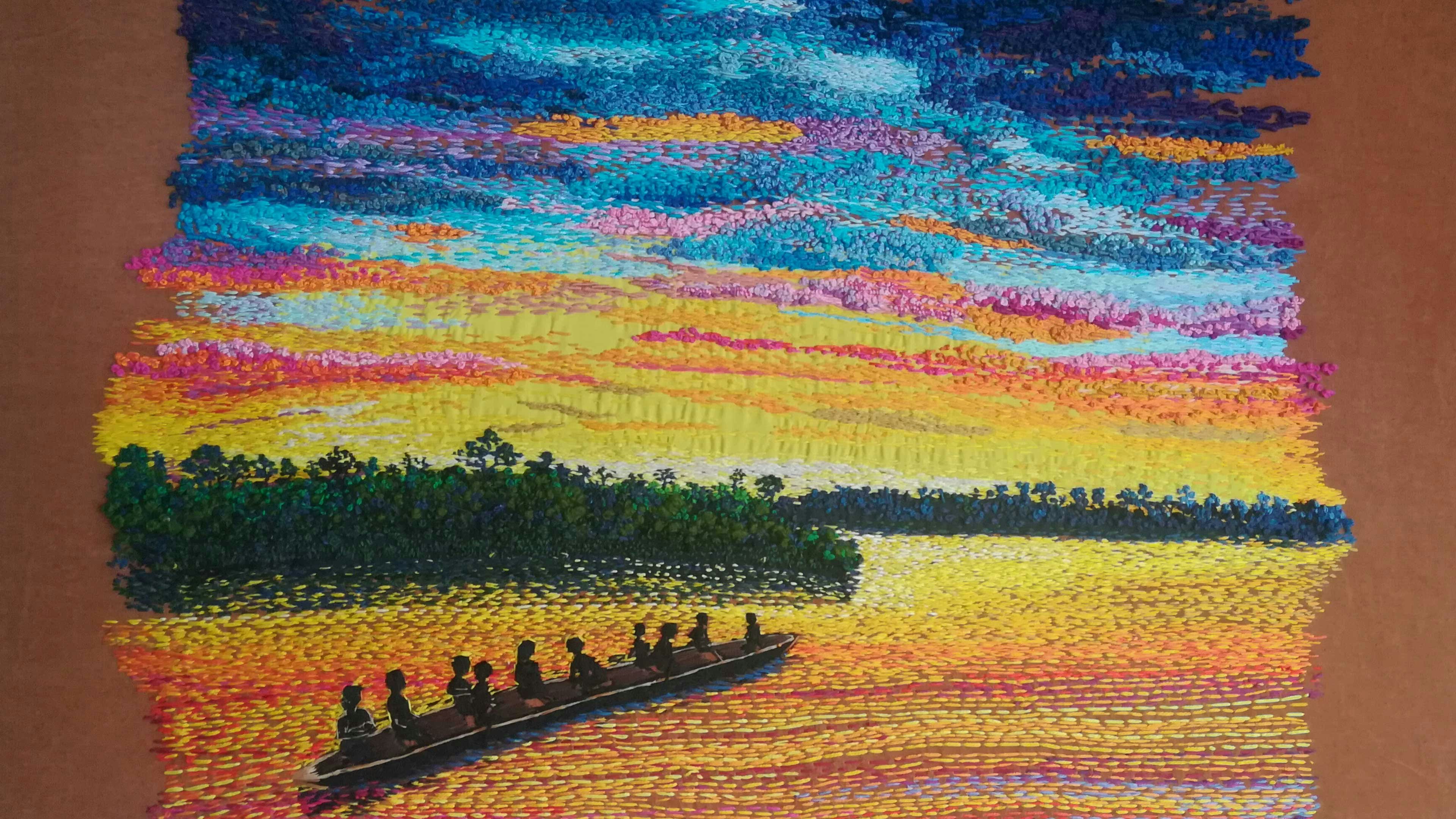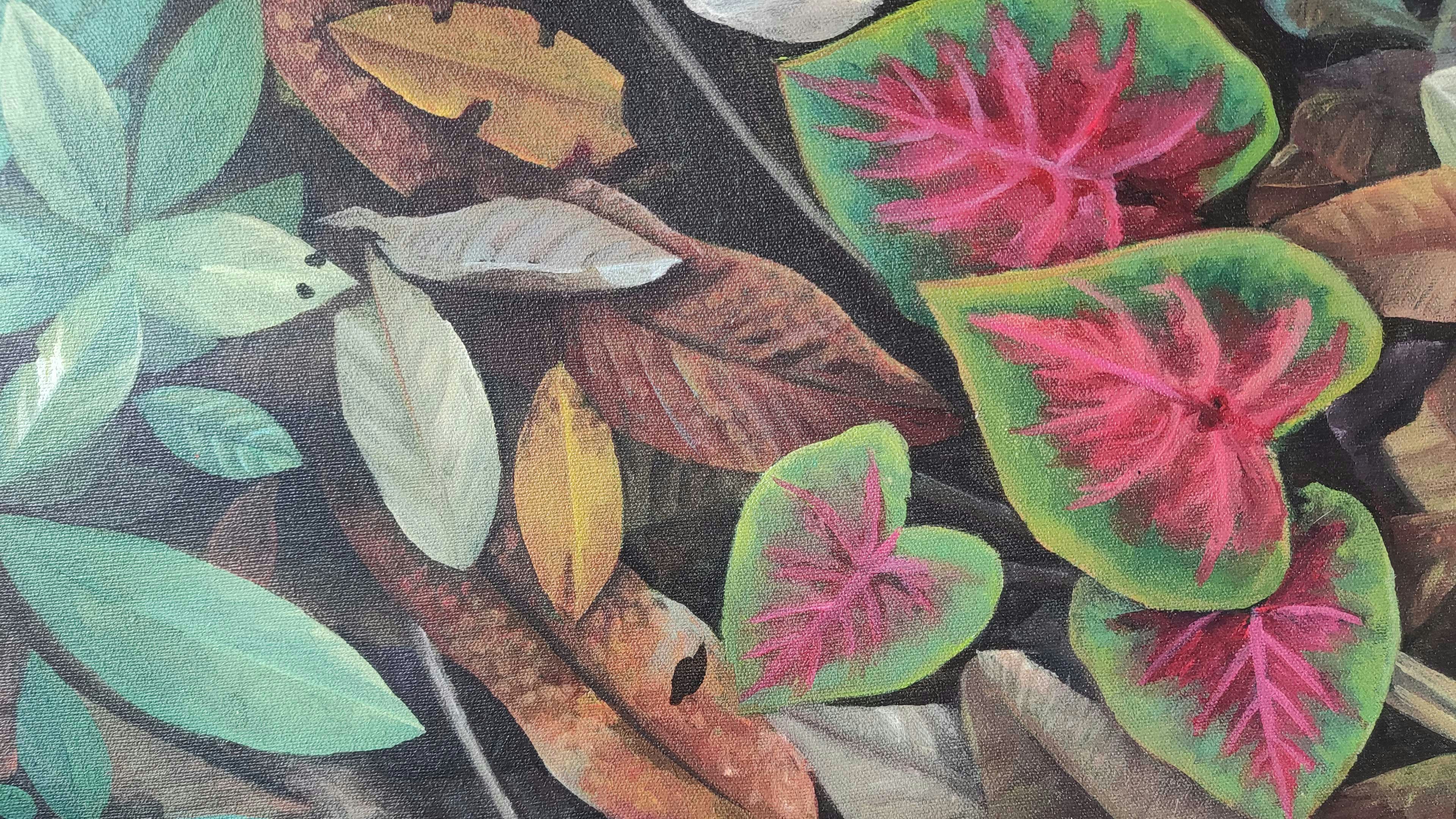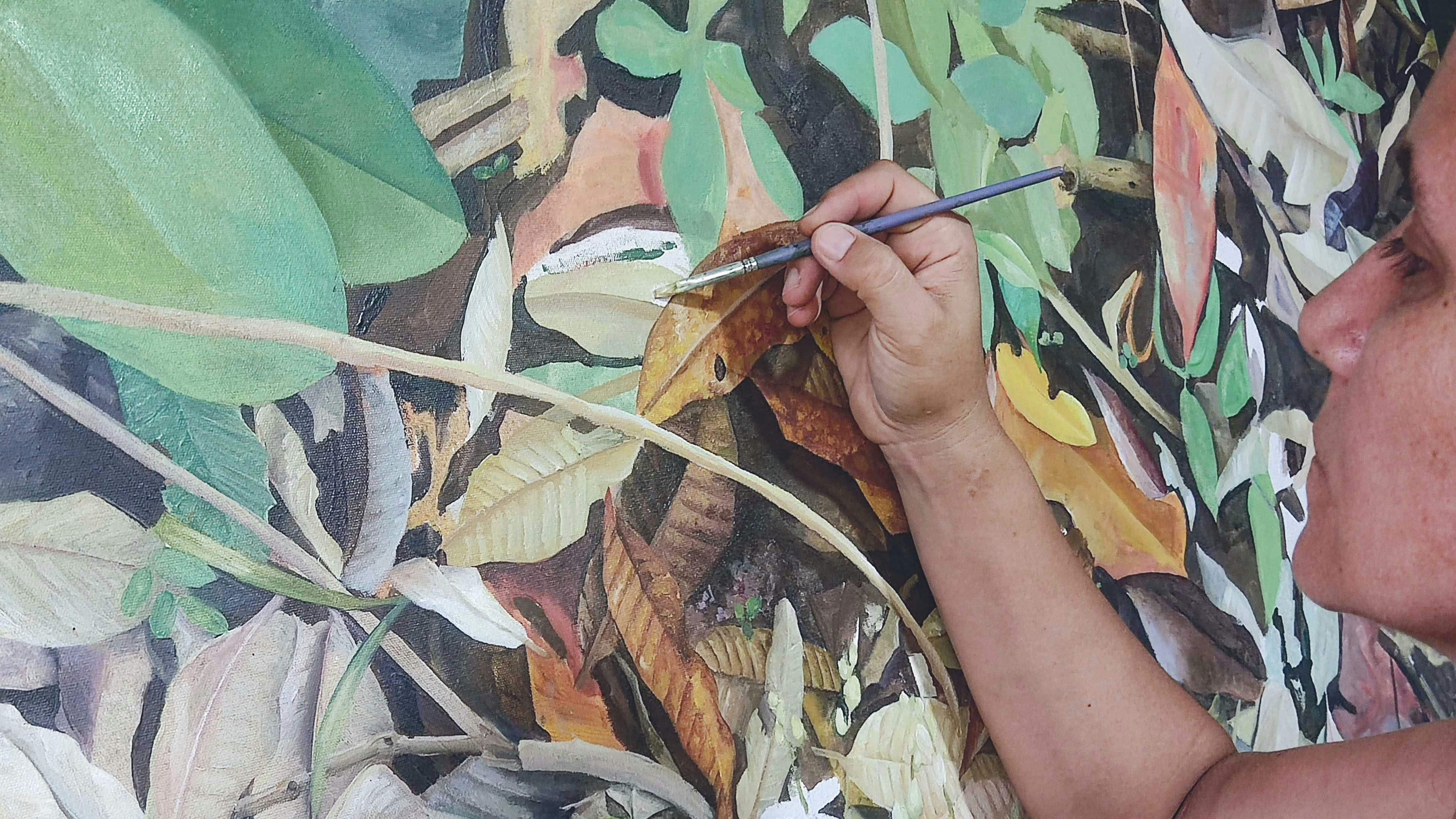 Inspired by her background moving between the Ucayali region of the Amazon basin and the urban landscapes of Lima, Diana’s paintings weave together themes of migration, identity, and the intricate relationship between female experiences and the natural world. Her detailed paintings reflect the landscapes she explores during her walks. Diana is also actively involved in exploring indigenous Amazonian art through her work and has conducted ethnographic research into the art of the Shipibo Konibo community.