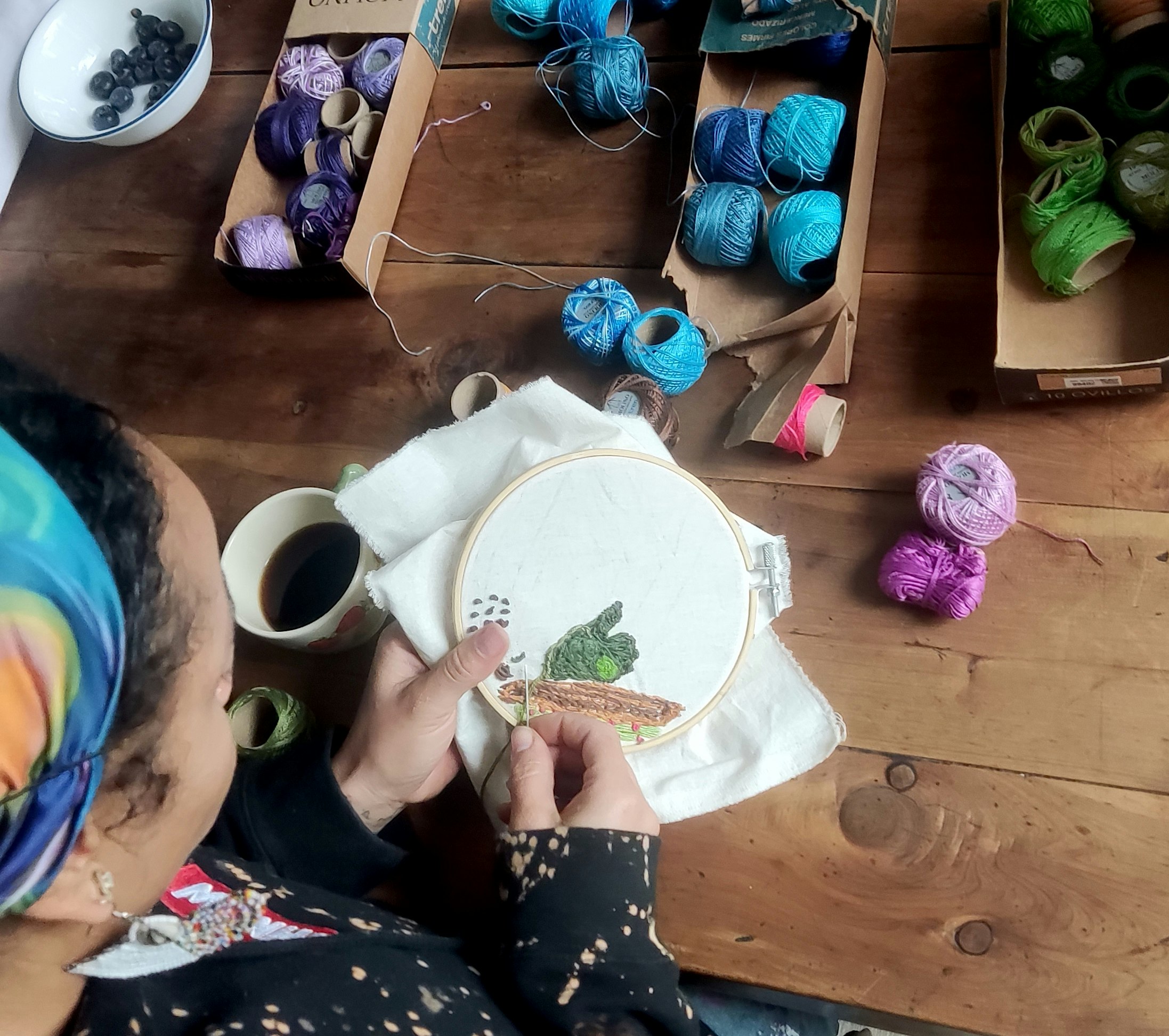 - Intro to basic hand embroidery stitches and techniques to apply them in small nature scenes.