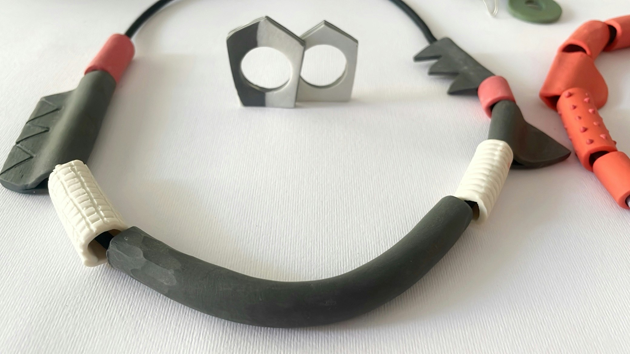 - Craft contemporary wearable jewelry pieces with porcelain and metal.