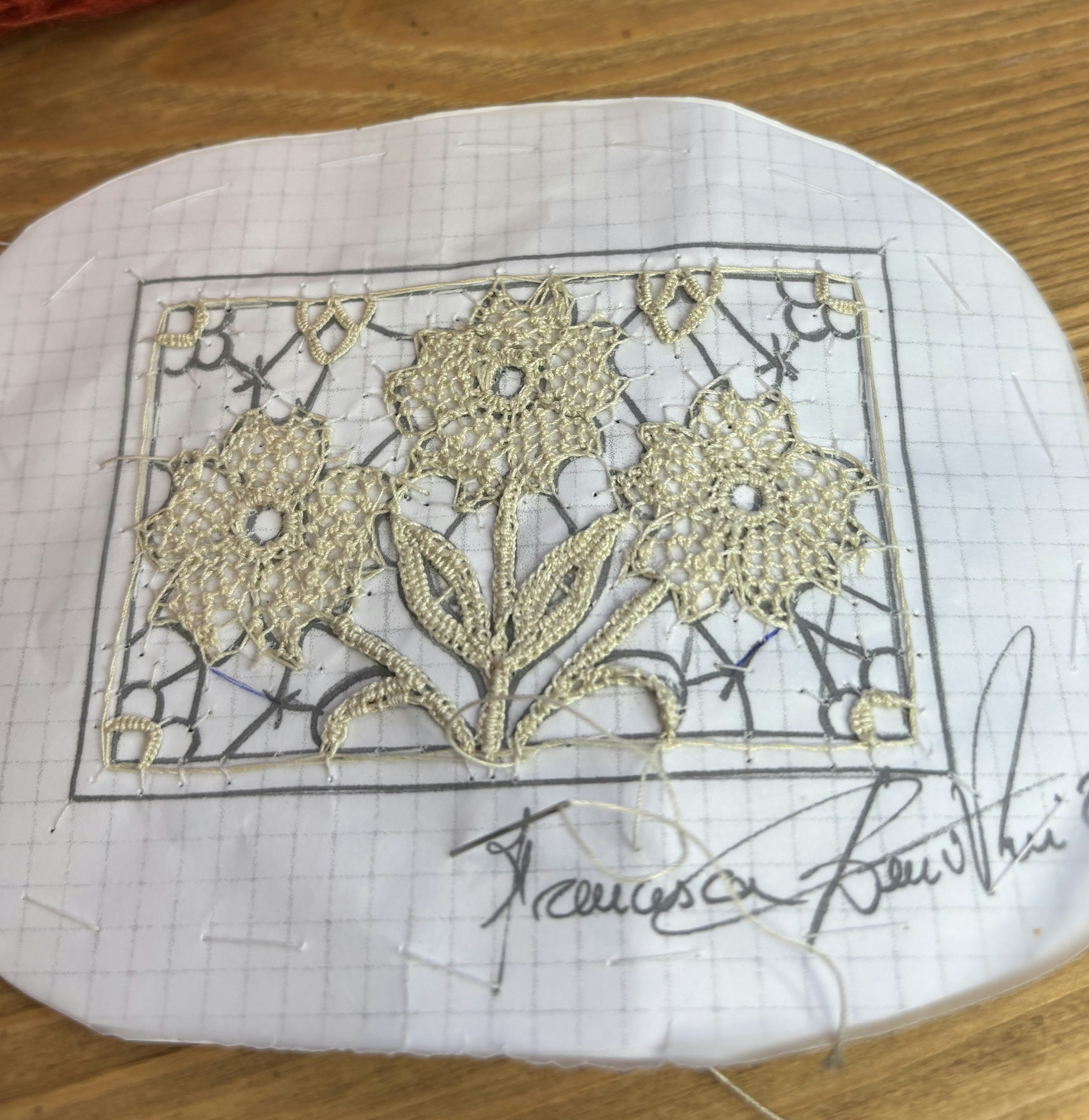 Francesca is Italy’s last living master and educator in Aemilia Ars needle lace, an intricate Renaissance-style technique originally associated with Bologna's artisan tradition. Trained from early childhood by her mother and grandmother, she has dedicated her life to preserving and evolving this refined form of punto in aere—lace made entirely with needle and thread, without a base fabric.