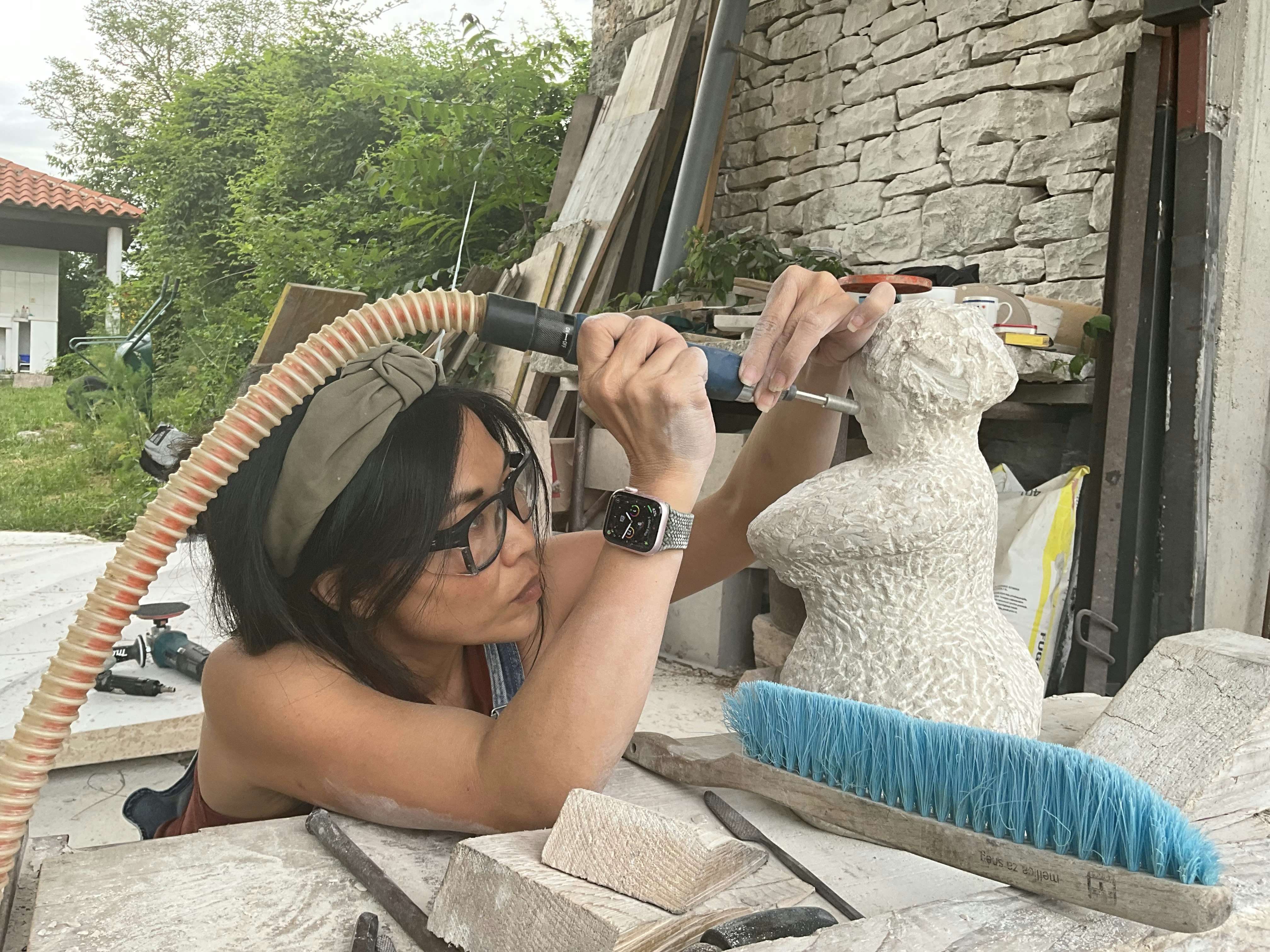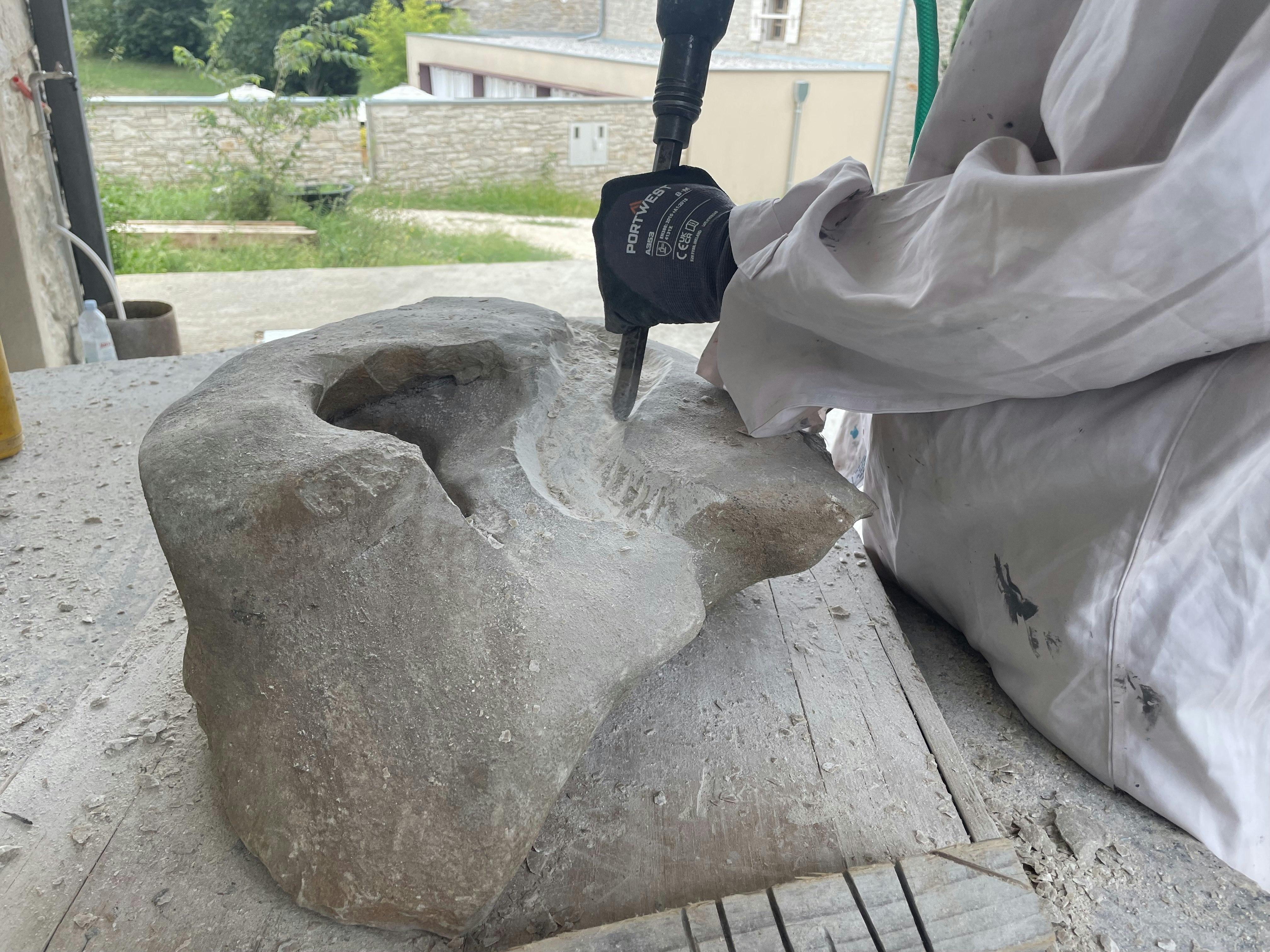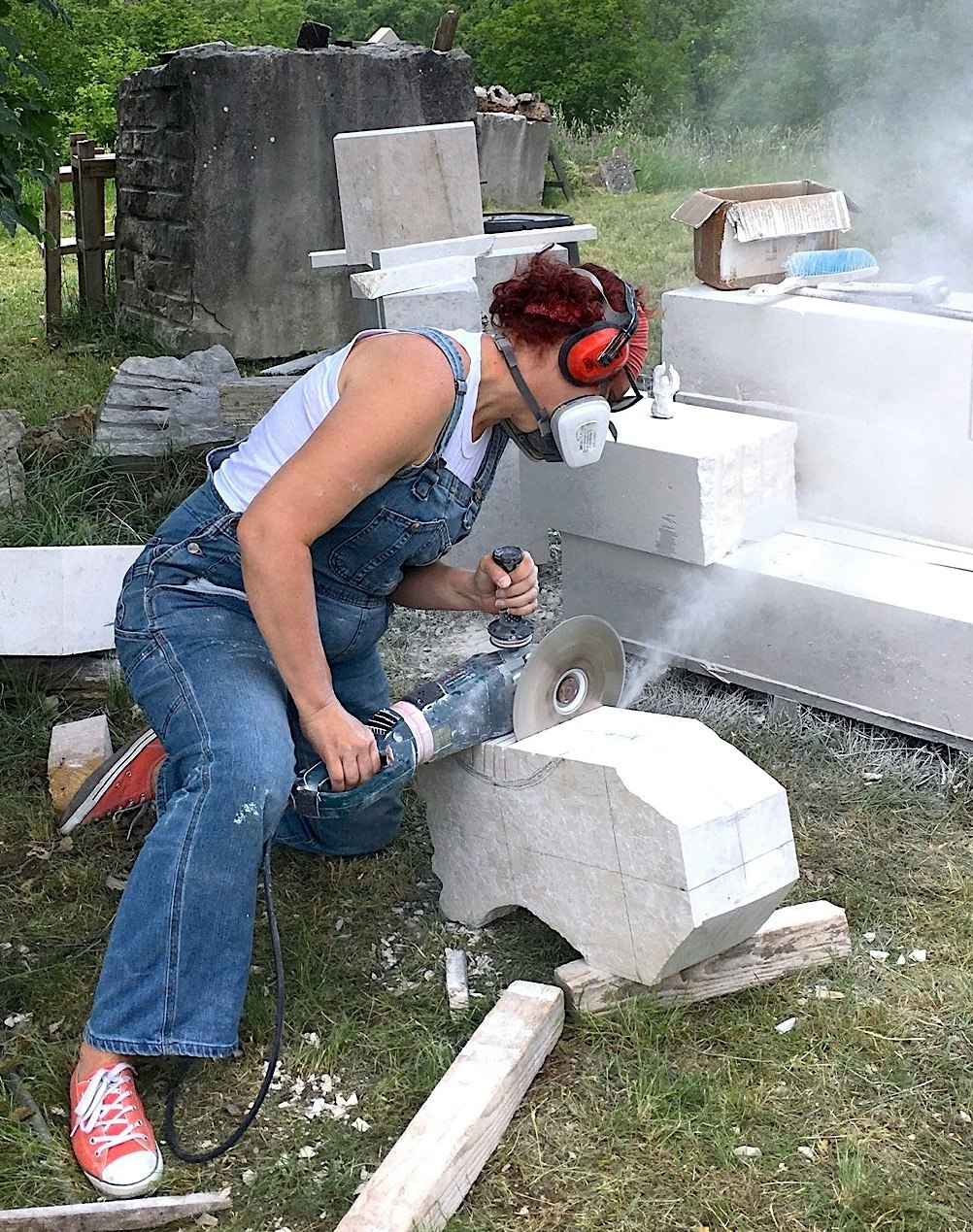 Stoneworking is part of the local tradition. Istrian stone has been used for construction since the Venetian era – from the famous Roman amphitheater in Pula to the local stone houses. Stone workers were brought to work the stone from further south in Dalmatia or Monte Negro, which influenced the local architecture. Gail uses the same stone for her sculptures.