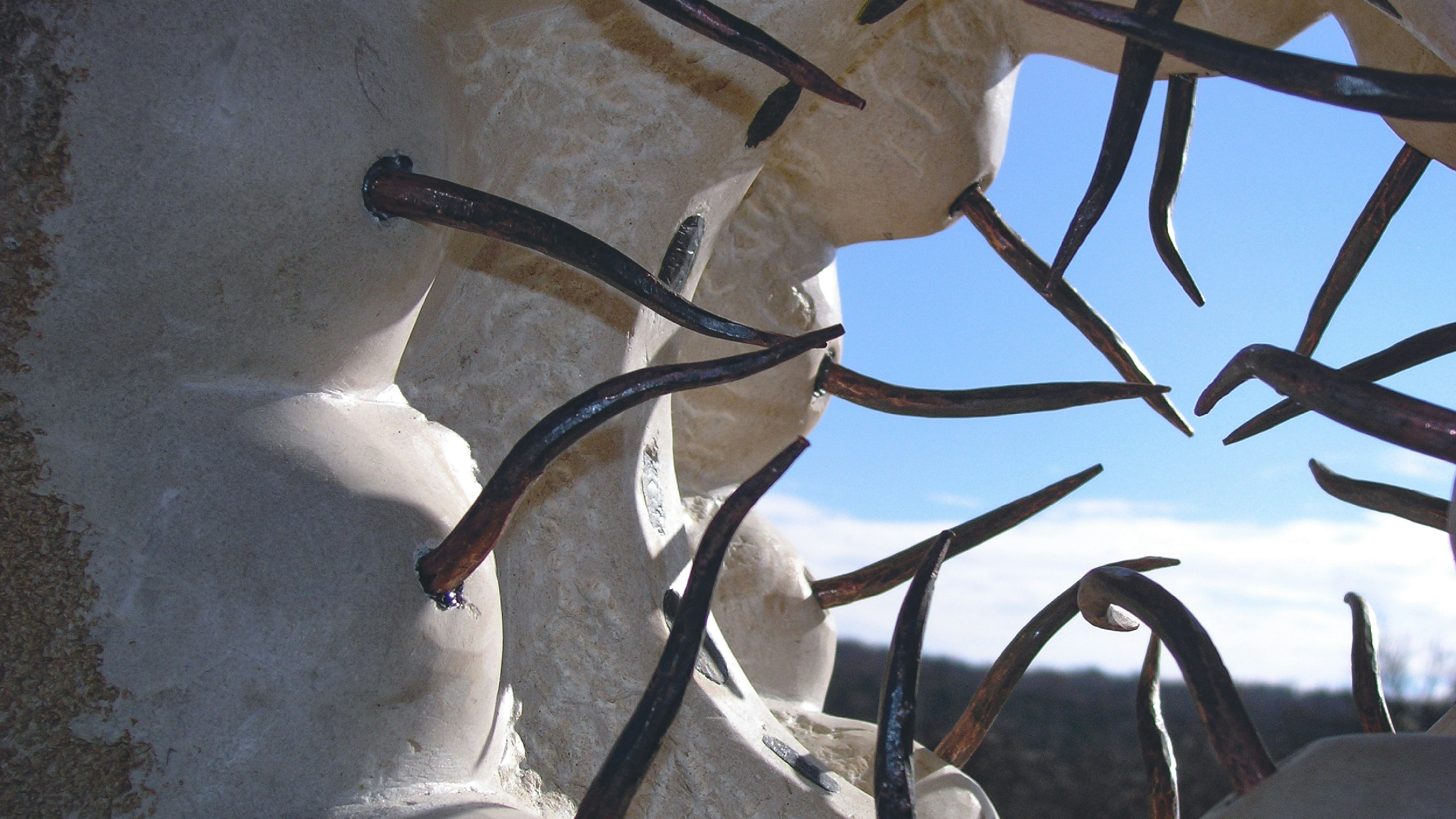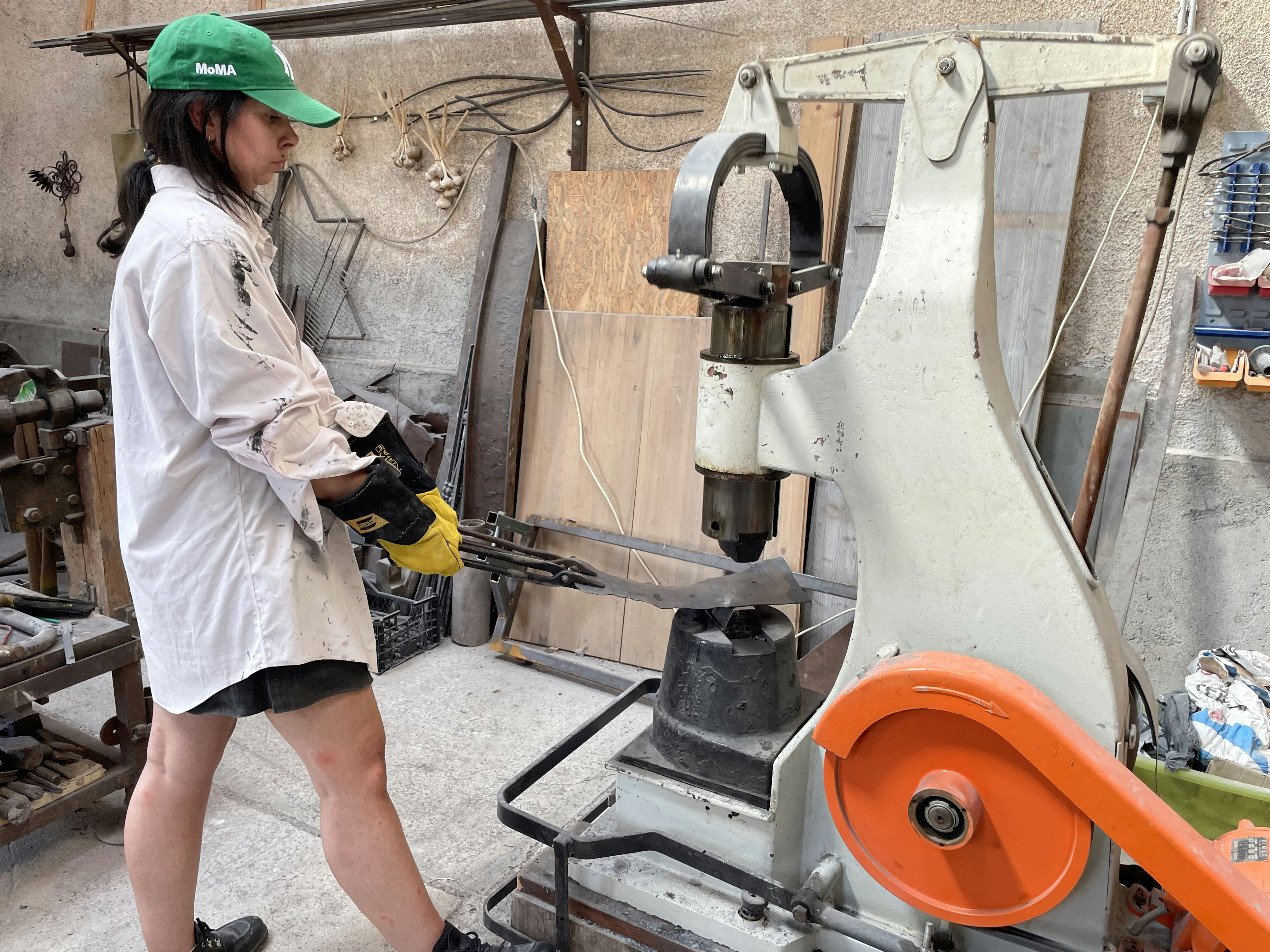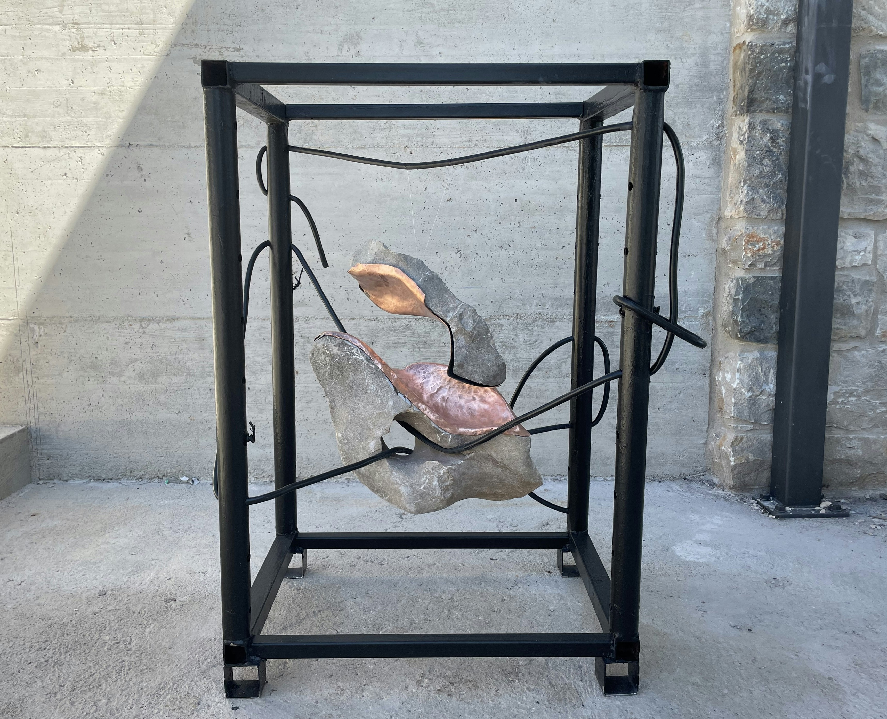 Her work over the years has followed its natural course – from working exclusively in metal, then stone, and finally combining stone, metal, and other materials. Forging the metal to fit or spring from the stone, borrowing traditional techniques to create something new. She finds inspiration in nature and human form, and the age-old building traditions in her area have helped guide her practice. She likes to approach her work from different points of inquiry and varying themes like ‘Of the body,’ ‘A Passage Through,’ and ‘Earthen Houses.’
