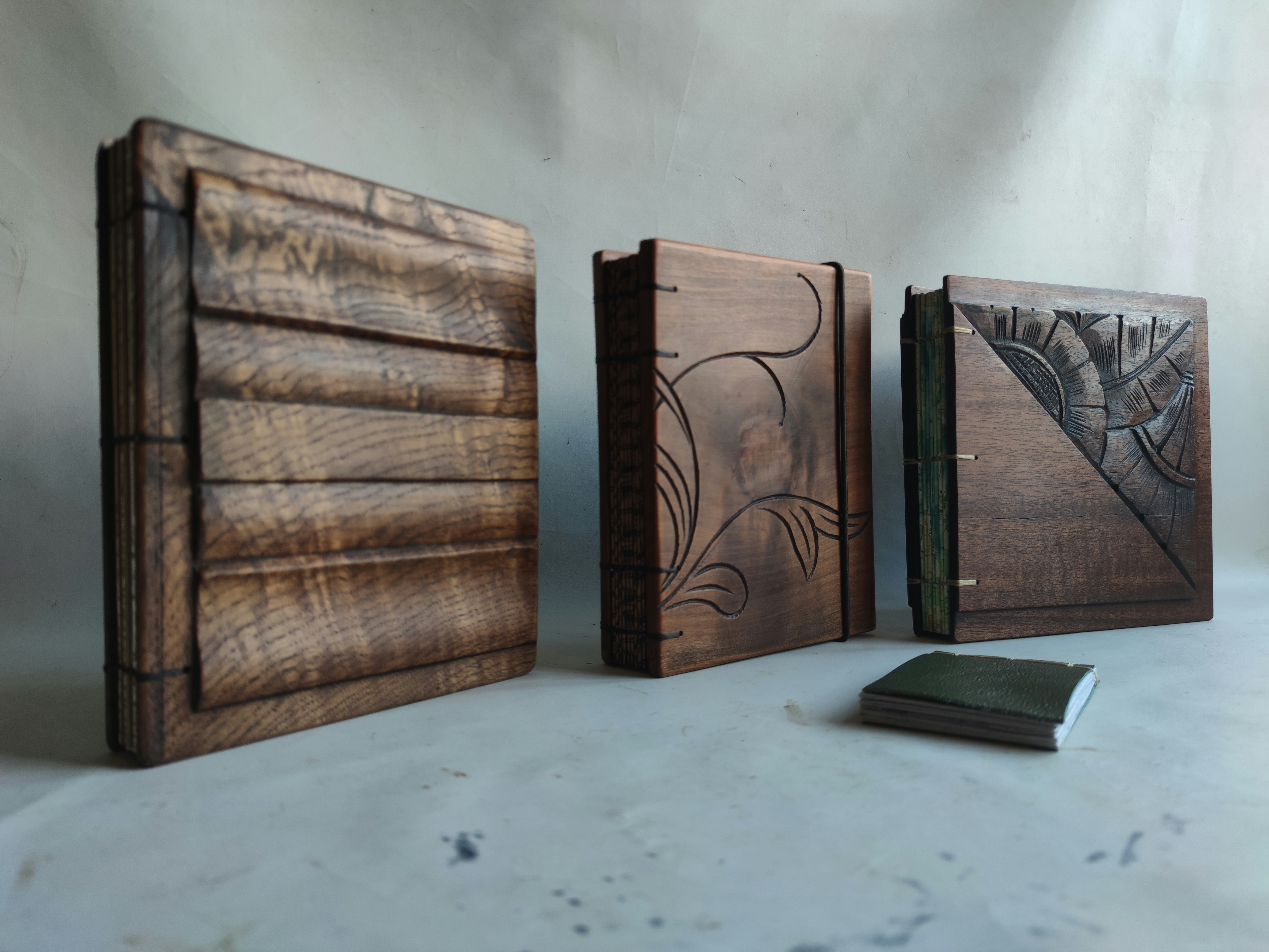 - Sketching and wood engraving with small chisels, including other creative options for cover construction using reclaimed materials.