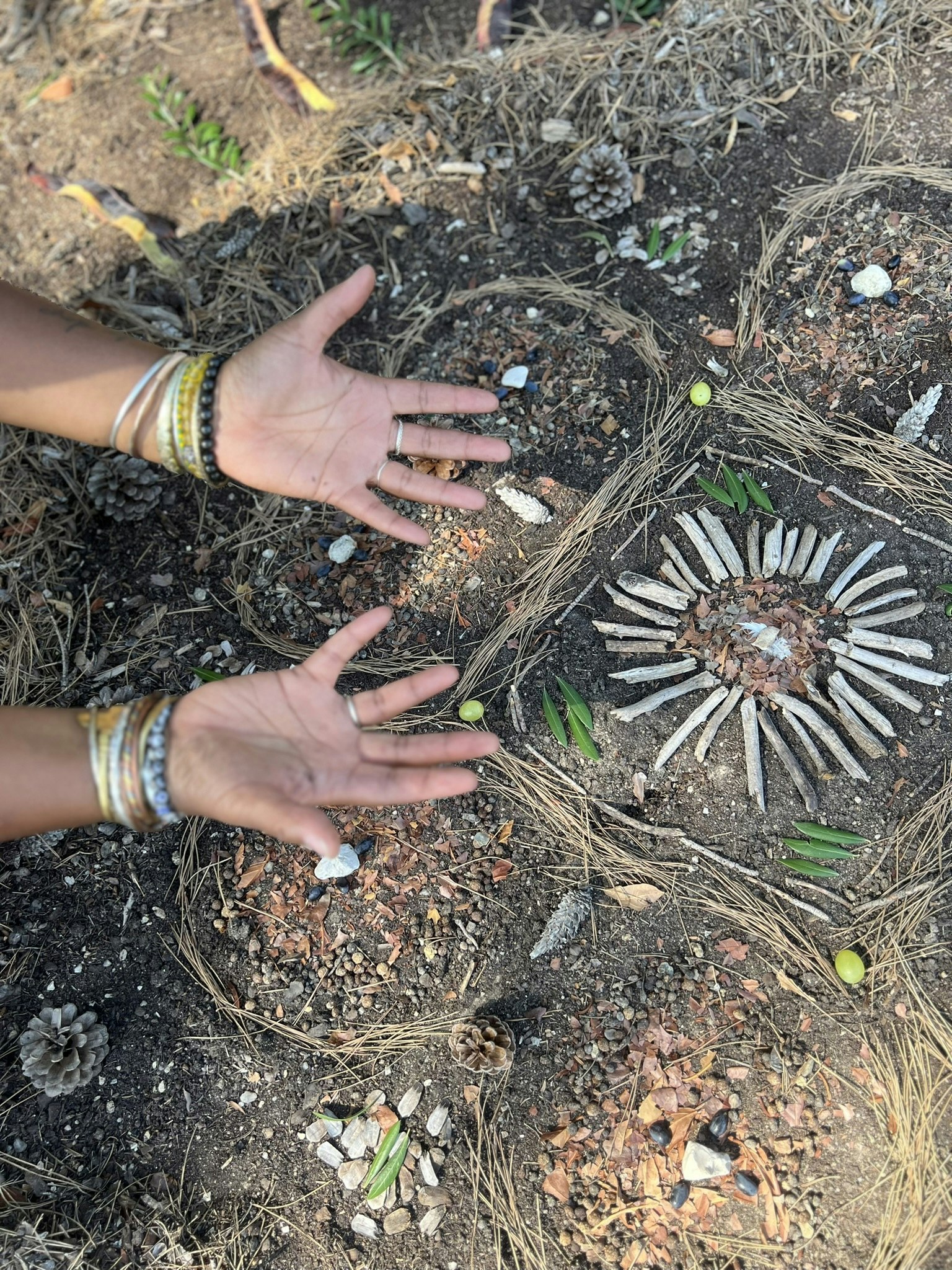 - Going into nature to collect materials and make natural mandalas.