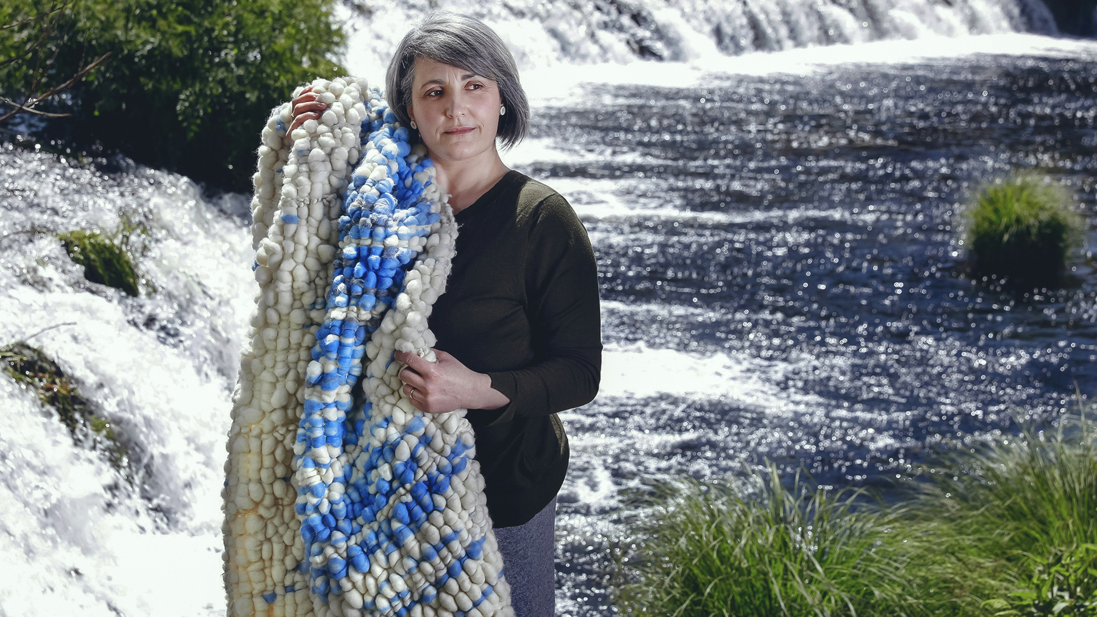 Rooted in ancient Galician techniques like gorullo weaving, rosepath, and block design, Inés experiments with embroidery, natural dyes, optical fibers, milk proteins, and nanomaterials like gold and graphene to create richly textured tapestries. She works exclusively with natural, biodegradable fibers such as linen, wool, and silk, producing one-of-a-kind pieces for interiors and installations that honor the beauty and integrity of their materials.