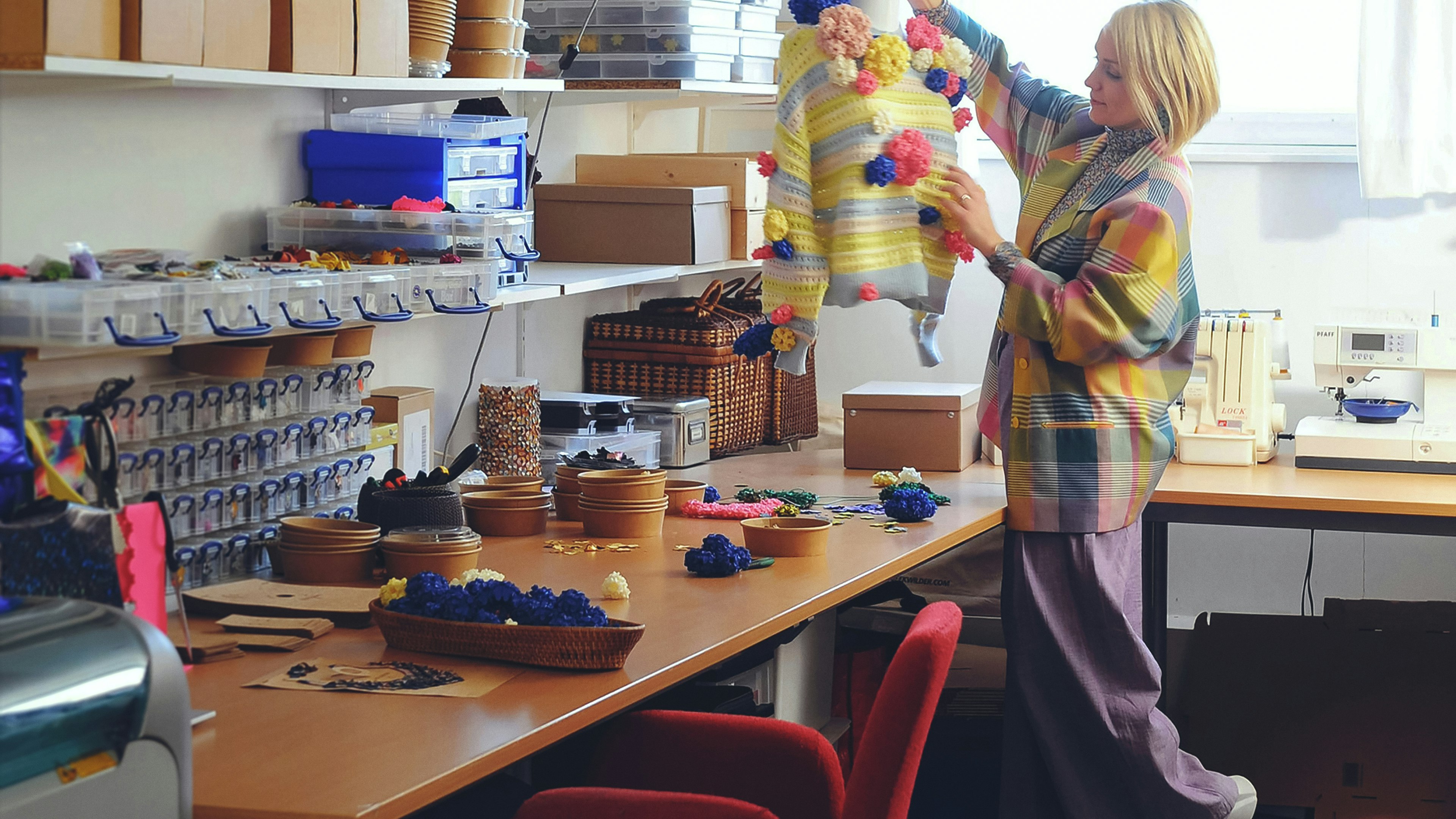 Iris is a textile and product designer celebrated for her modular sculptural wearables and objects. Over more than a decade, she has developed a unique, self-taught technique that transforms flat textiles into three-dimensional forms without using stitches or glue. What started as an academic experiment evolved into a quiet rebellion against fast fashion and rigid design conventions.