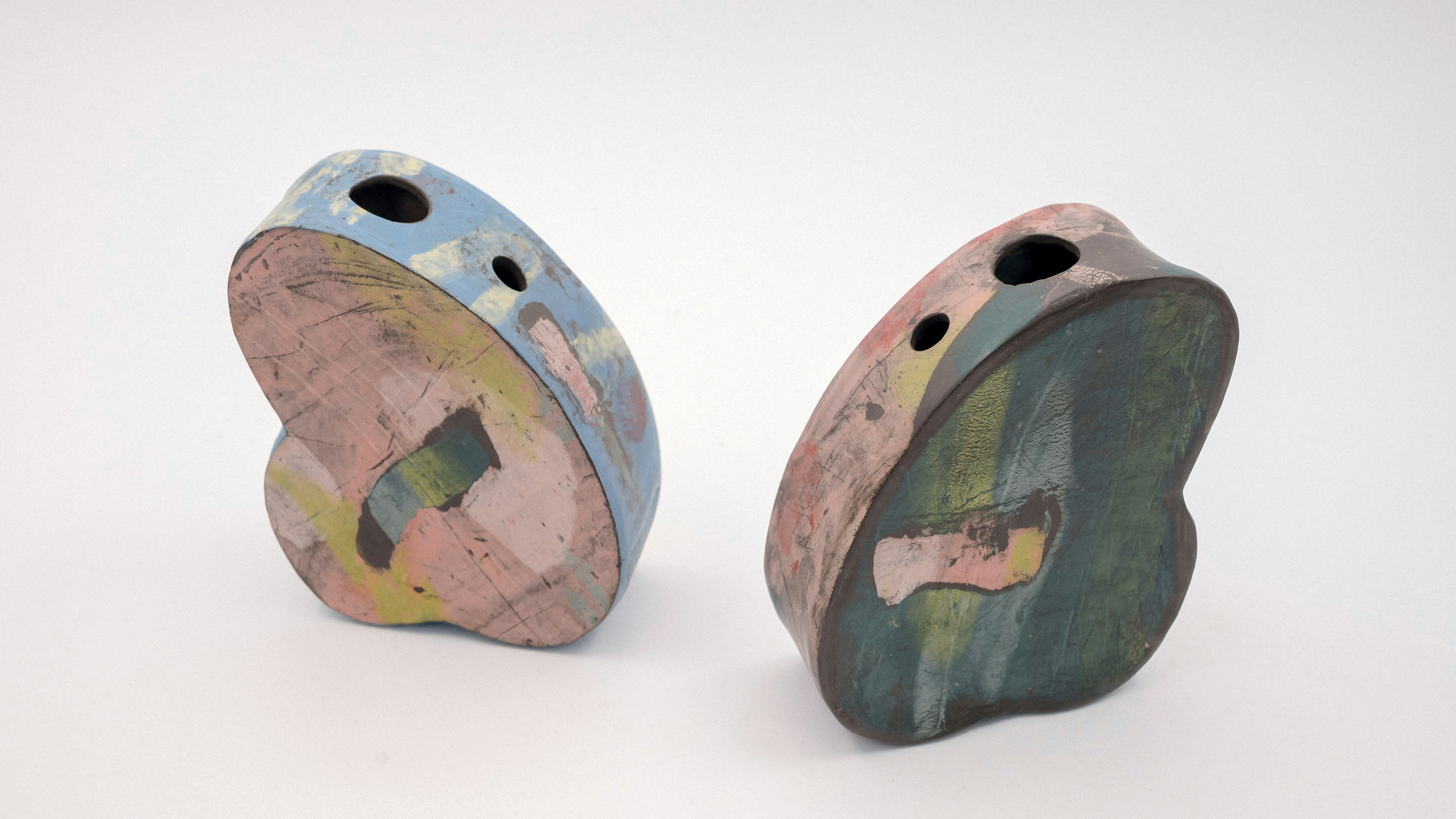 Isabella crafts functional and sculptural ceramics using both low-temperature clays and porcelain, drawn to their contrasting qualities. Her work showcases a unique ability to explore diverse forms, materials, and firing techniques, pushing the limits of traditional methods such as maiolica, wheel-turning, slab-building, and coil-building to create innovative pieces. She has a particular fondness for the sensuality of slips and Terra Sigillata, the delicate yet resilient qualities of porcelain, and the rich traditions of low-temperature earthenware and Majolica. Her artistic practice shifts between vibrant, colorful works and monochromatic, contemplative pieces, often having a “double function,” ensuring that her works not only serve as beautiful pieces but also invite interaction and touch.