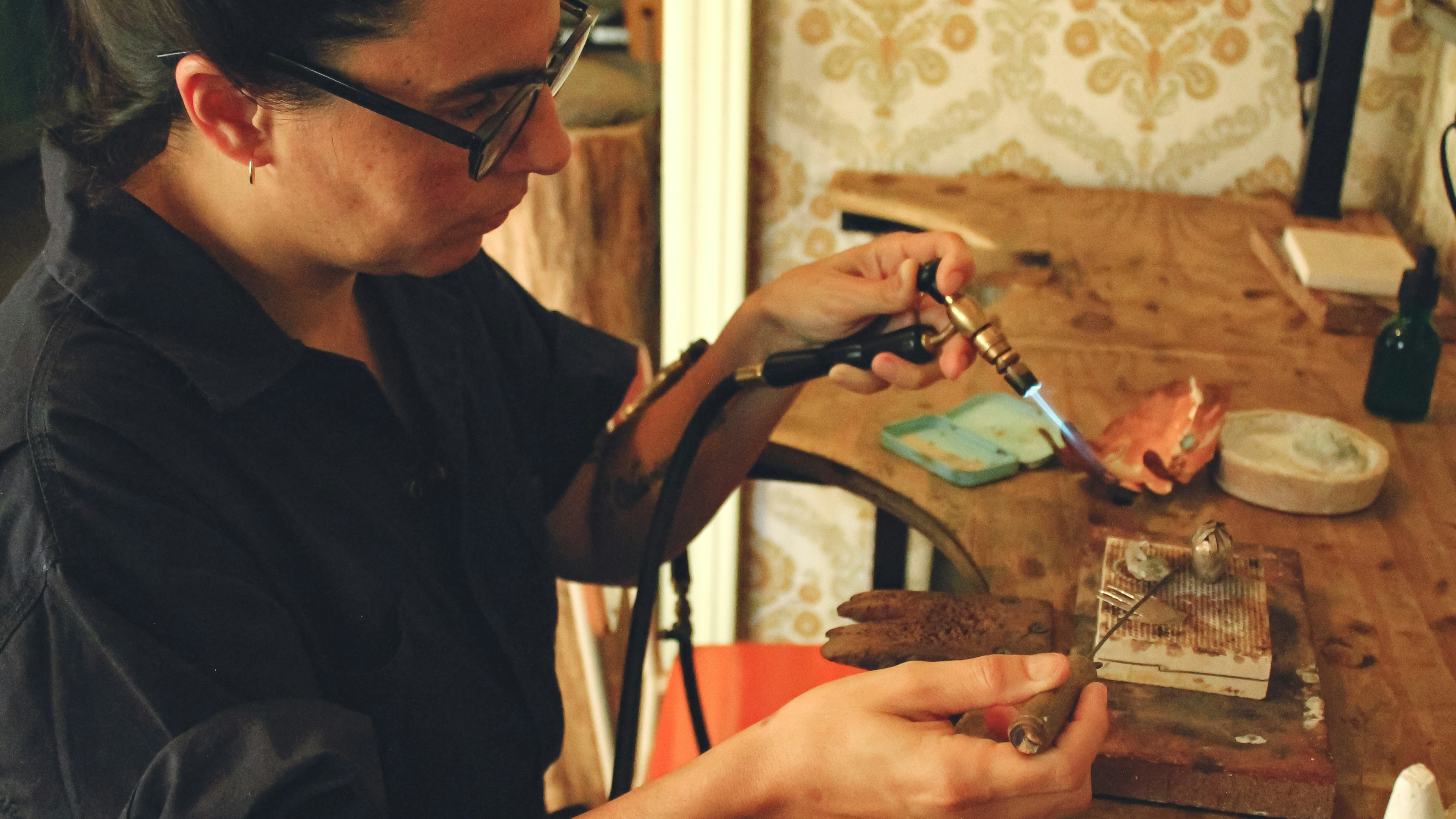 Jimena is passionate about creating jewelry that can be worn and cherished forever. She is inspired by Milagros (ritual jewelry used for protection and miracles) as much as the traditional techniques of gold, silversmithing, and stone settings. She enjoys combining jewelry with unexpected materials like textiles to create unique pieces that share a message of love, commitment, and friendship. Her designs are a reminder that jewelry has always been a way for people to communicate and express themselves.