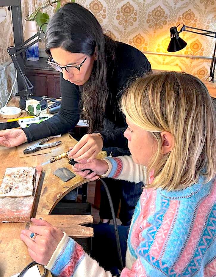 - Join any focused workshops at Jimena’s school, like the history of jewelry, enamel, chiseling, and drawing, and meet other local students and artists.