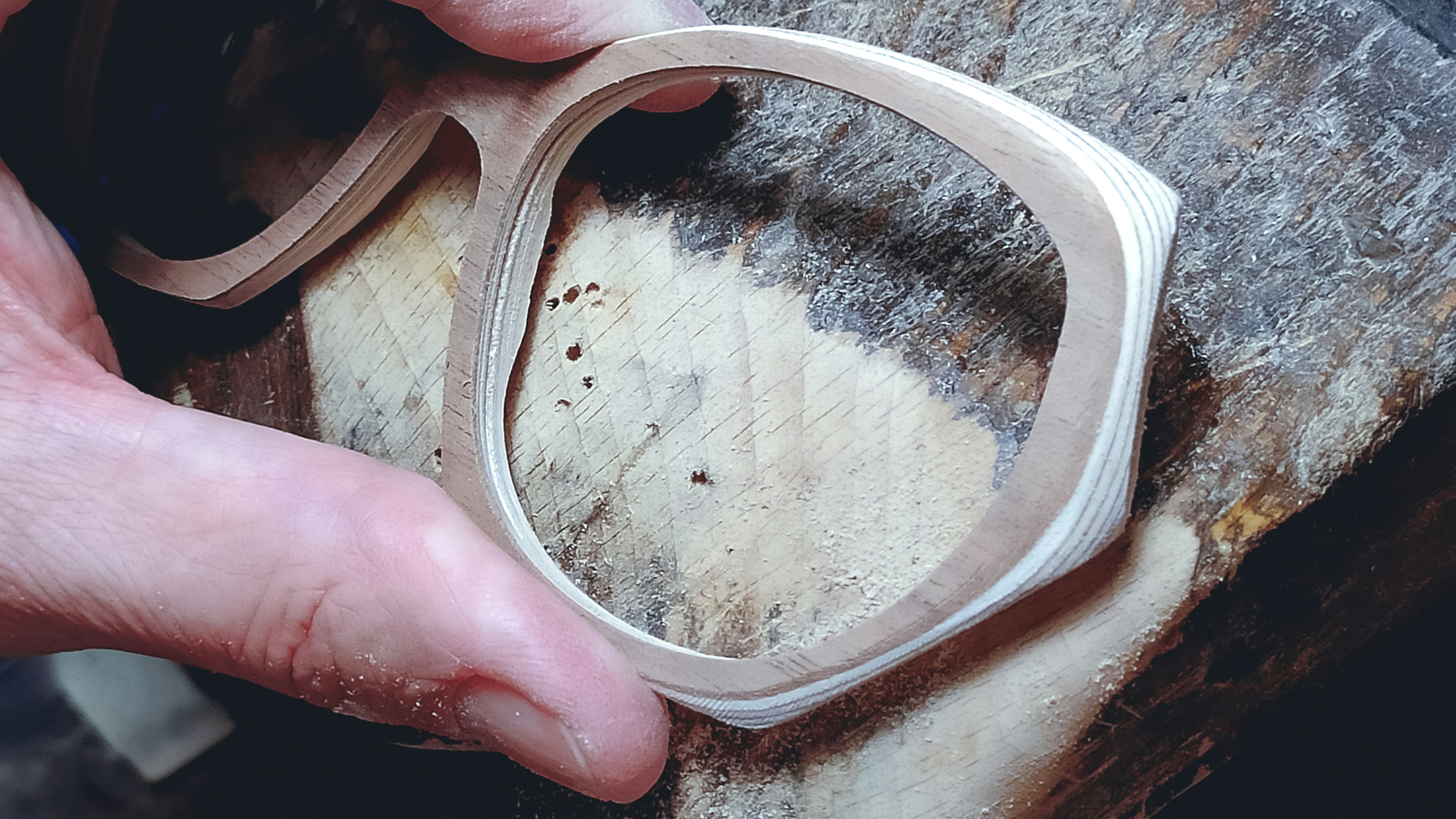 Drawing on his background in sculpture and restoration, Jochen developed a meticulous 83-step process rooted in ergonomics, comfort, and natural materials. He works with steam-bent wood, buffalo horn, briarwood, bone inlays, and precious metals, finishing each piece with hypoallergenic, VOC-free oils. Every detail—veneer selection, bending, shaping, and finishing—is done by hand with exacting care. Rejecting digital tools and standard templates, Jochen designs directly on the face, tailoring each frame to reflect the wearer's unique features and personality. He is especially attuned to facial diversity, creating frames that honor a wide range of structures—from Asian and African to European.