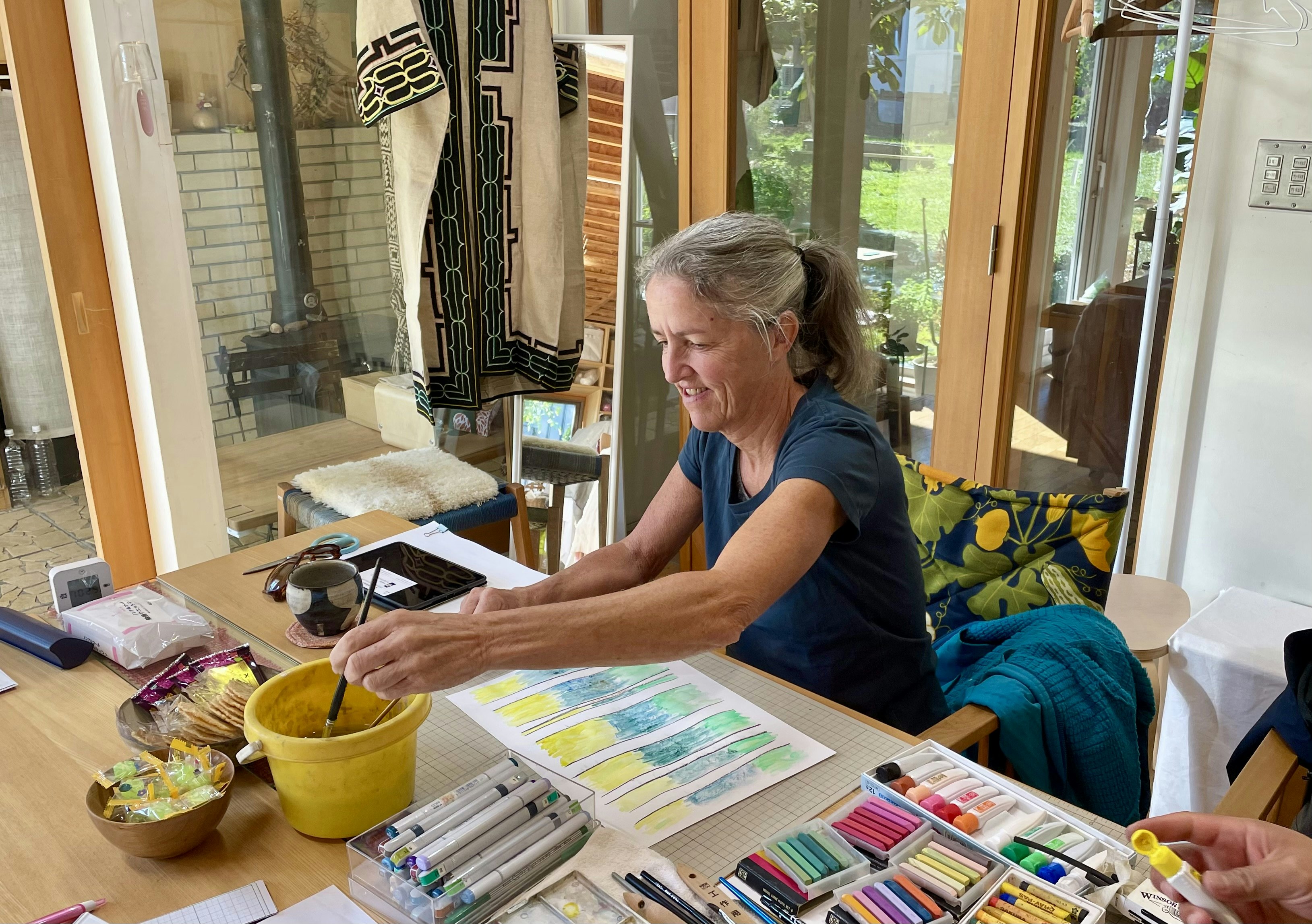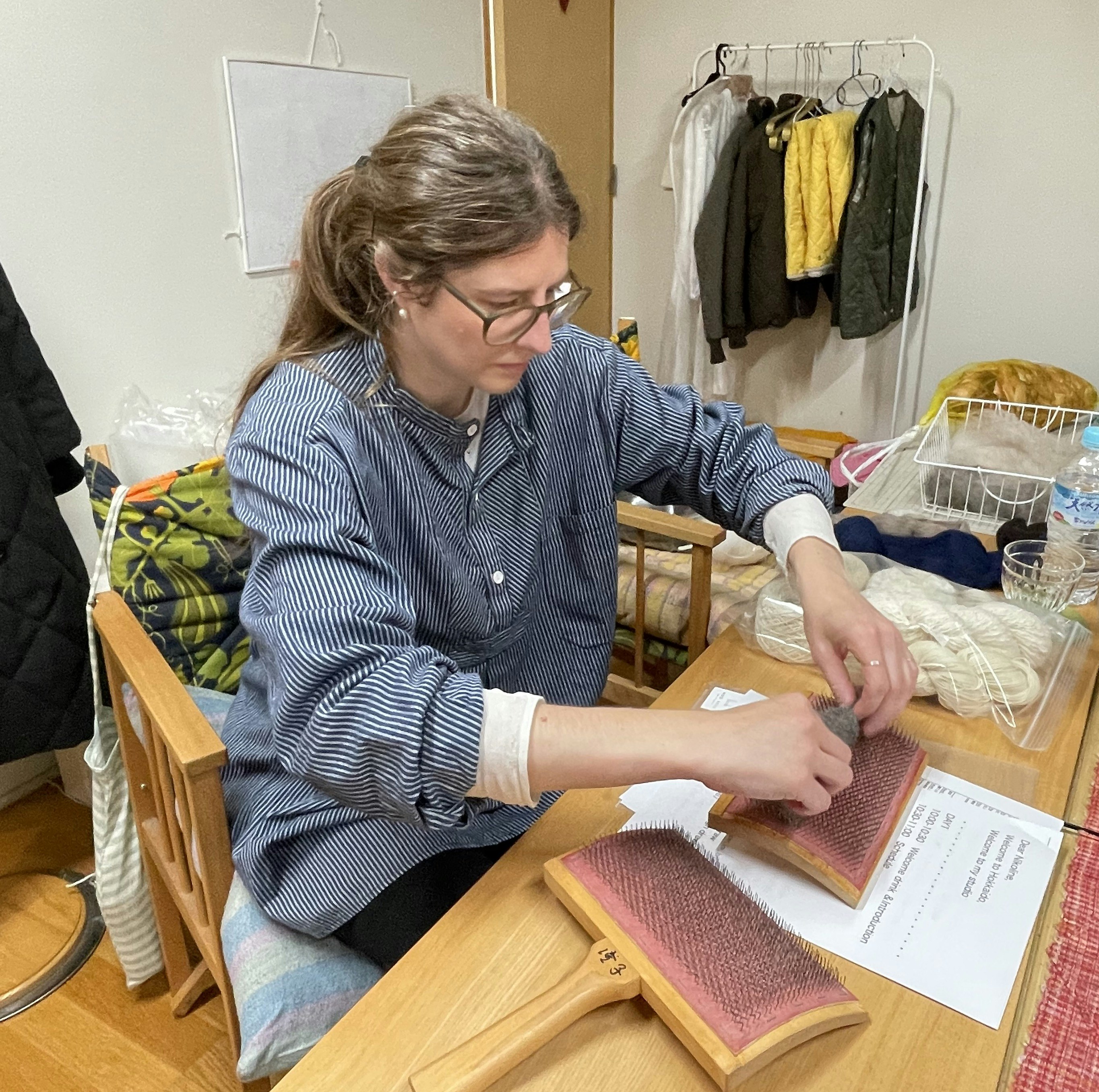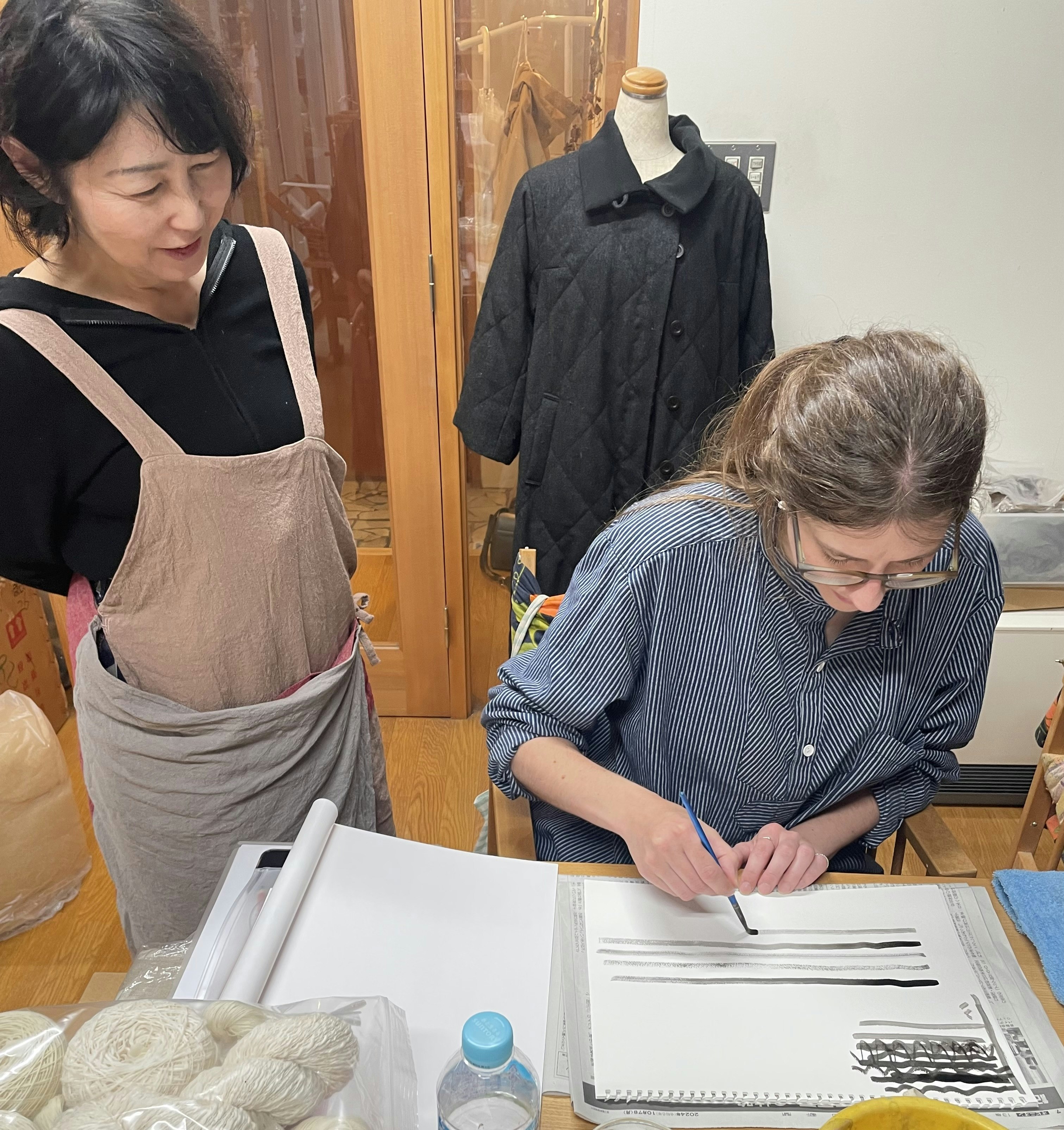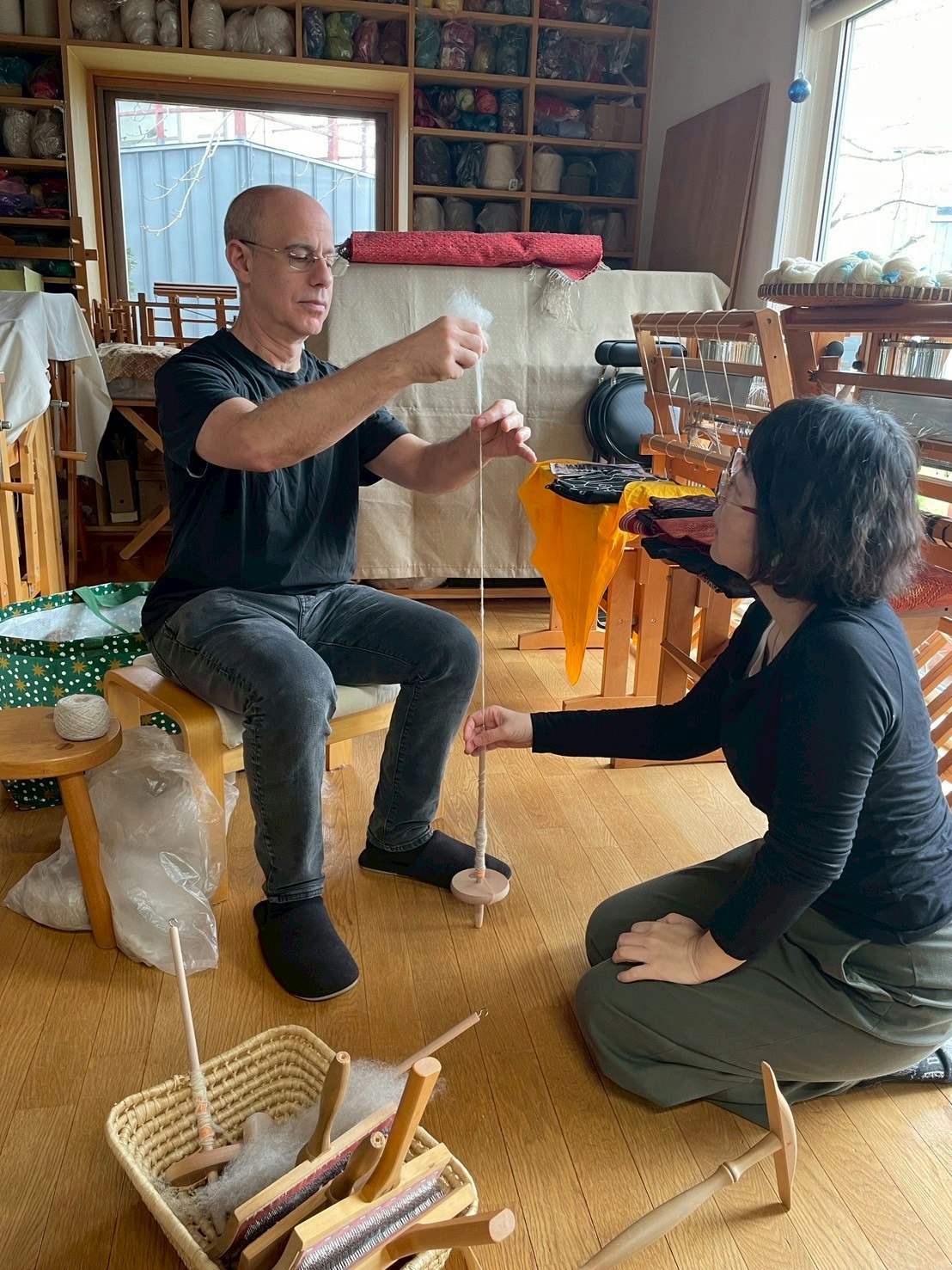 We enjoyed our three days with Koko so much--from her impeccably planned syllabus to the delightful company and snacks, we loved sharing time in her studio with Koko, her son and her son's partner, and another artist who acted as interpreter and participated in the fun. We learned about her process of sketching and trimming, about spinning, dying, and of course, weaving. She was an extraordinary h Read more