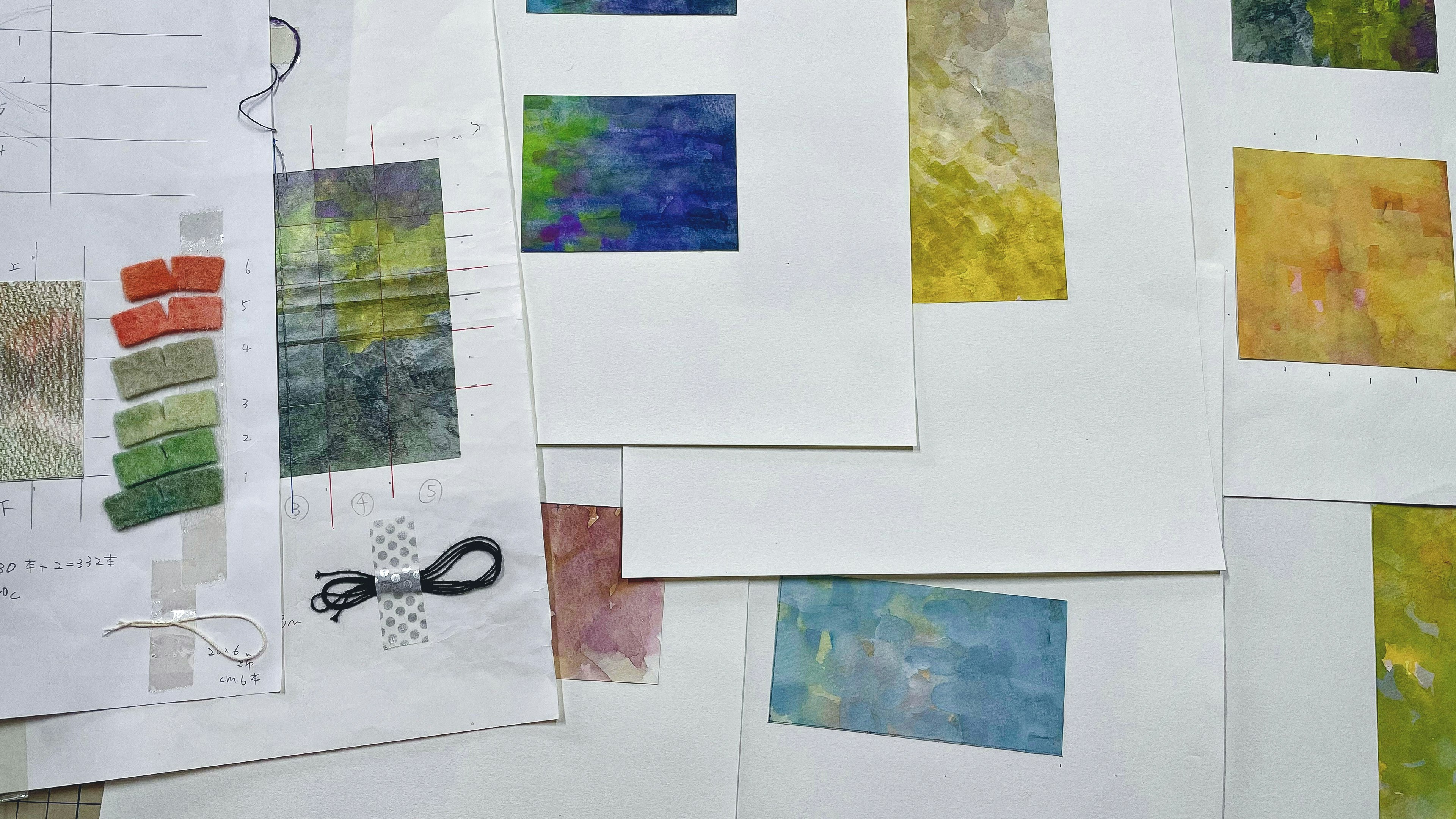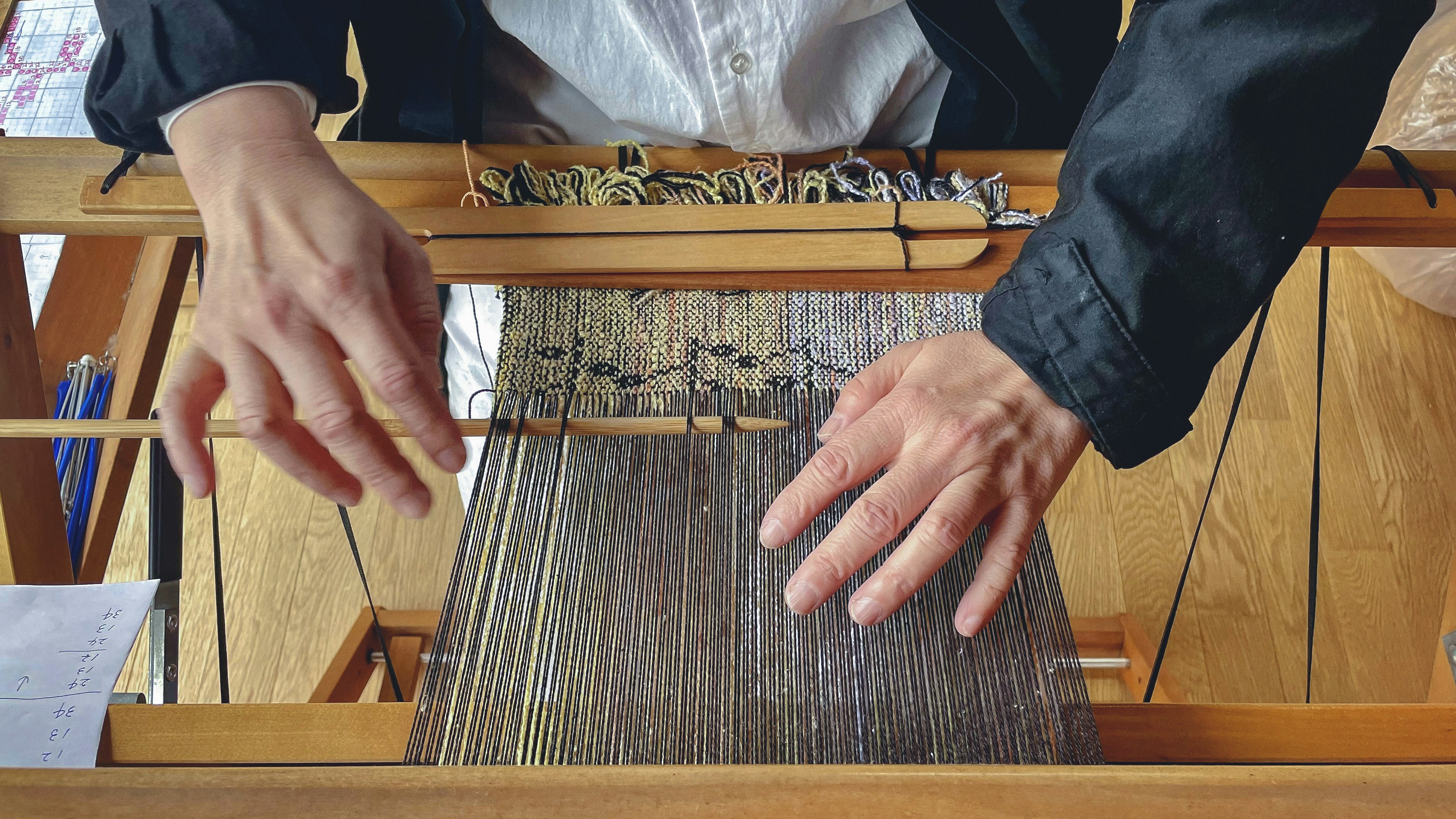 In a unique partnership with a nearby town, she forages for local plants to develop vegetable dyes that produce familiar and gentle colors. Occasionally, she ventures beyond natural dyes, experimenting with chemical dyes that offer vibrant and long-lasting hues. Koko's distinct approach results in intensely local works, with motifs inspired by Hokkaido's seasonal changes and landscapes.