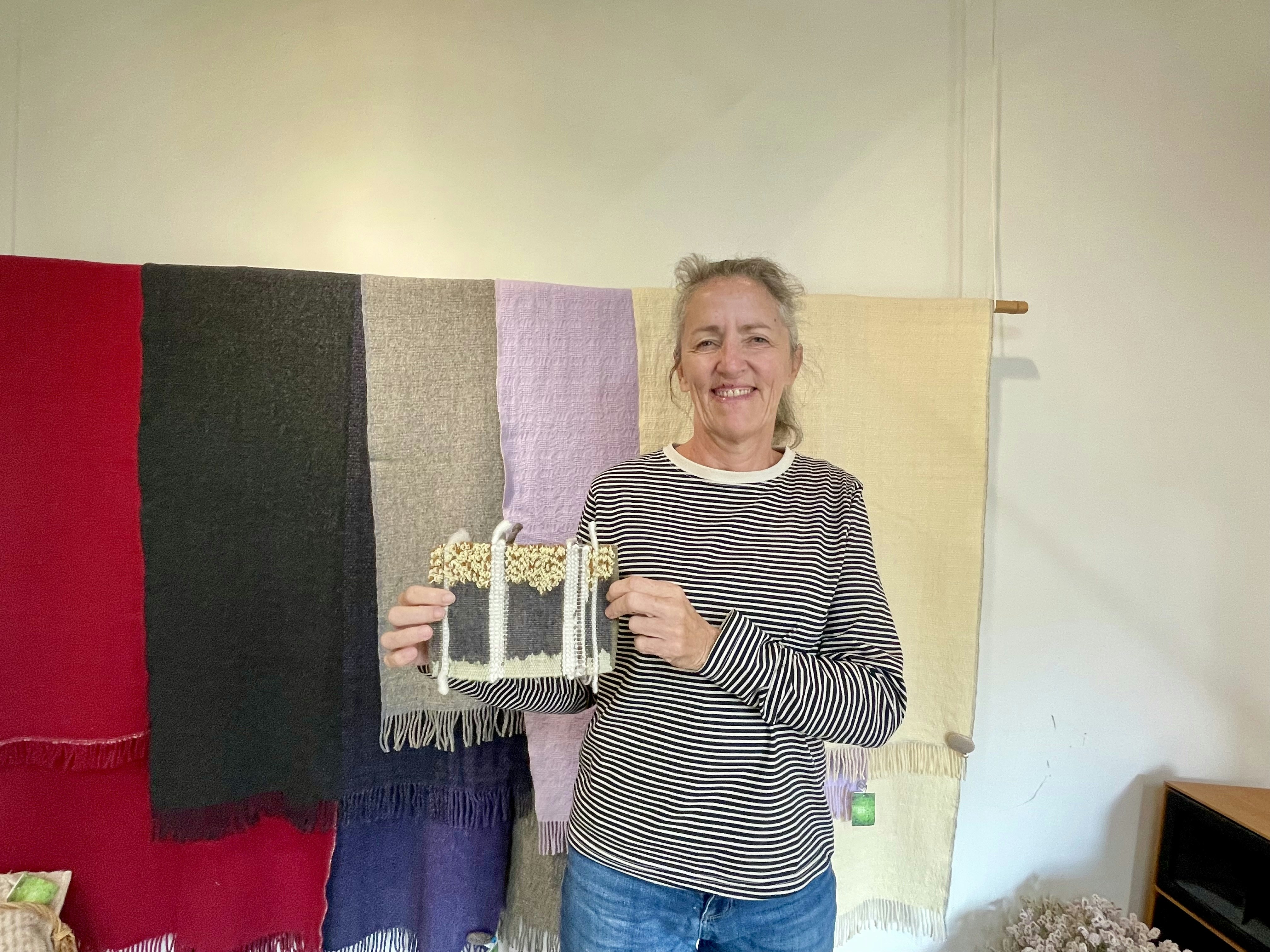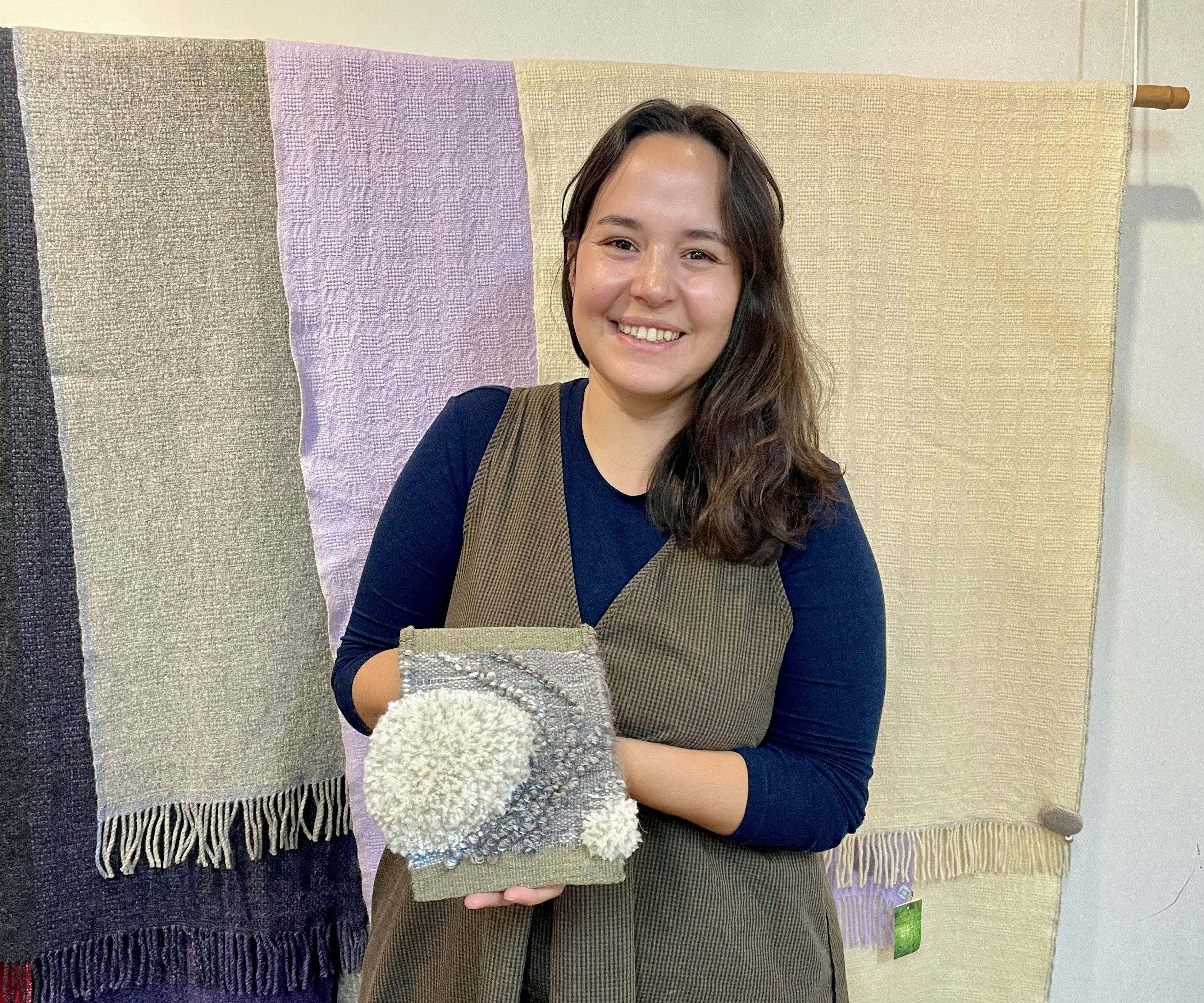 After college, she moved to Hokkaido, home to more than half of the country's sheep, and discovered abundant unused and discarded local wool. This kickstarted a lifelong commitment to using local resources. Today, Koko works at all stages of the textile process, creating tapestries, rugs, tableware, throws, scarves, and three-dimensional artworks.