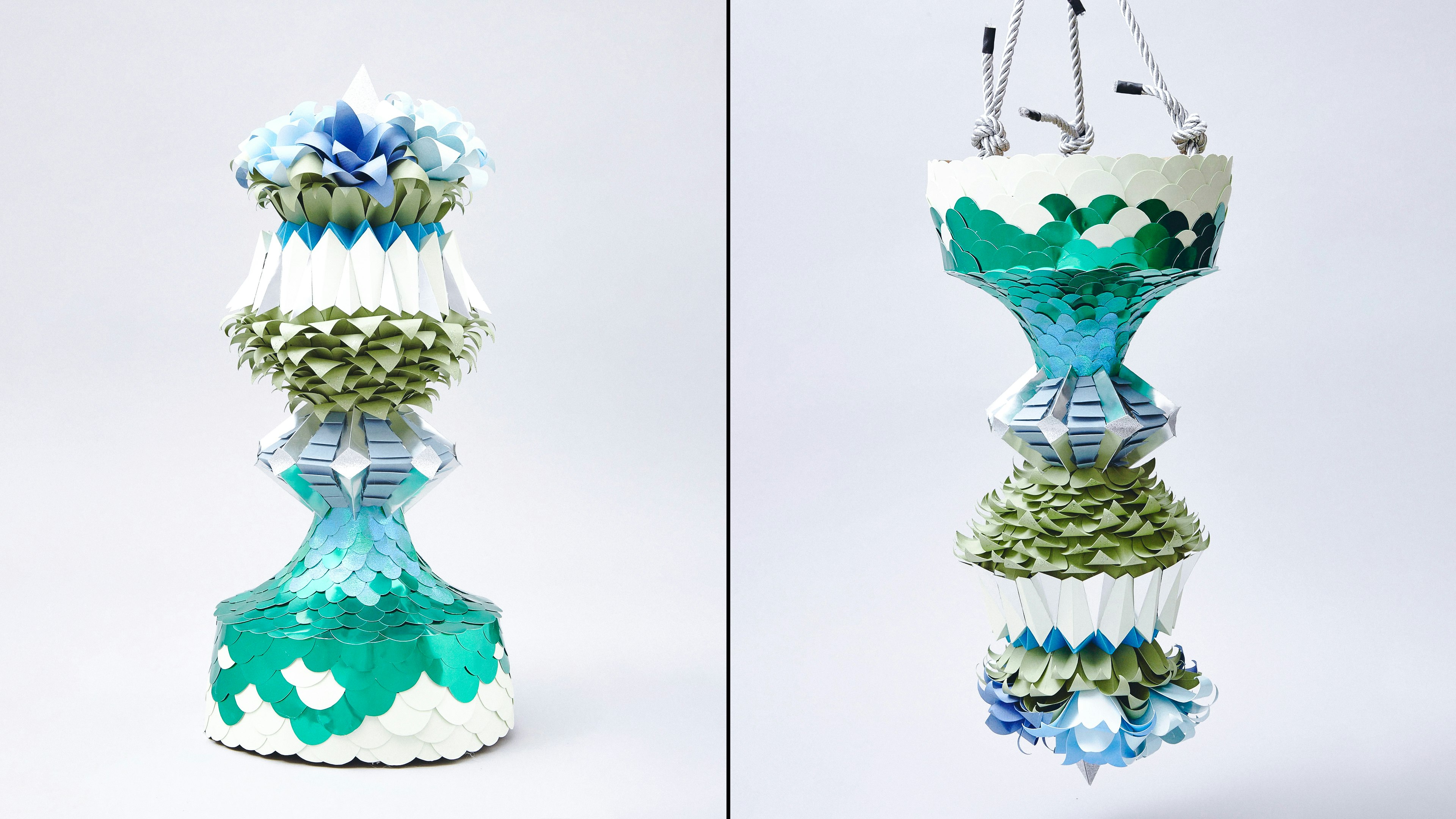 Best known for her dynamic paper sculptures and installations, Lacy uses humble materials like paper, cardboard, and found objects to construct dreamlike environments. Her tactile process involves meticulously hand-cutting, folding, pulping, and airbrushing hundreds—sometimes thousands—of elements to build large-scale works that are both intricate and expansive. Foil, glitter, and miniatures occasionally punctuate the pieces, adding layers of fantasy and surprise. Her work is deeply physical, requiring time, repetition, and an embrace of imperfection—an approach she describes as meditative and therapeutic, echoing the whimsical inventiveness of Charlie and the Chocolate Factory. Her recent work also incorporates Solarpunk and Lunarpunk themes, envisioning regenerative and collaborative futures.