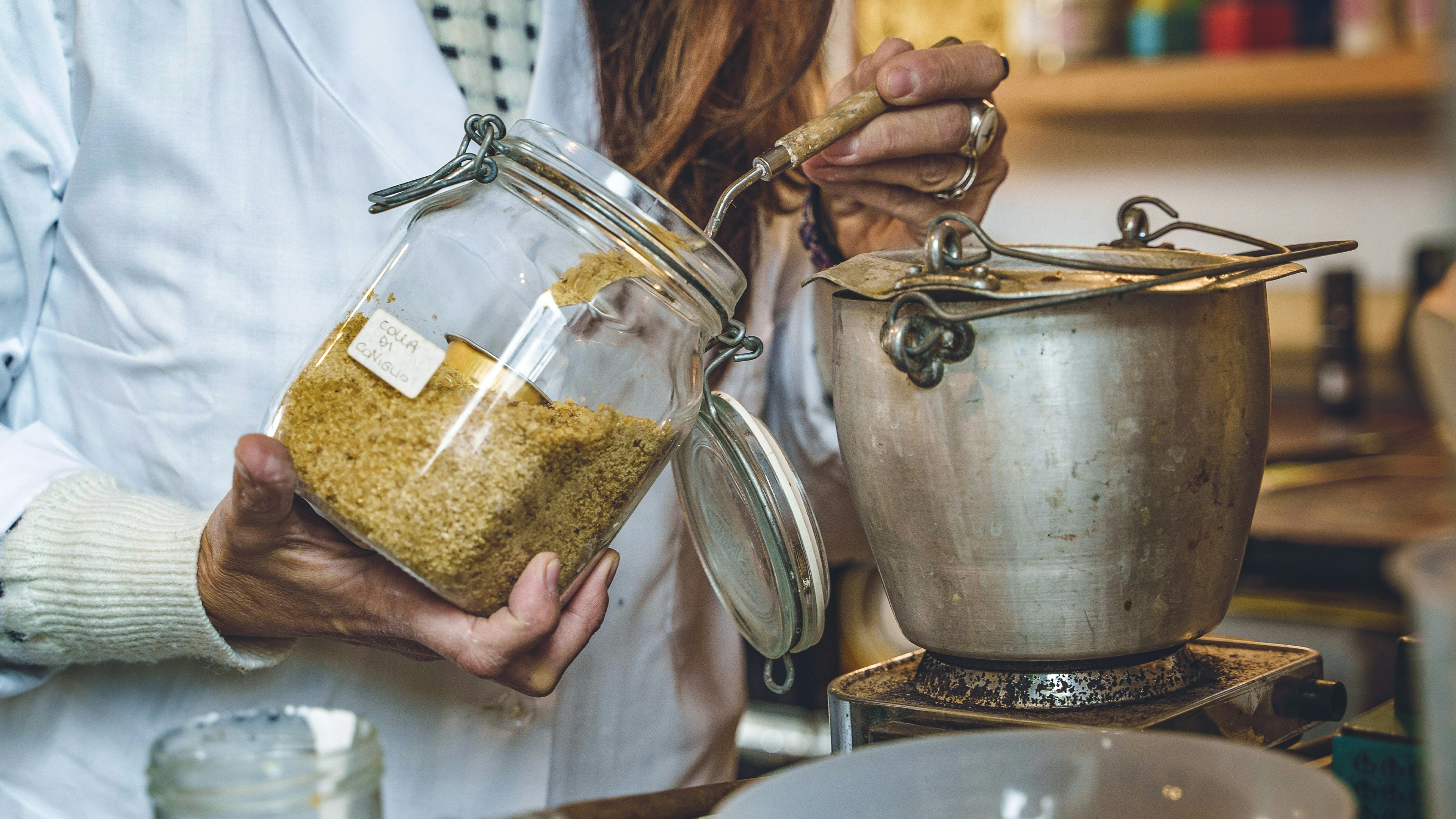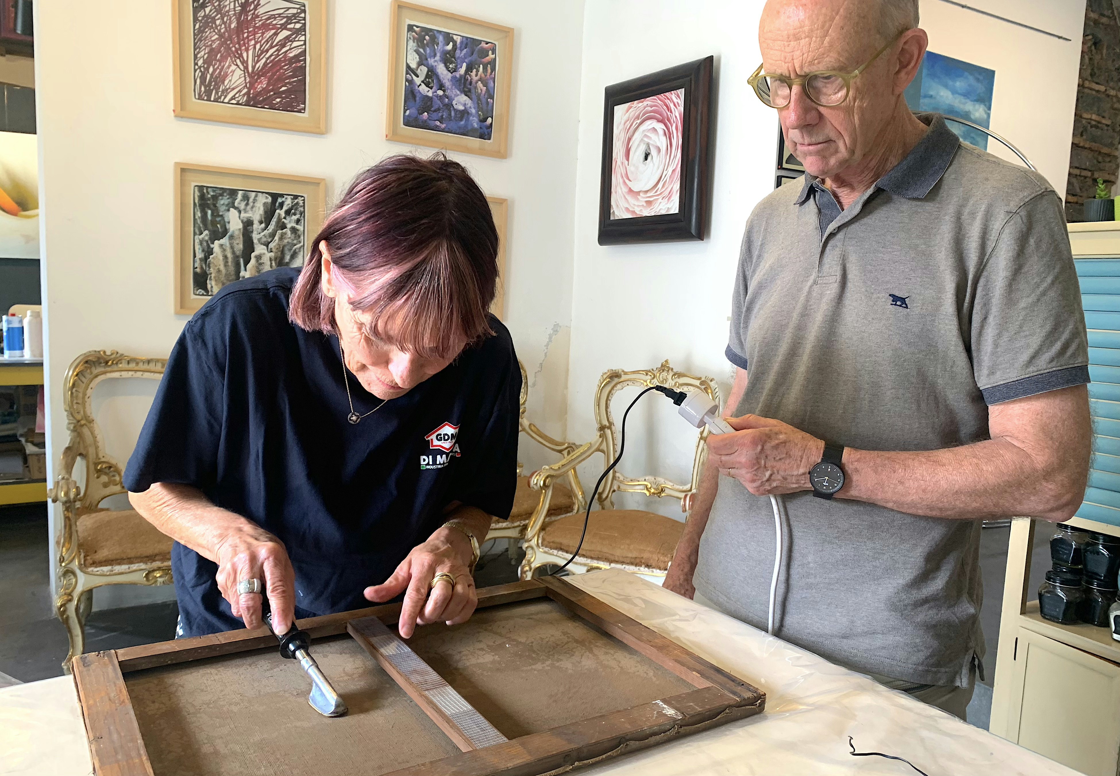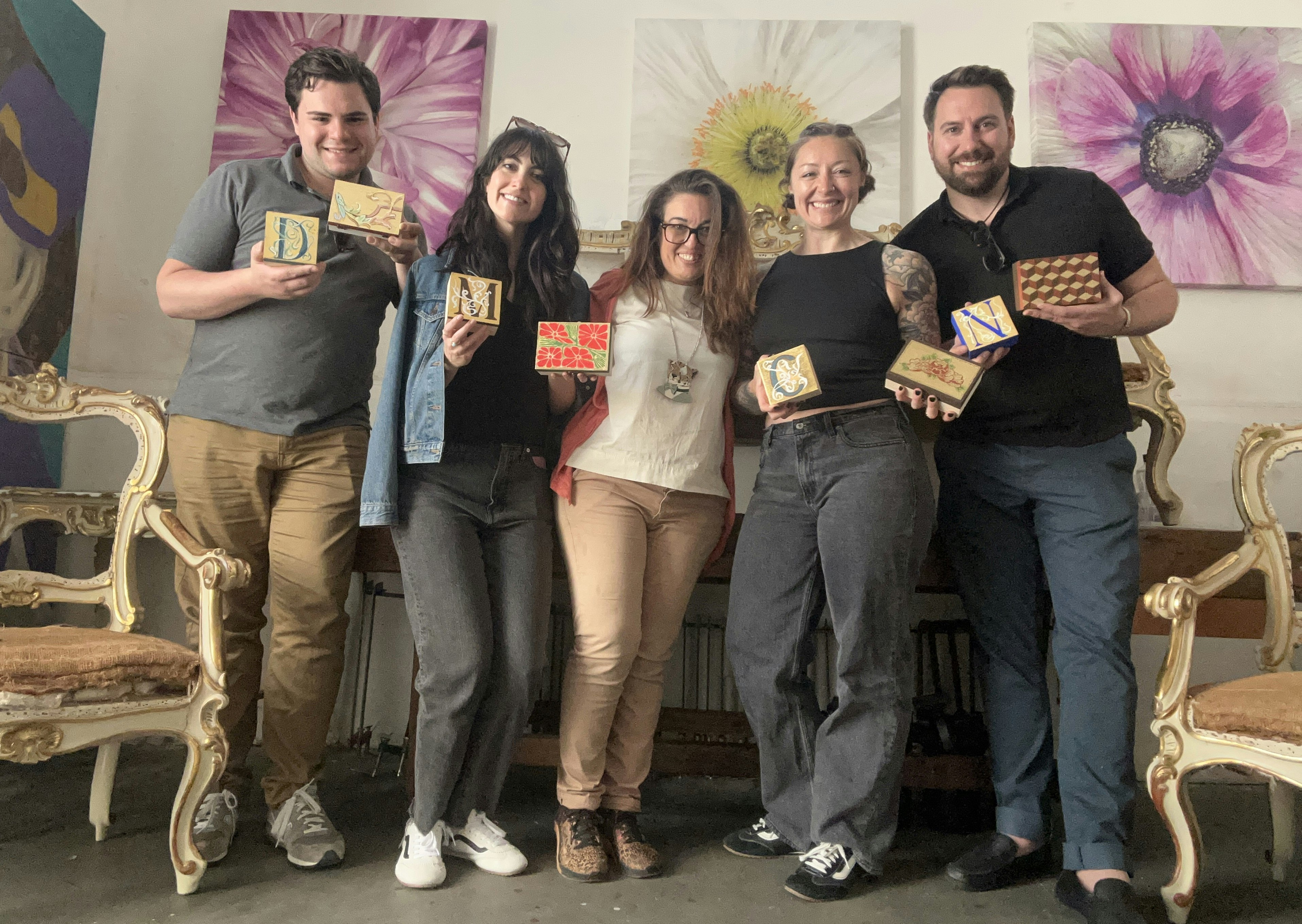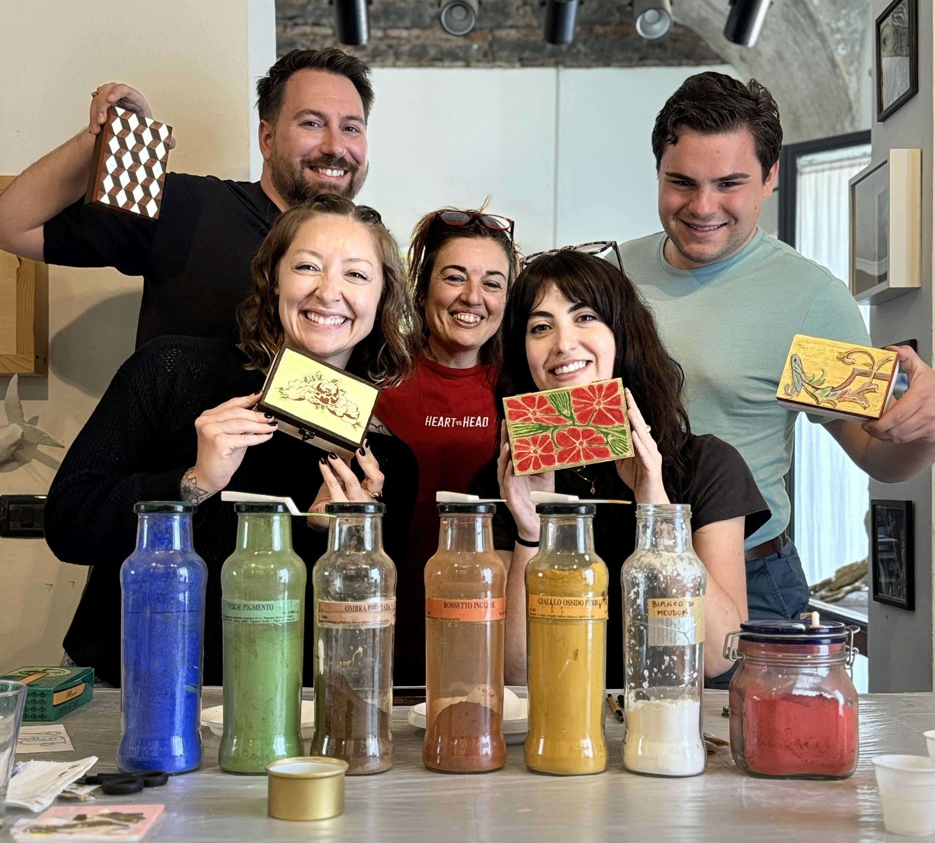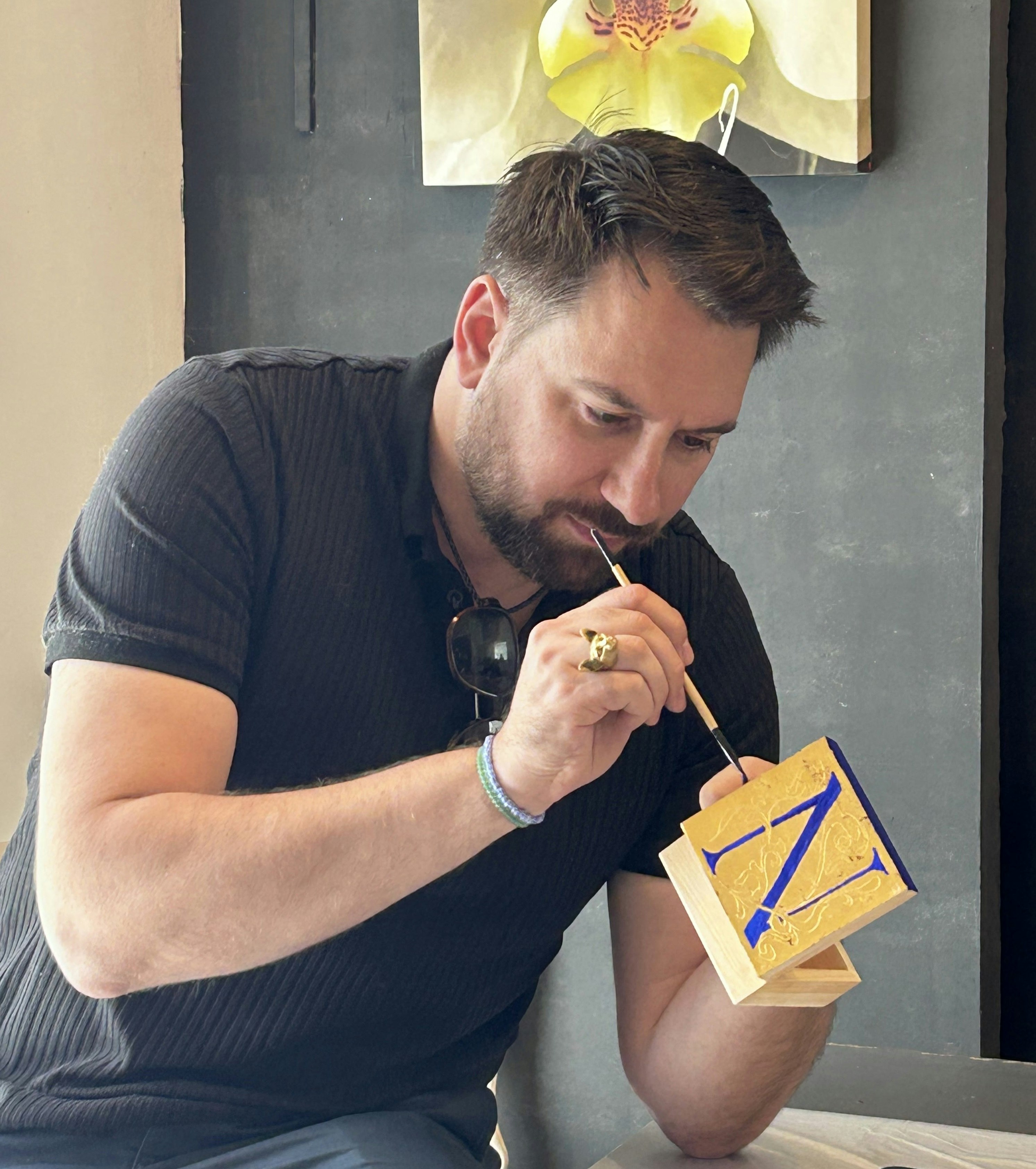 - Ancient natural wood decoration techniques like casein tempera, albumin tempera, and golden leaves.