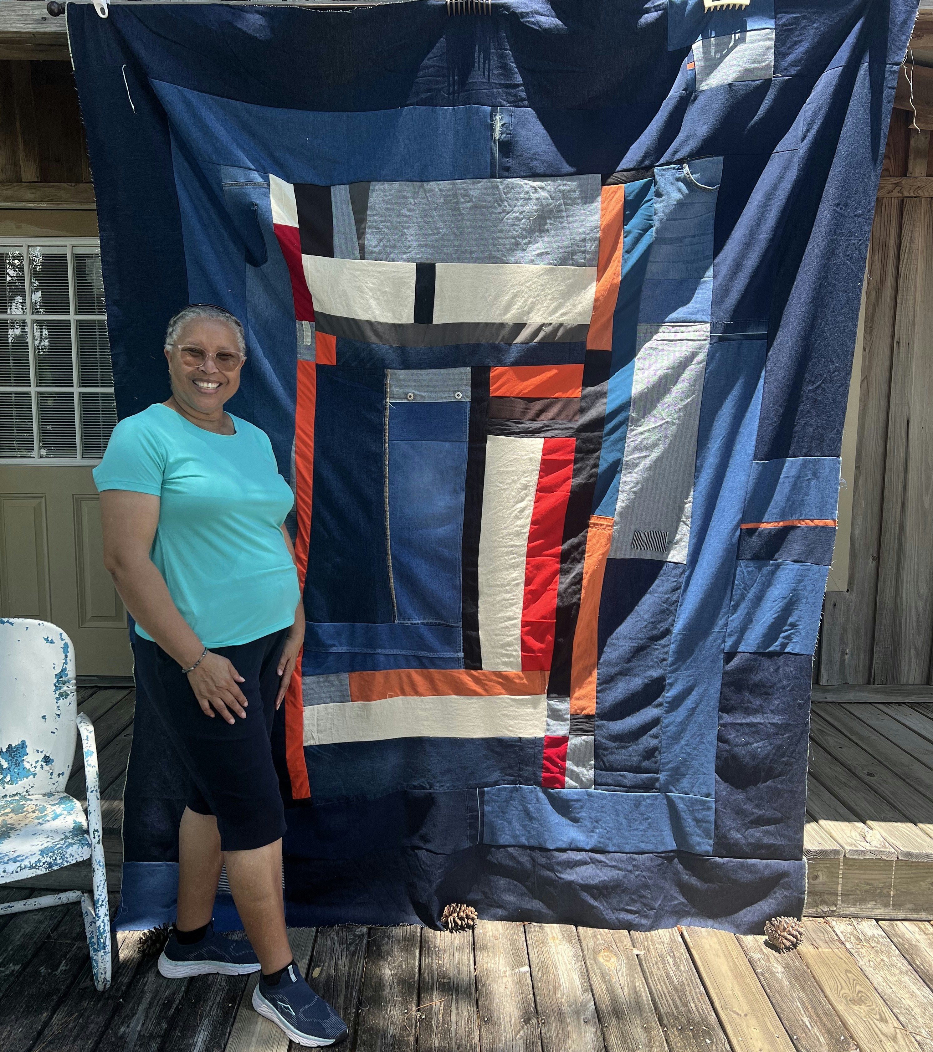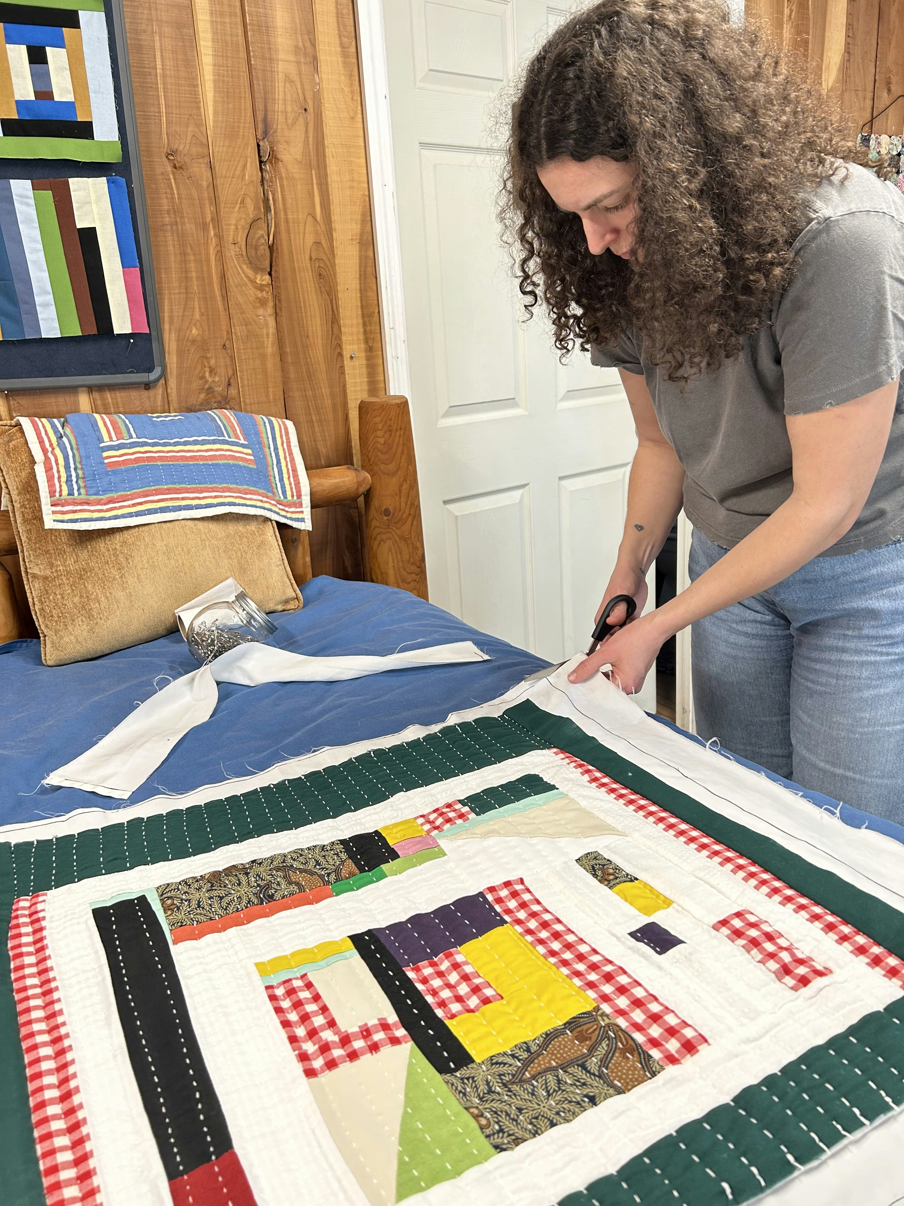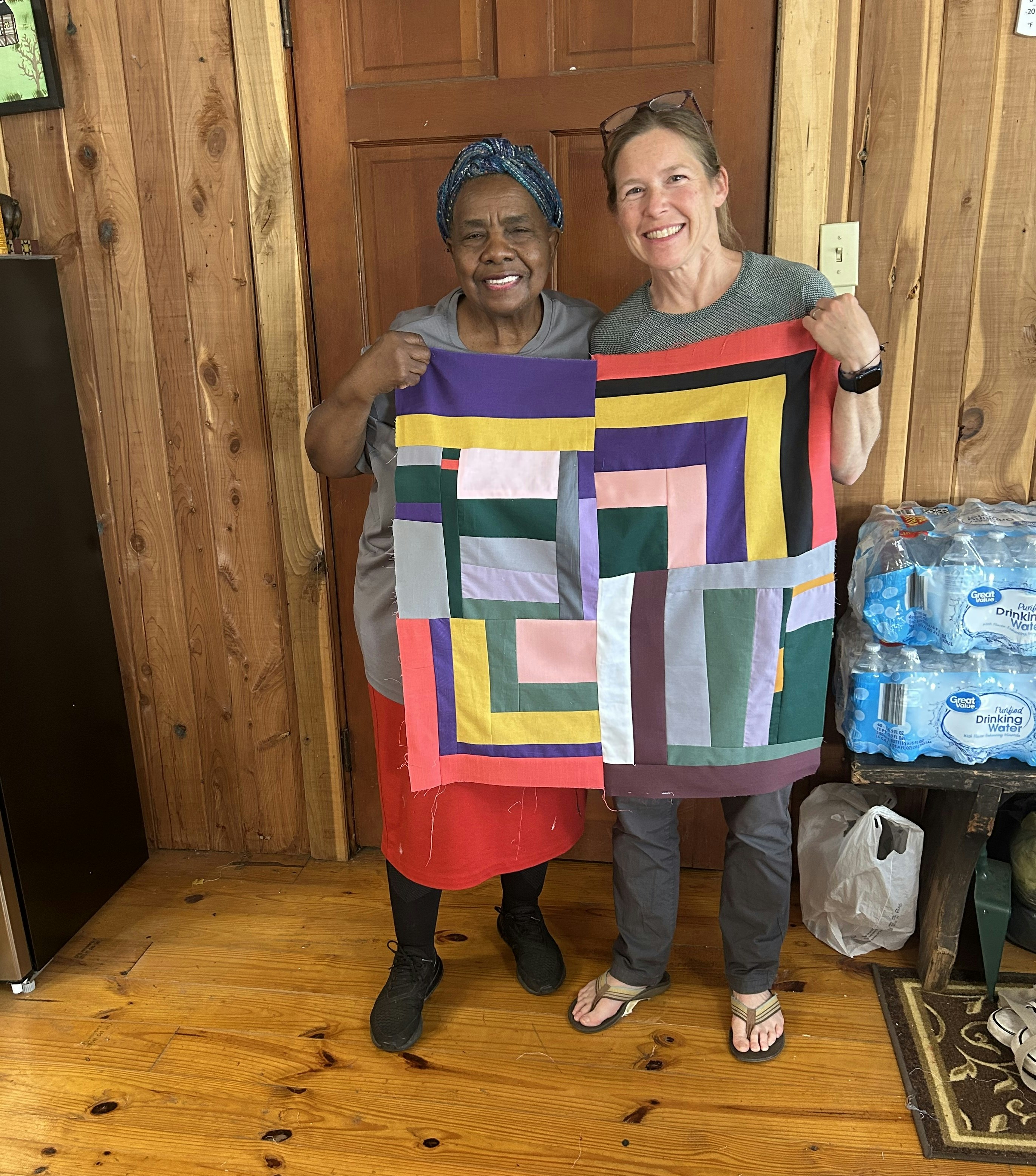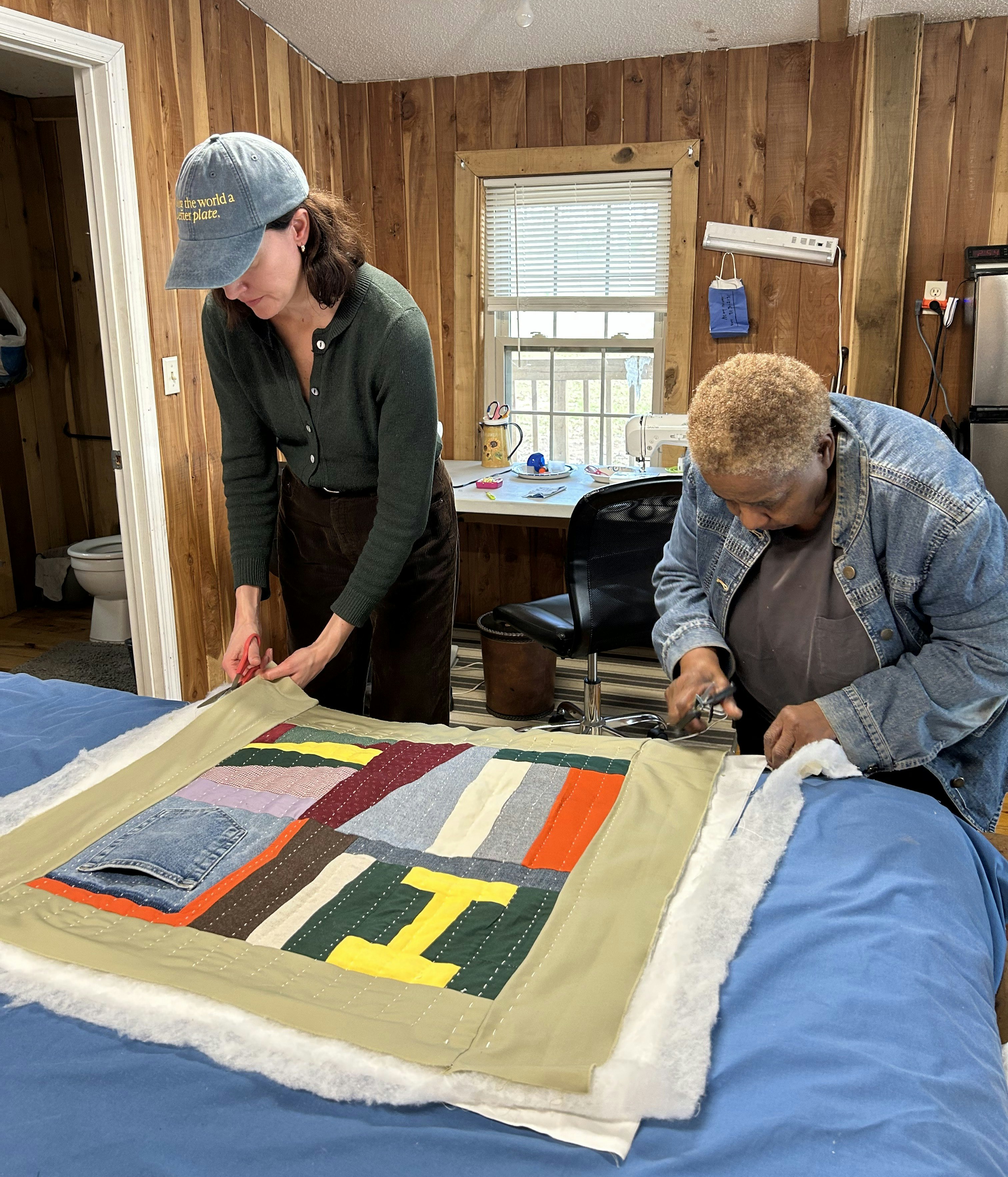 Quilting with Loretta & Marlene was a magical experience. We are sewing novices and they guided us with such patience. Our time with them was so peaceful and rejuvenating. And we love our quilts, which are infused with our family’s pieces of fabric but also with Gee’s Bend style.