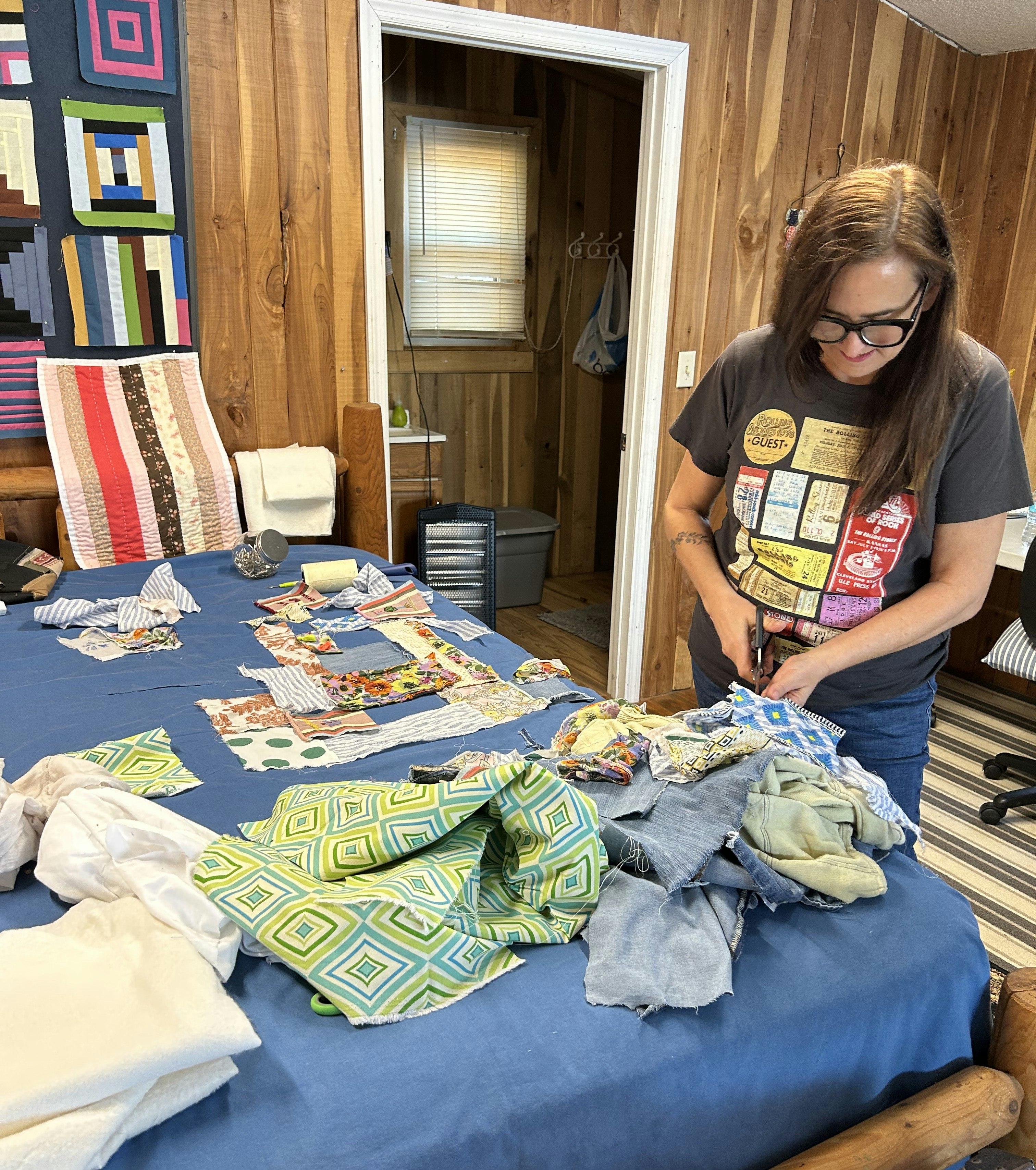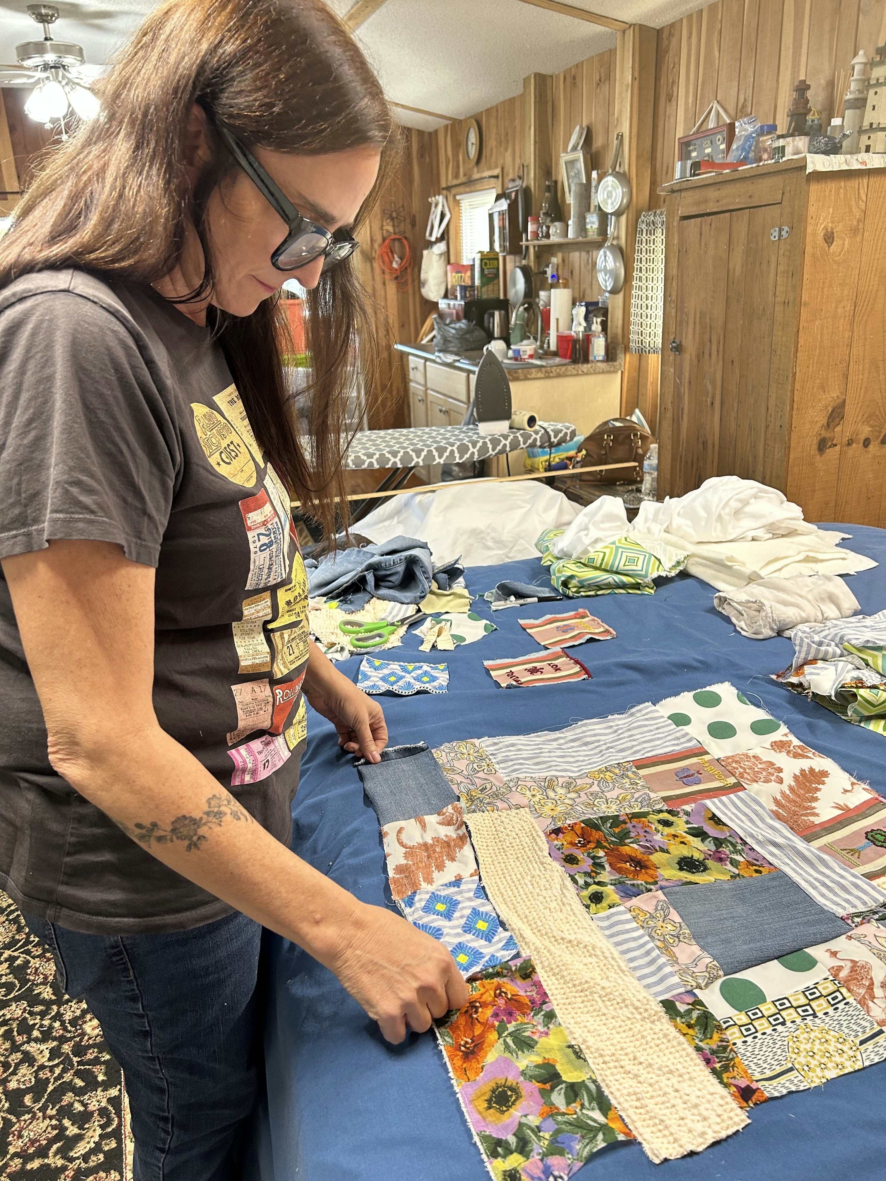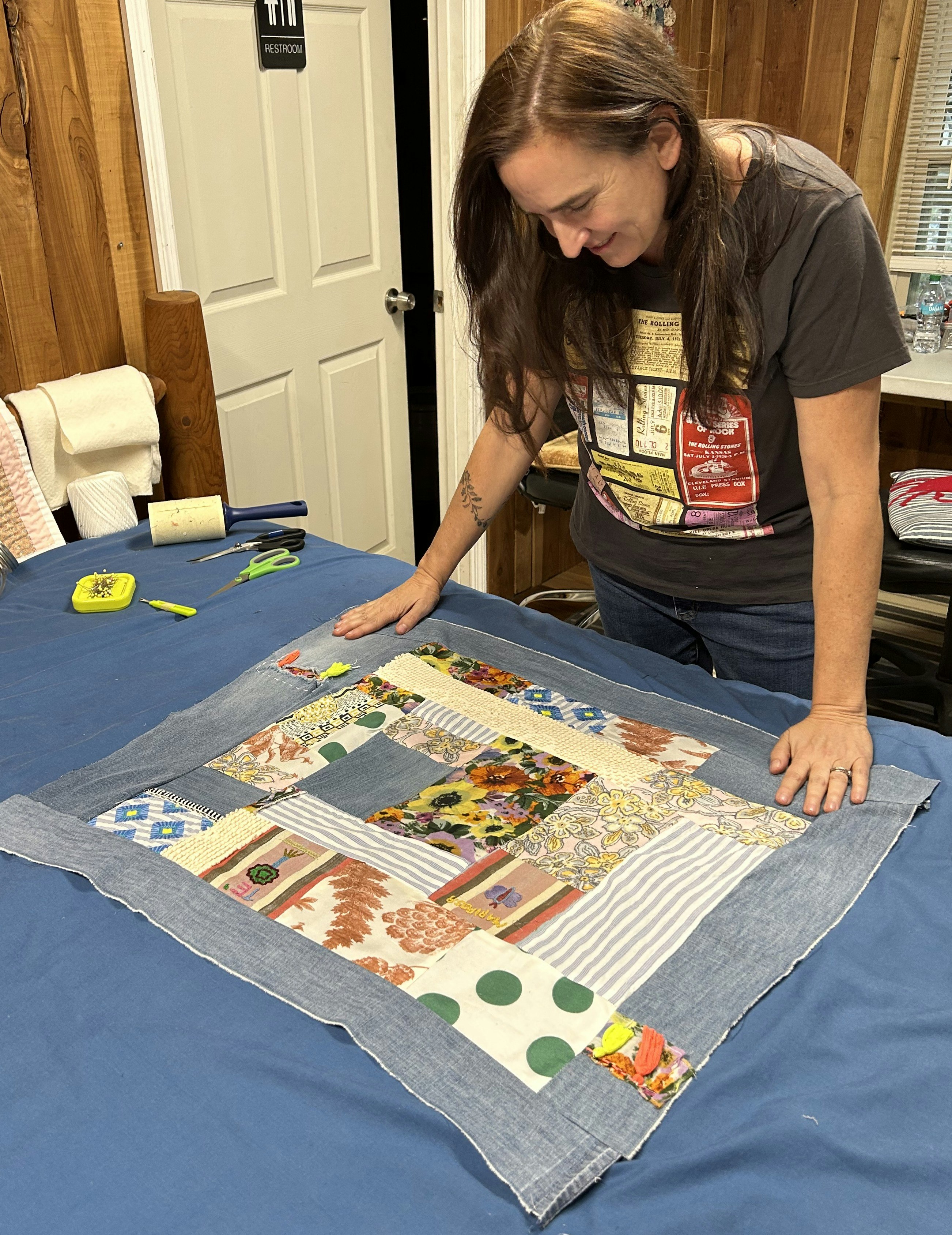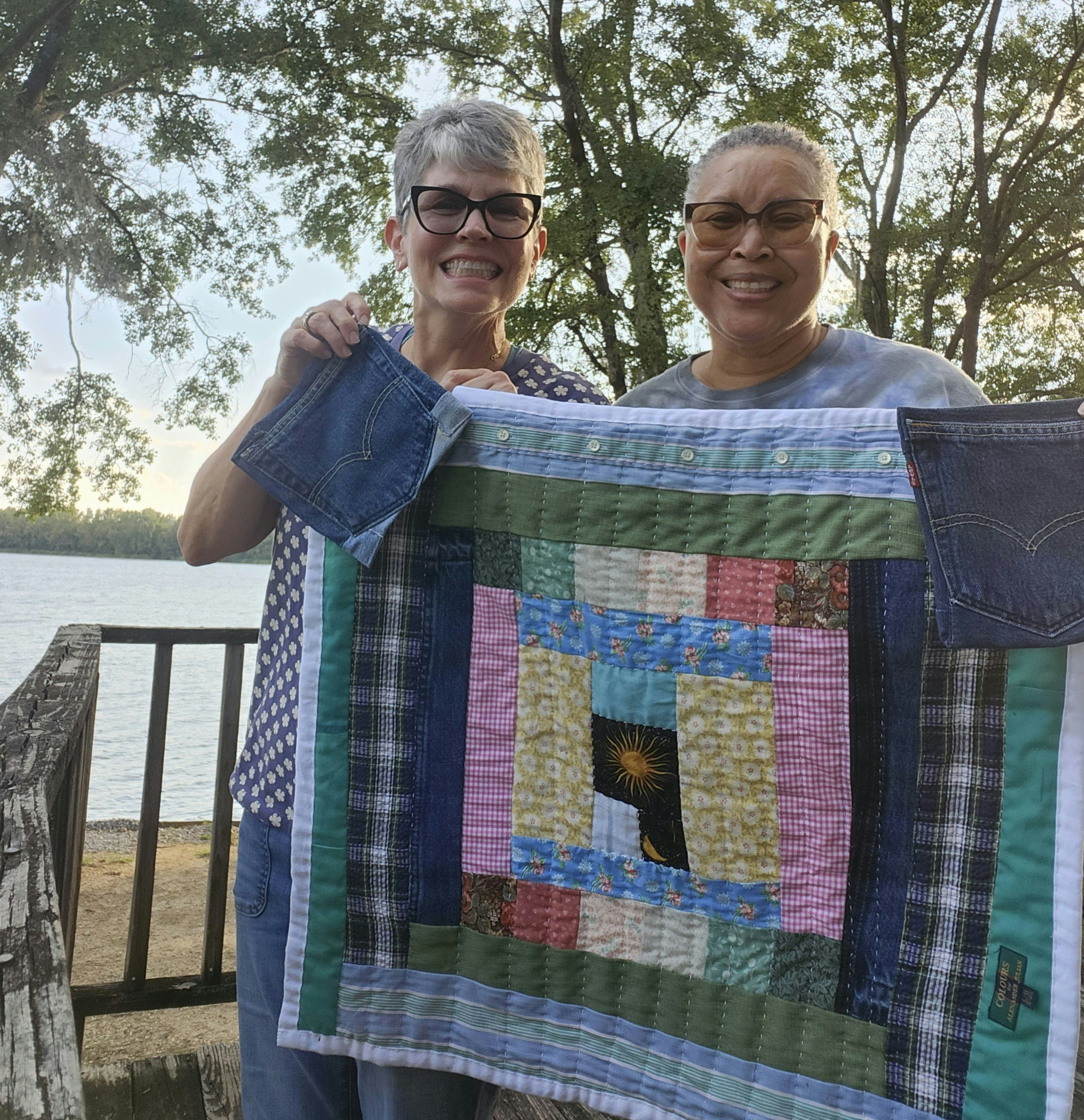 Quilting with Loretta & Marlene was a magical experience. We are sewing novices and they guided us with such patience. Our time with them was so peaceful and rejuvenating. And we love our quilts, which are infused with our family’s pieces of fabric but also with Gee’s Bend style.