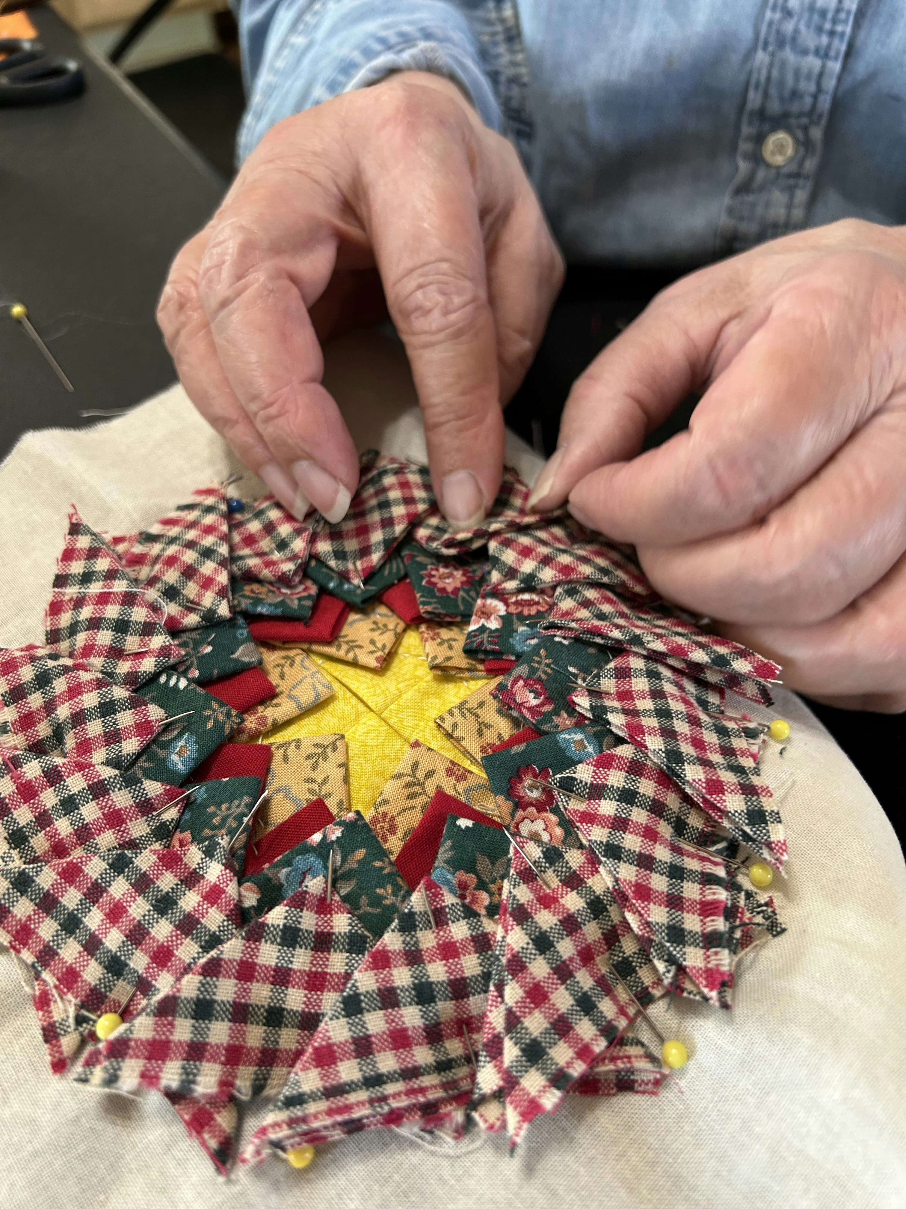 My time with Loretta gave me a deeper insight to the art produced there and the women who continue the traditions. I throughly enjoyed our time together, her instruction and conversation. I’m delighted with my piece and inspired to continue to create with fabric. I’m hoping to teach the Burr Pine technique at my local library. Thank you Loretta and VAWAA for an outstanding learning opportunity.
