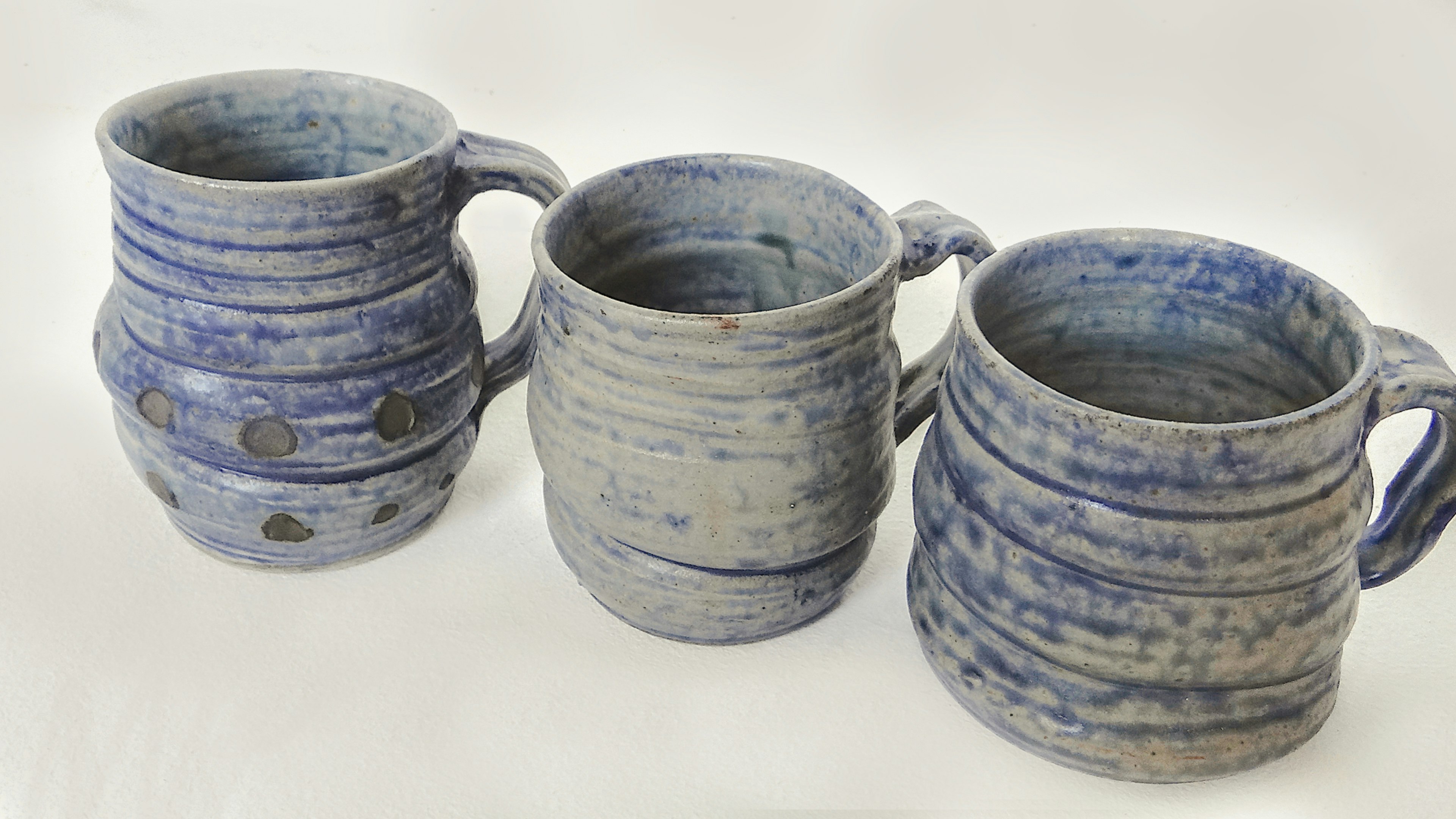 At Goldsmith’s College in London, she was privileged to learn from master potters including Magdalene Odundo, Takeshi Yasuda and Lisa Hammond. Ray Silverman, a pupil of Lucie Rie, taught glaze making. During an internship with Alan Caiger-Smith she learnt production throwing producing majolica ware and lusterware and assisting with wood firings.
