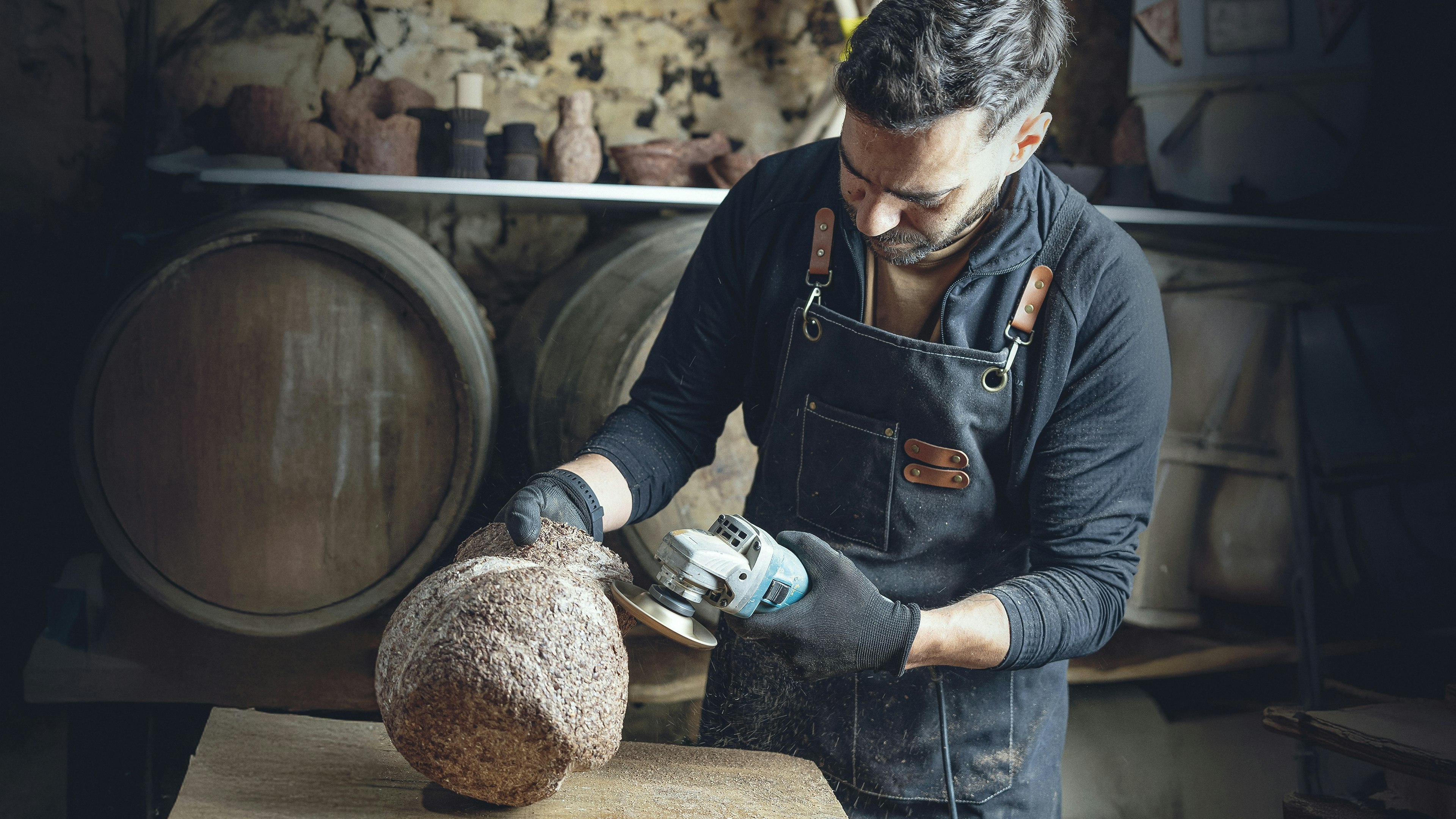 He is best known for creating a biodegradable material made from chestnut shells—an agricultural byproduct often discarded. This material stands out for its natural texture and warm appearance, evoking the aesthetic and emotional qualities of the forest. It can be molded like ceramic, sanded like wood, and naturally dried by mountain air. Using 3D printing, handcraft, and natural drying, Manuel transforms this material into furniture, lighting, and sculptures.