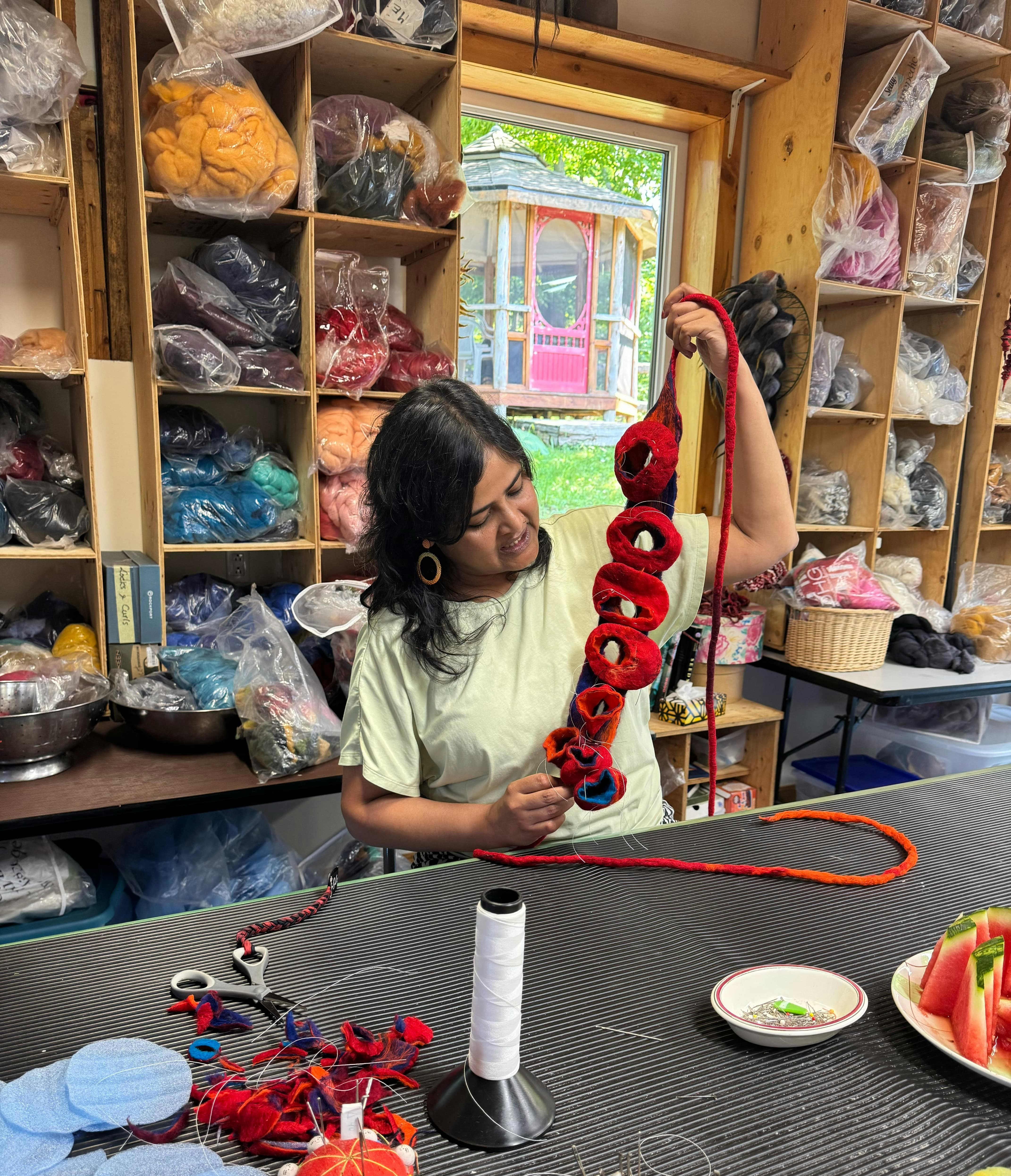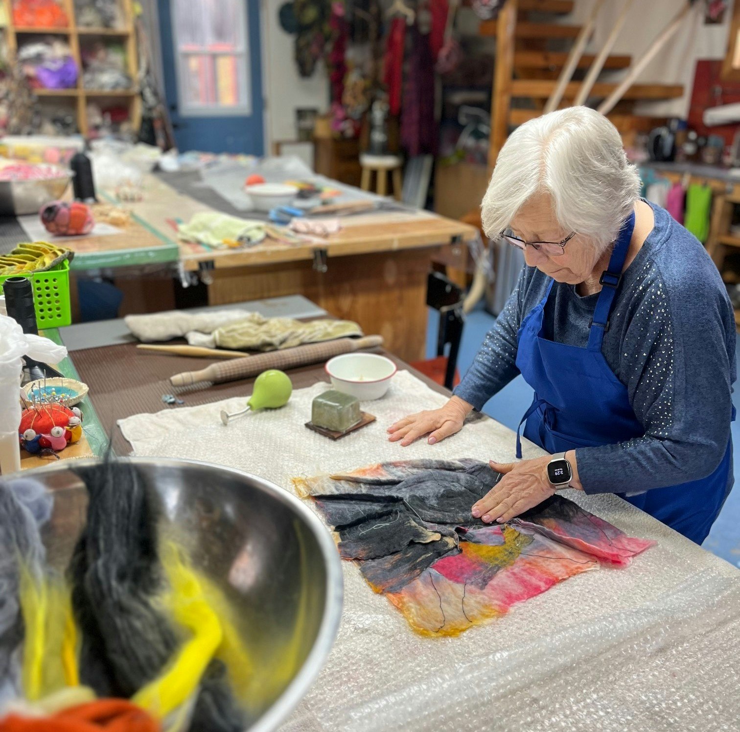 Marjolein believes felting is a very inviting and forgiving art form. She looks forward to welcoming people into her unique, self-created world, sharing her space, and inviting others to connect with this wonderful and forgiving medium. Felting is easy to learn but endless in possibilities. Marjolein believes it is an invitation to inspire others to find an opening to their own unique creativity and experience the joy of making things with their hands.