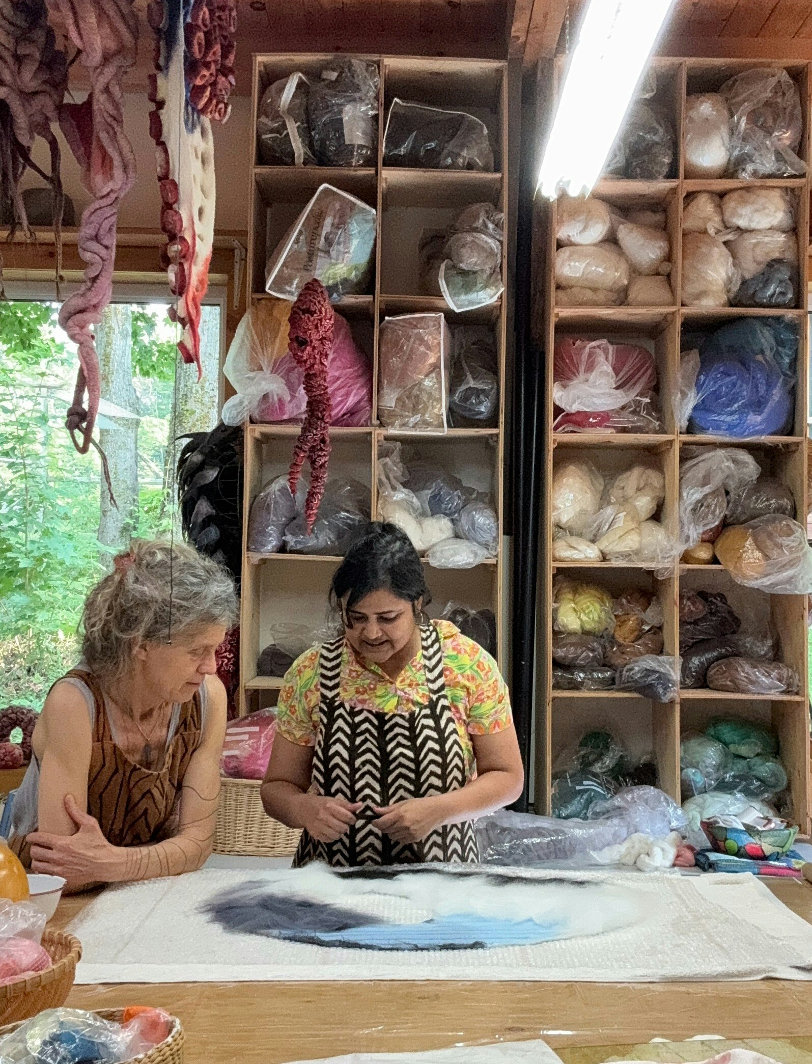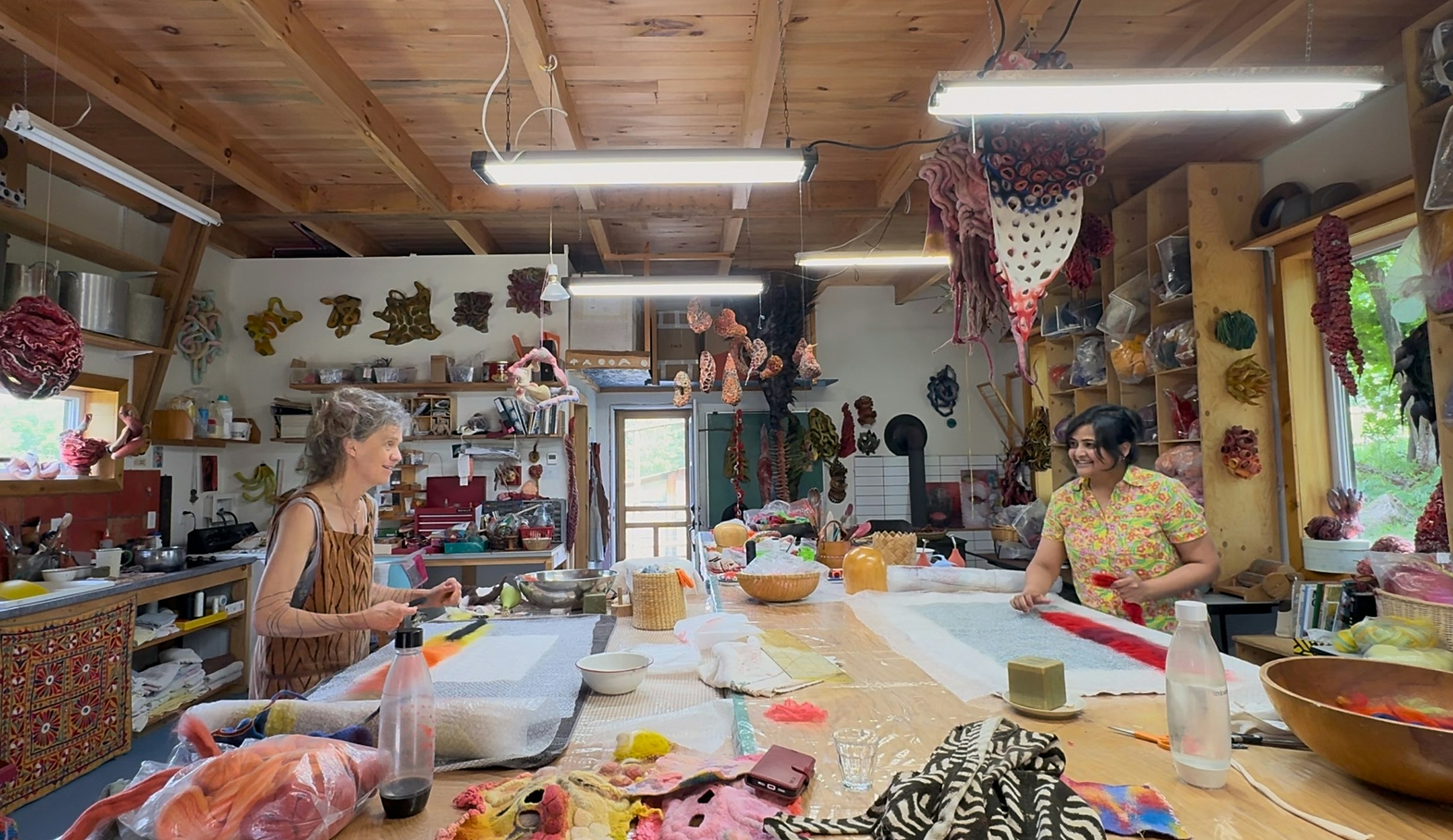 Marjolein lives in a magical forest in the foothills of the Laurentians, a very special place. I stayed in the top floor of her workshop, a cosy wood space with quilts on the bed which had belonged to her mother, and a fridge stuffed with all sorts of breakfast goodies...completely private. Marjolein is a highly respected and globally renowned felt sculptress, who is also a gifted, patient, and re Read more
