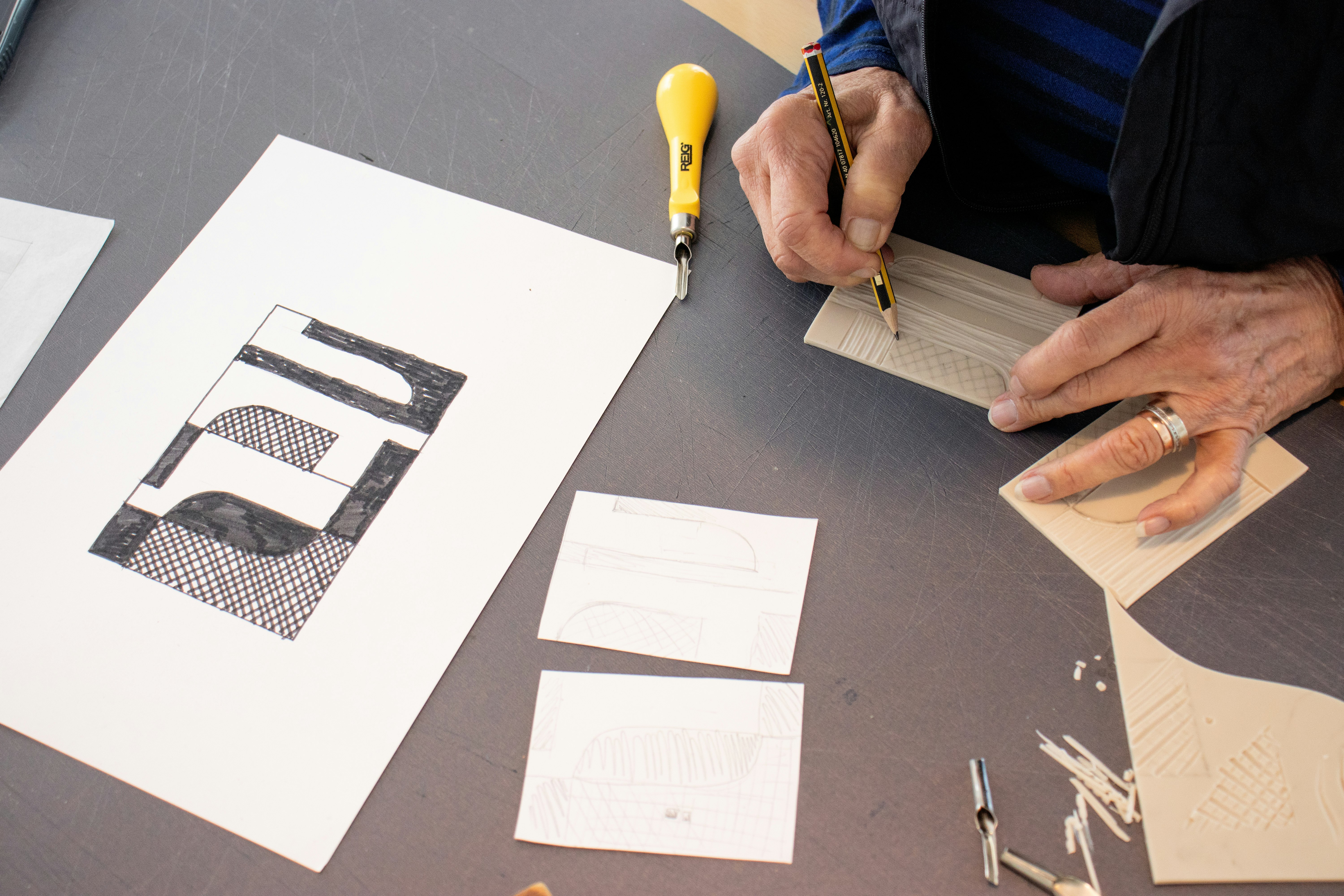 - Design and carve your own stamp using gouges and linoleum or rubber blocks.