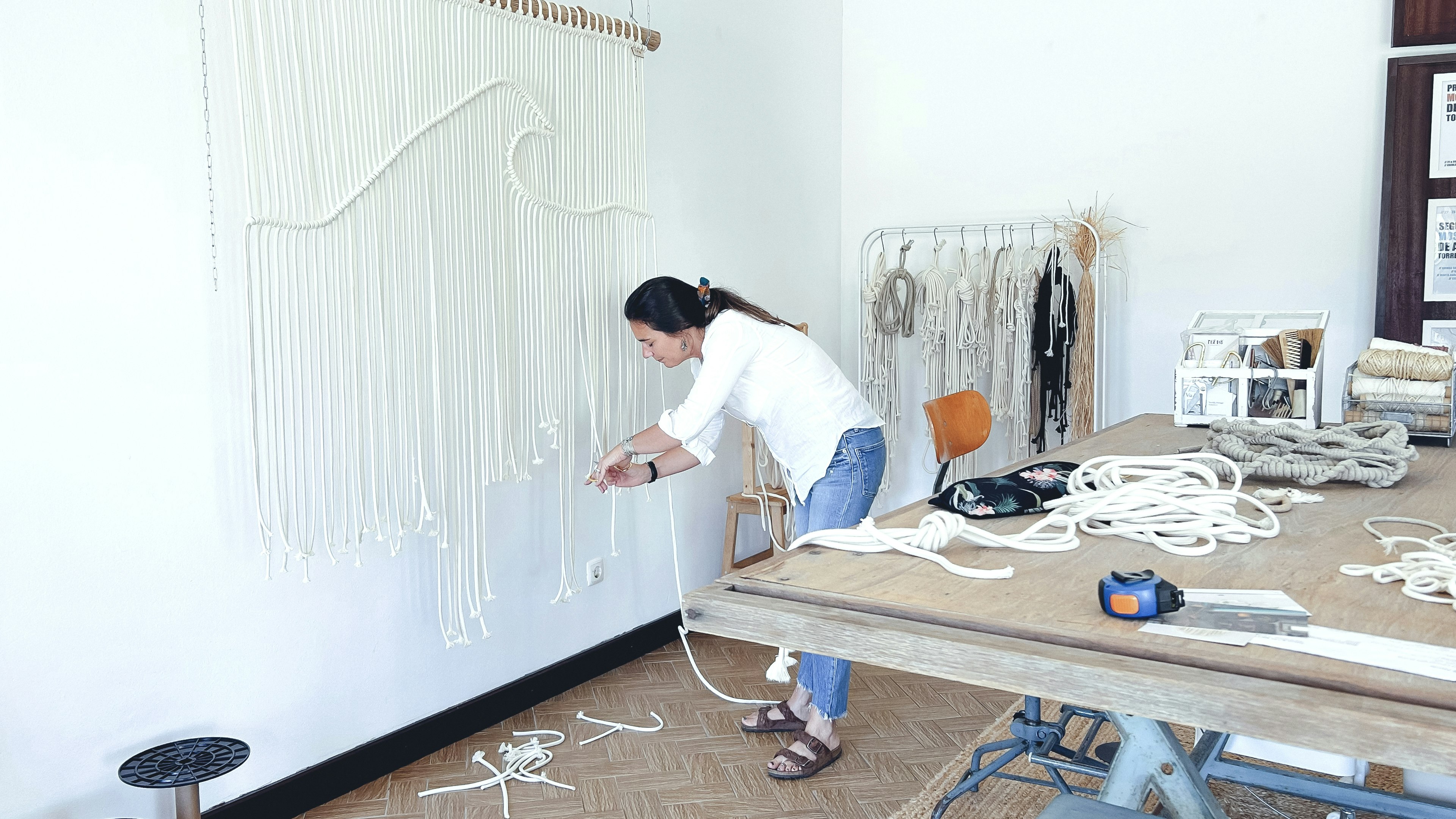 Marta is a Portuguese textile artist known for transforming traditional knotting techniques into elegant, sculptural works for modern interiors. After years working in television, she left screens behind to launch her own macramé studio. Today, Marta is recognized internationally, exhibiting across Portugal and Europe and collaborating with luxury brands and interior designers.