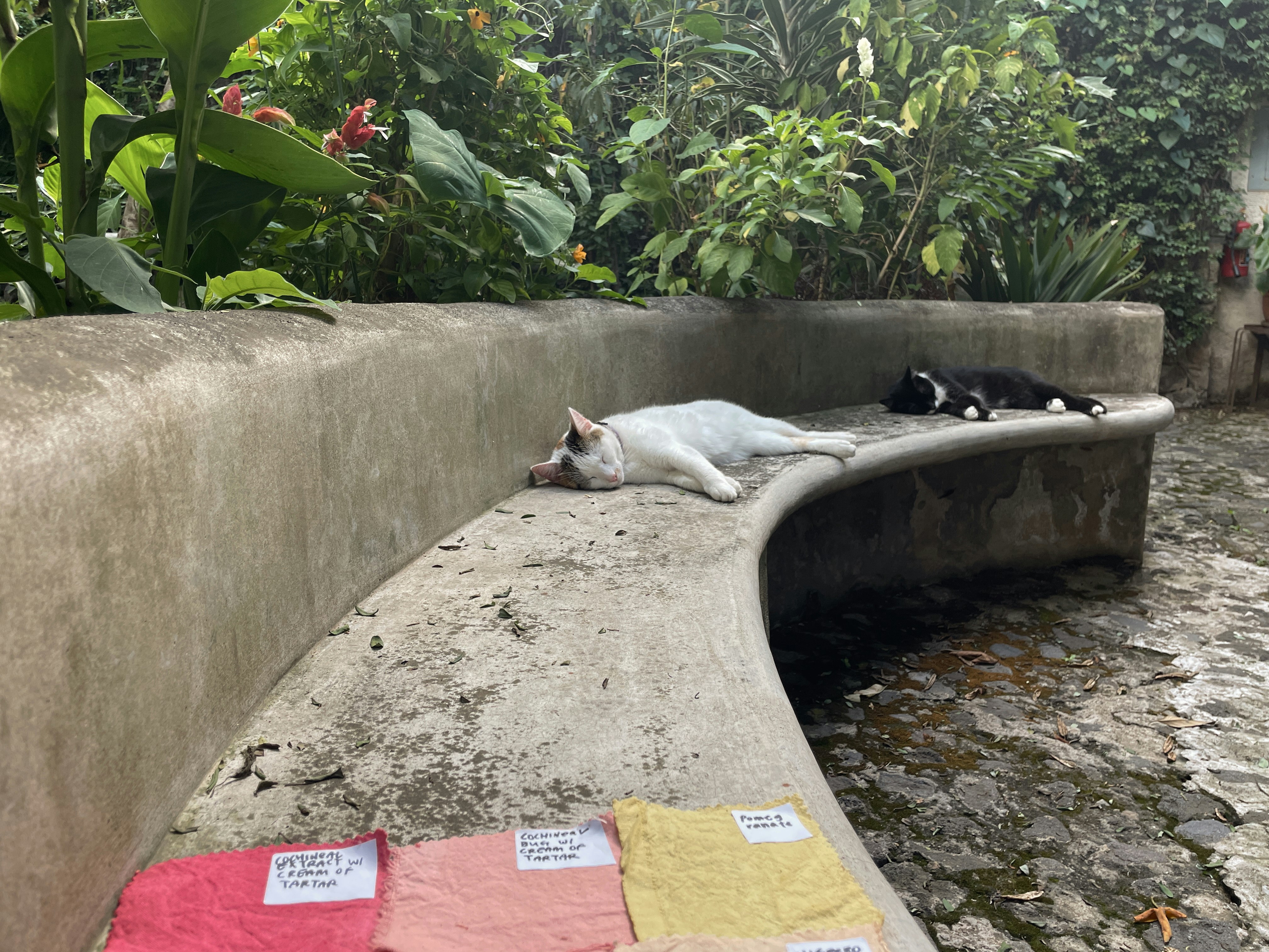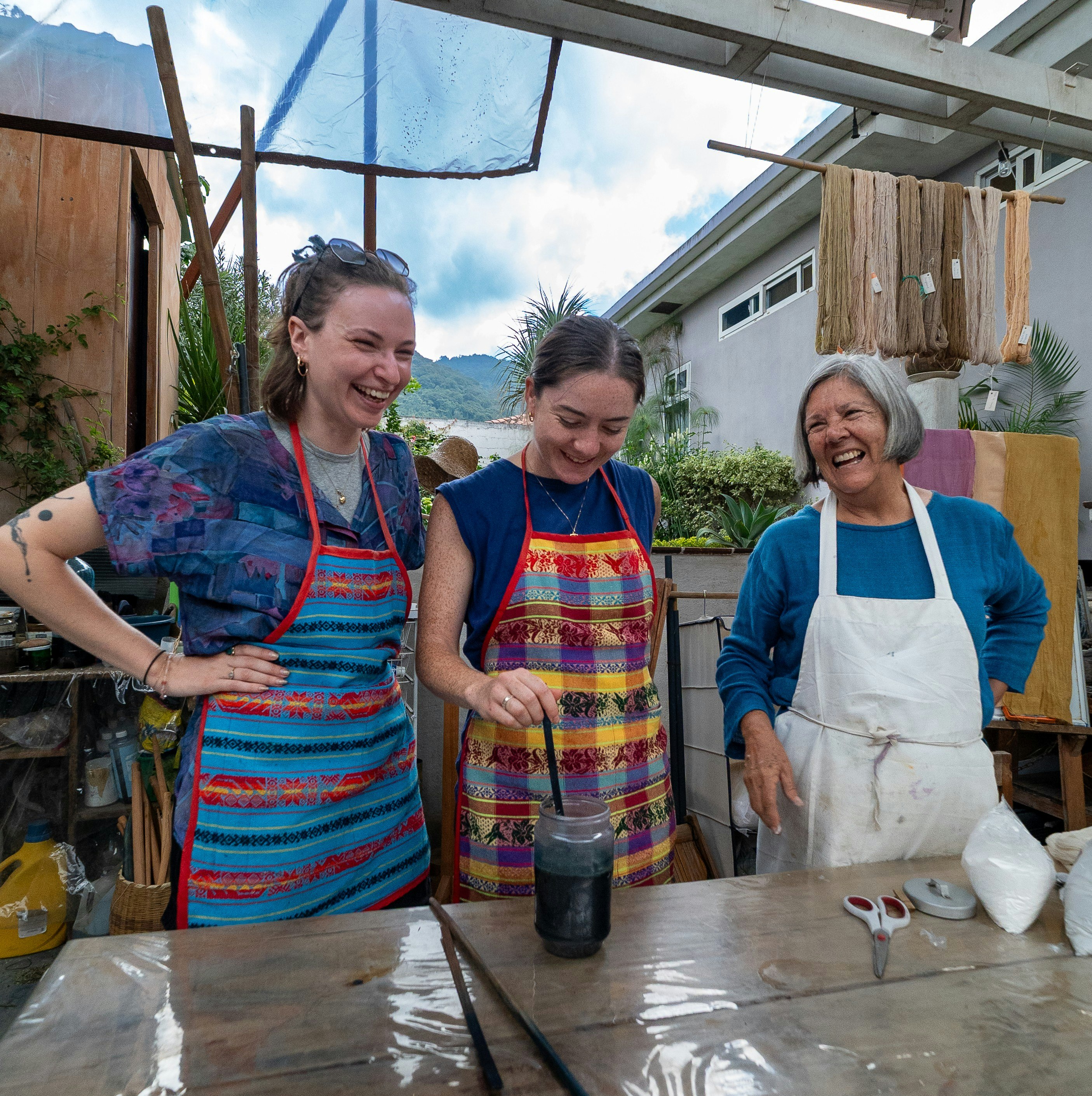 - Afternoon visits to Antigua to meet Olga’s artist friends, look for color inspiration, and explore local markets to buy food and dye pants for the next day’s project.