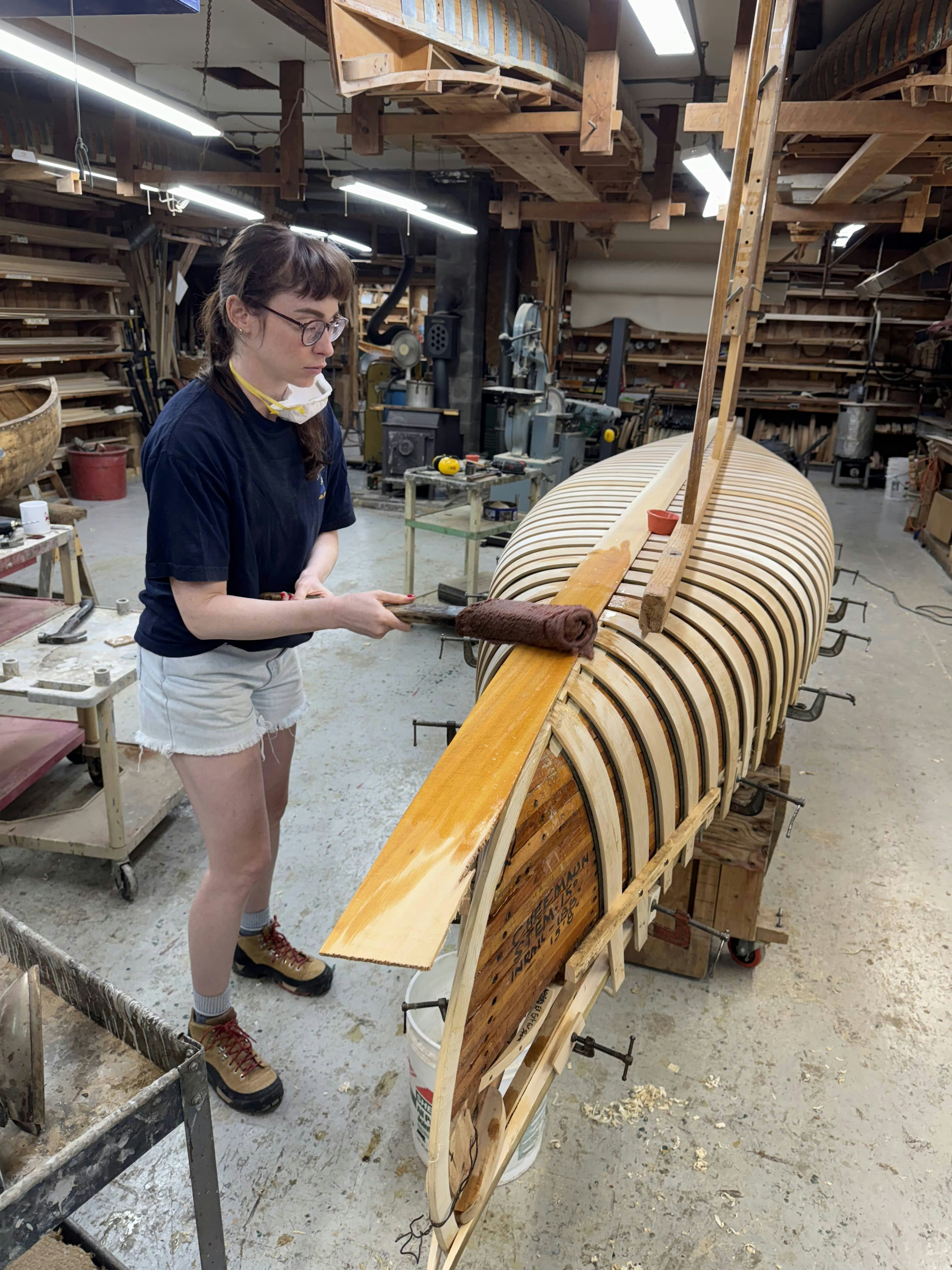 - Learning to shape stems and rails and fit them to the canoe mold.