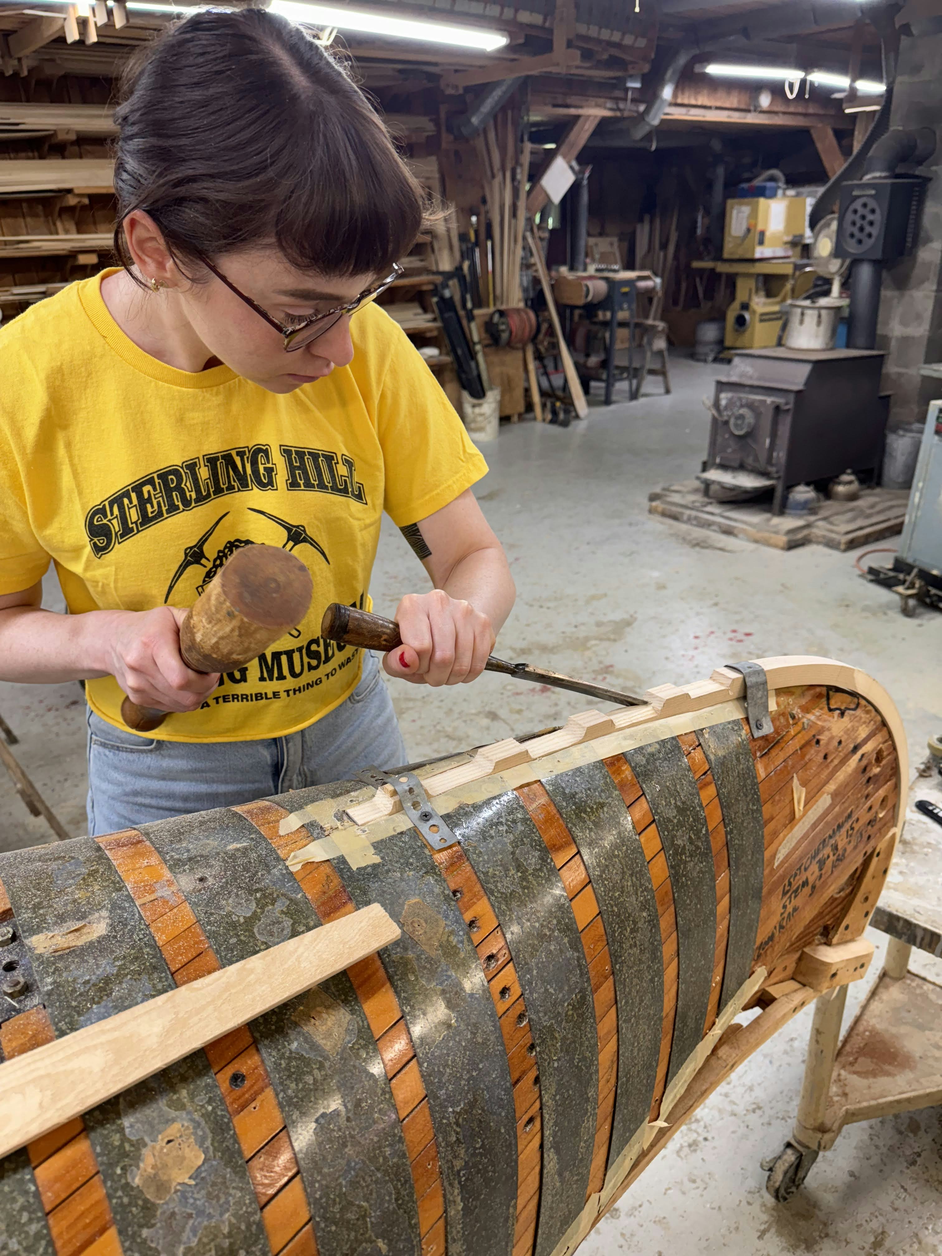 - Shaping and fitting the thwarts to the canoe using hand tools.