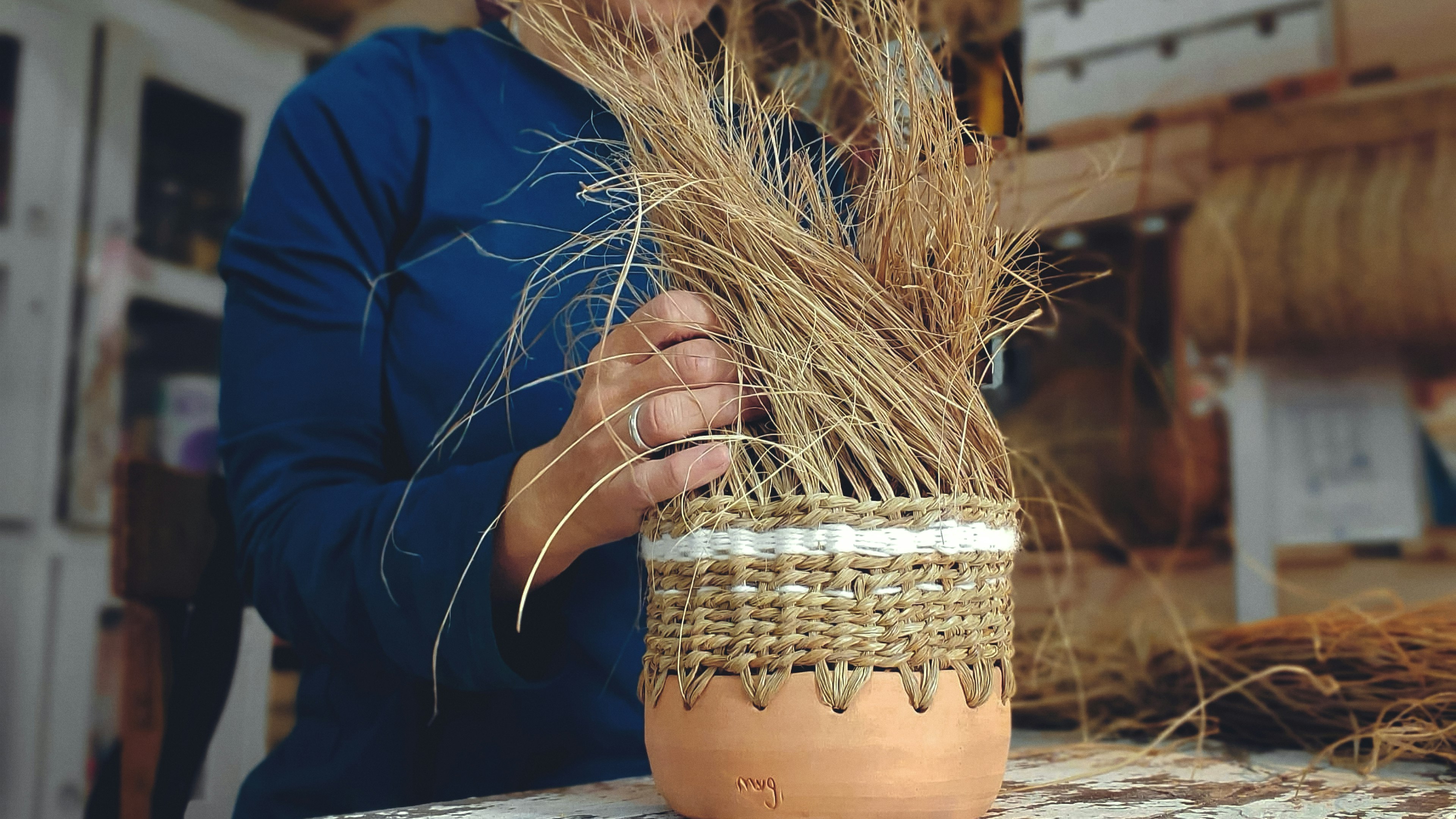 The historic Mijas Pueblo, perched in the hills, is known for its whitewashed houses, flower-filled balconies, and sweeping views. It’s steeped in Andalusian culture, with small family-run restaurants, artisan workshops, and a strong tradition of crafts like ceramics and esparto weaving. The wild esparto grass Sonia works with grows naturally throughout the area. Once used for generations in everyday tools, it nearly disappeared with the arrival of plastic. Today, it represents both a return to heritage and a sustainable path forward.