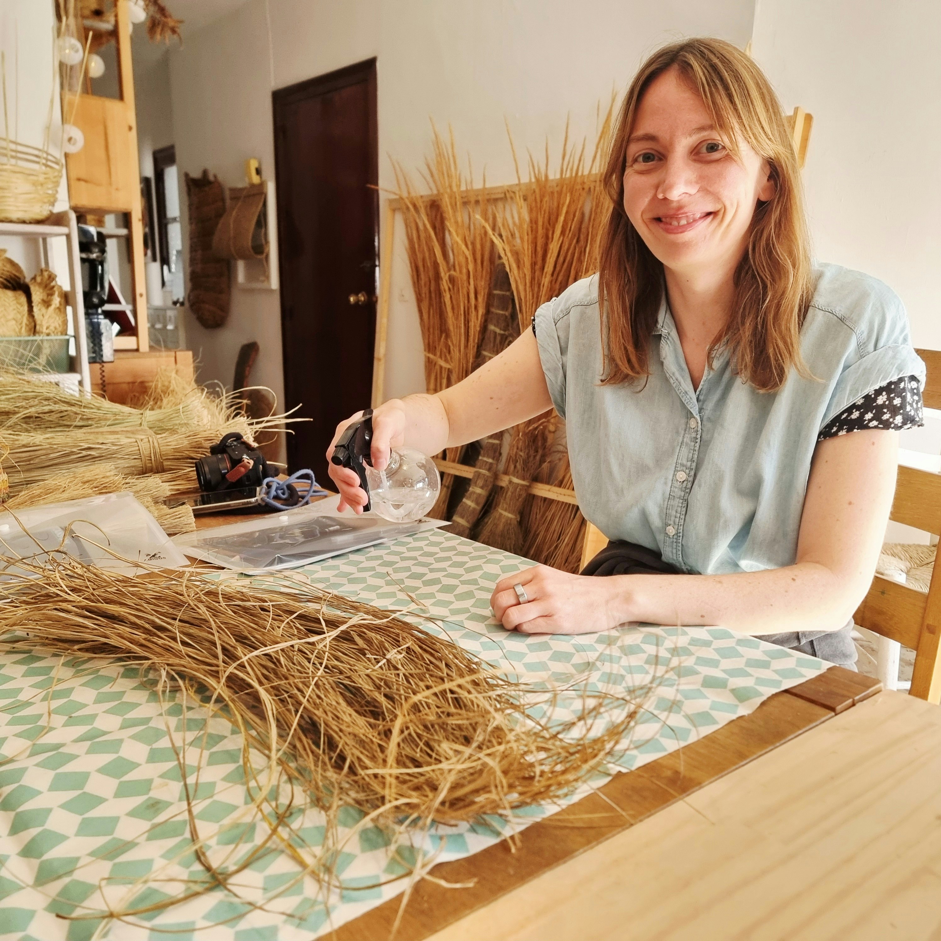 Sonia trained under Francisco Tamayo Moreno, the last traditional esparto master in Mijas, immersing herself in its meticulous techniques. Today, she brings a fresh sensibility to this heritage craft, combining pleita braids, recincho ropework, and plant-based dyes like turmeric, spirulina, and palo campeche. Her work—shaped entirely by hand and deeply in sync with the seasons—blurs the lines between function and sculpture, yielding baskets, organic forms, and even handmade paper.