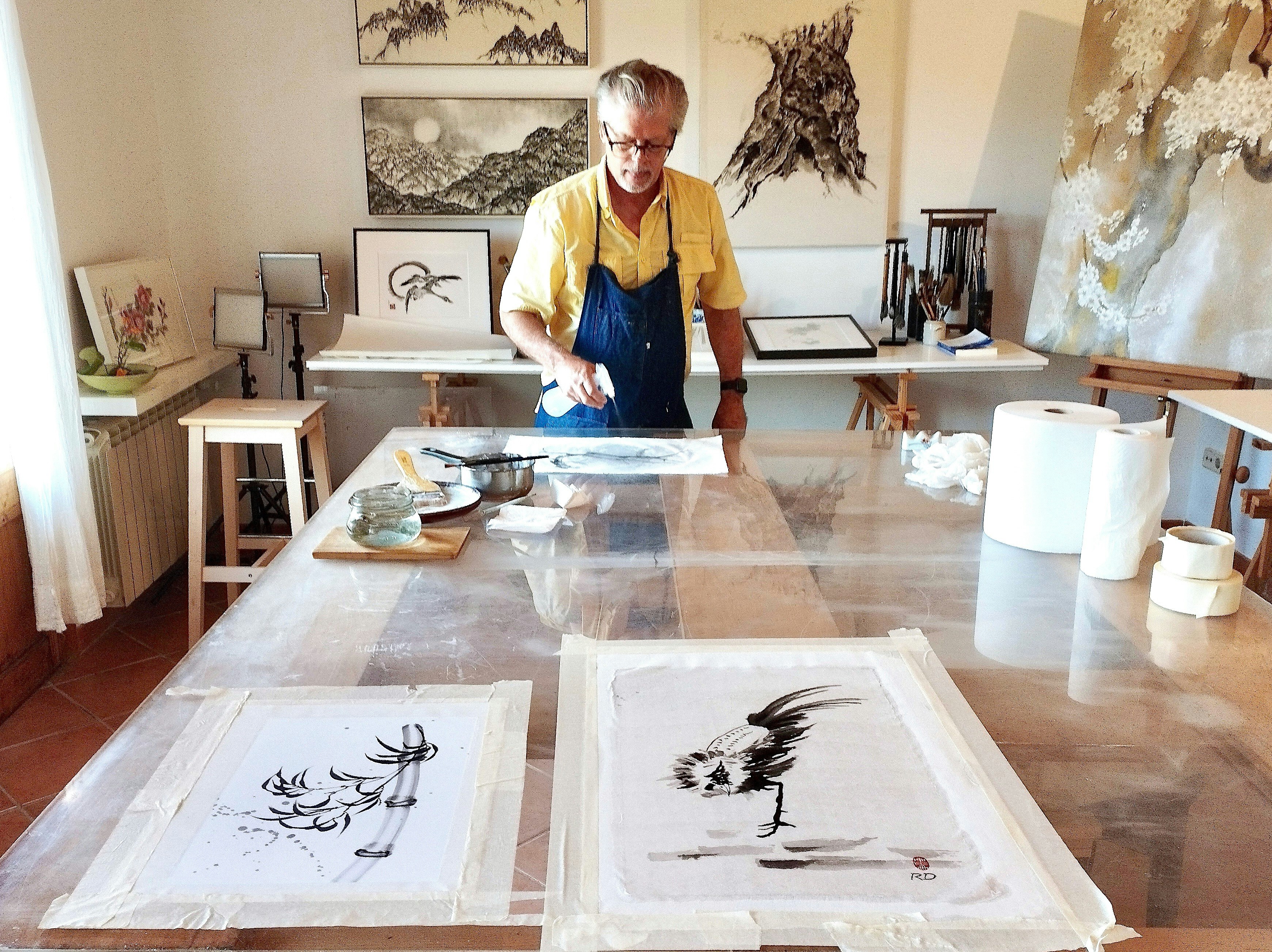 Talia is an artist and teacher of Japanese ink painting with over 20 years of experience. She studied with Japanese master artists and calligrapher in London and Japan for over seven years. Learning and viewing original art in temples, shrines, private collections and museums was an essential part of the journey. She regards the masters of the past as her teachers of today.