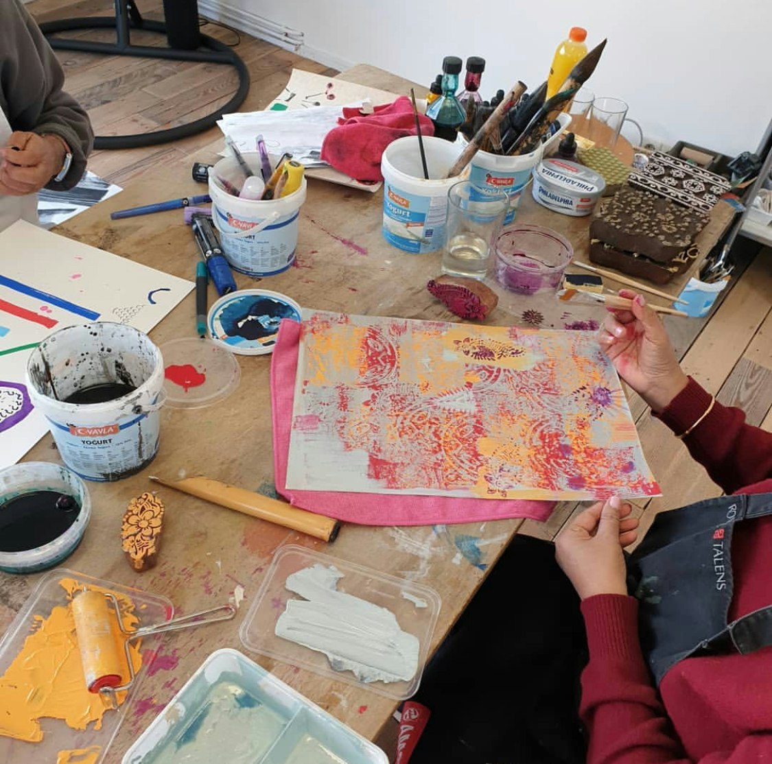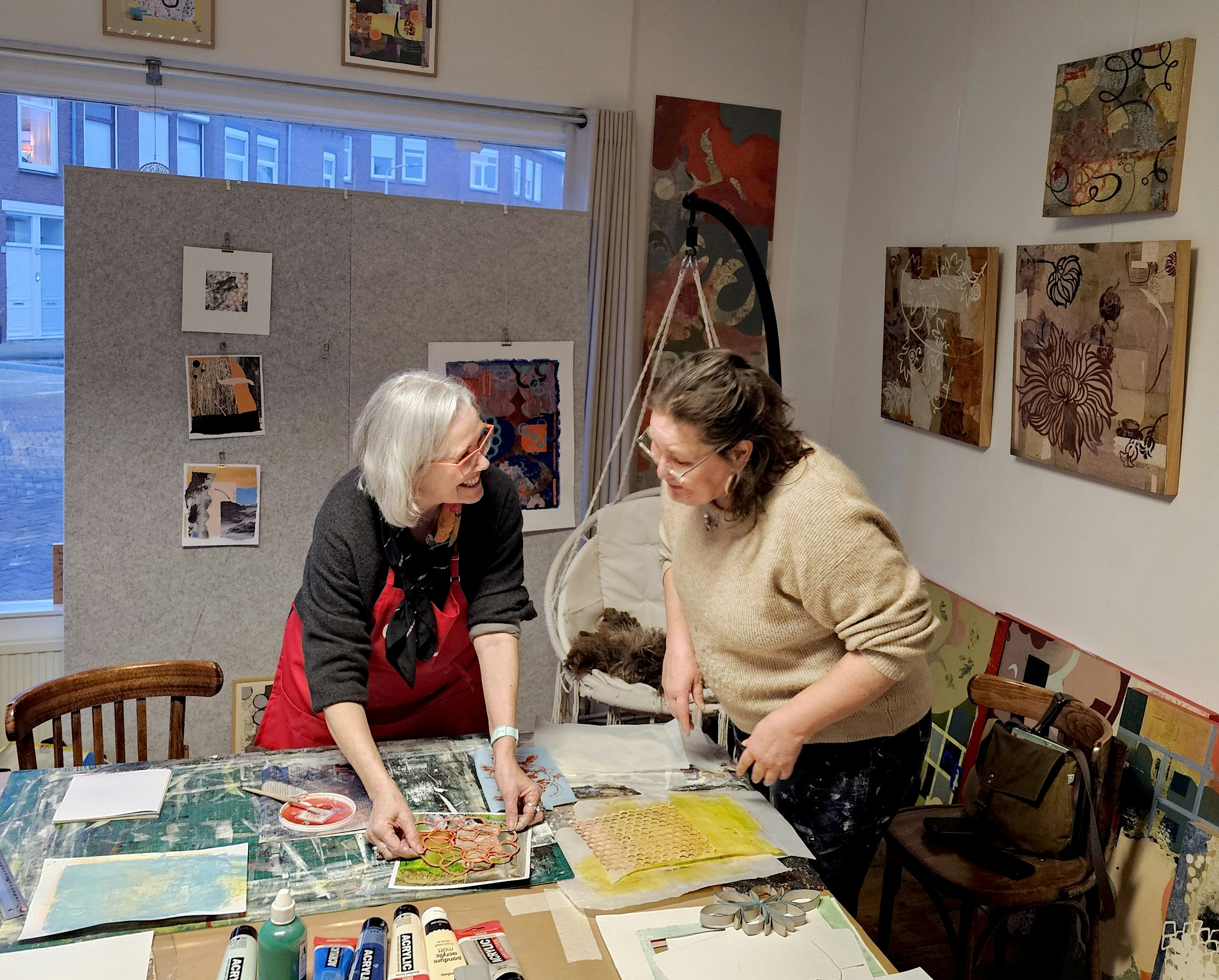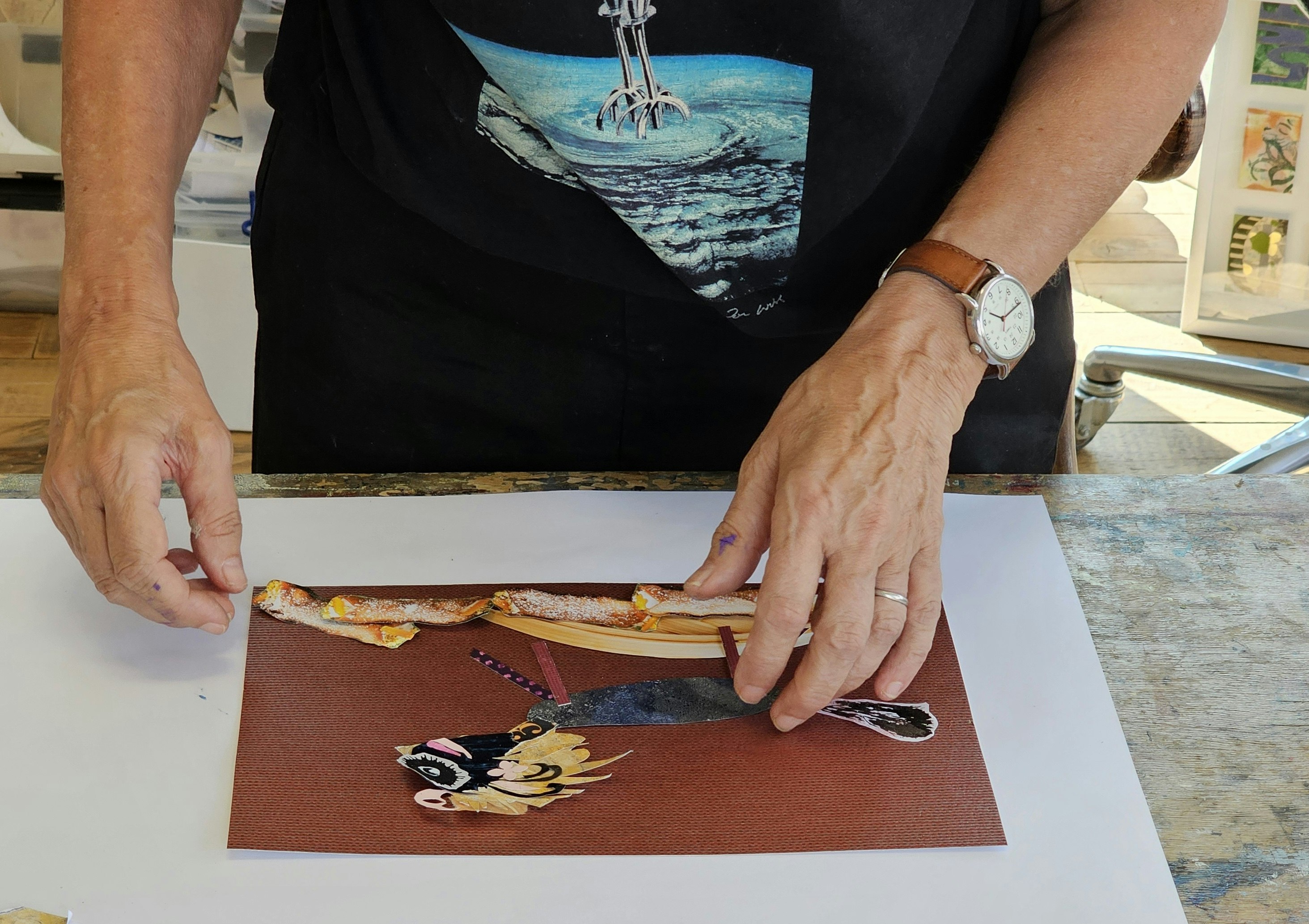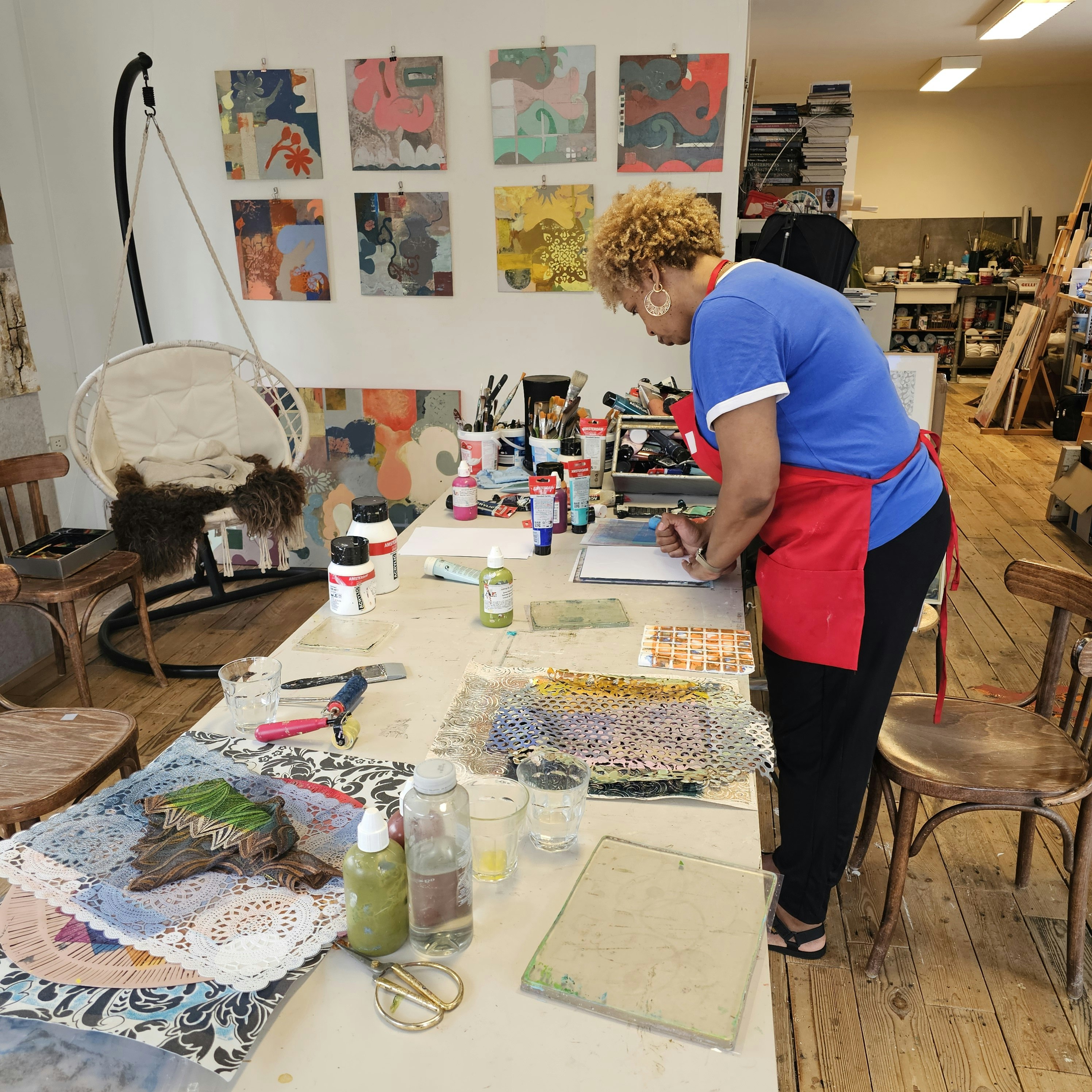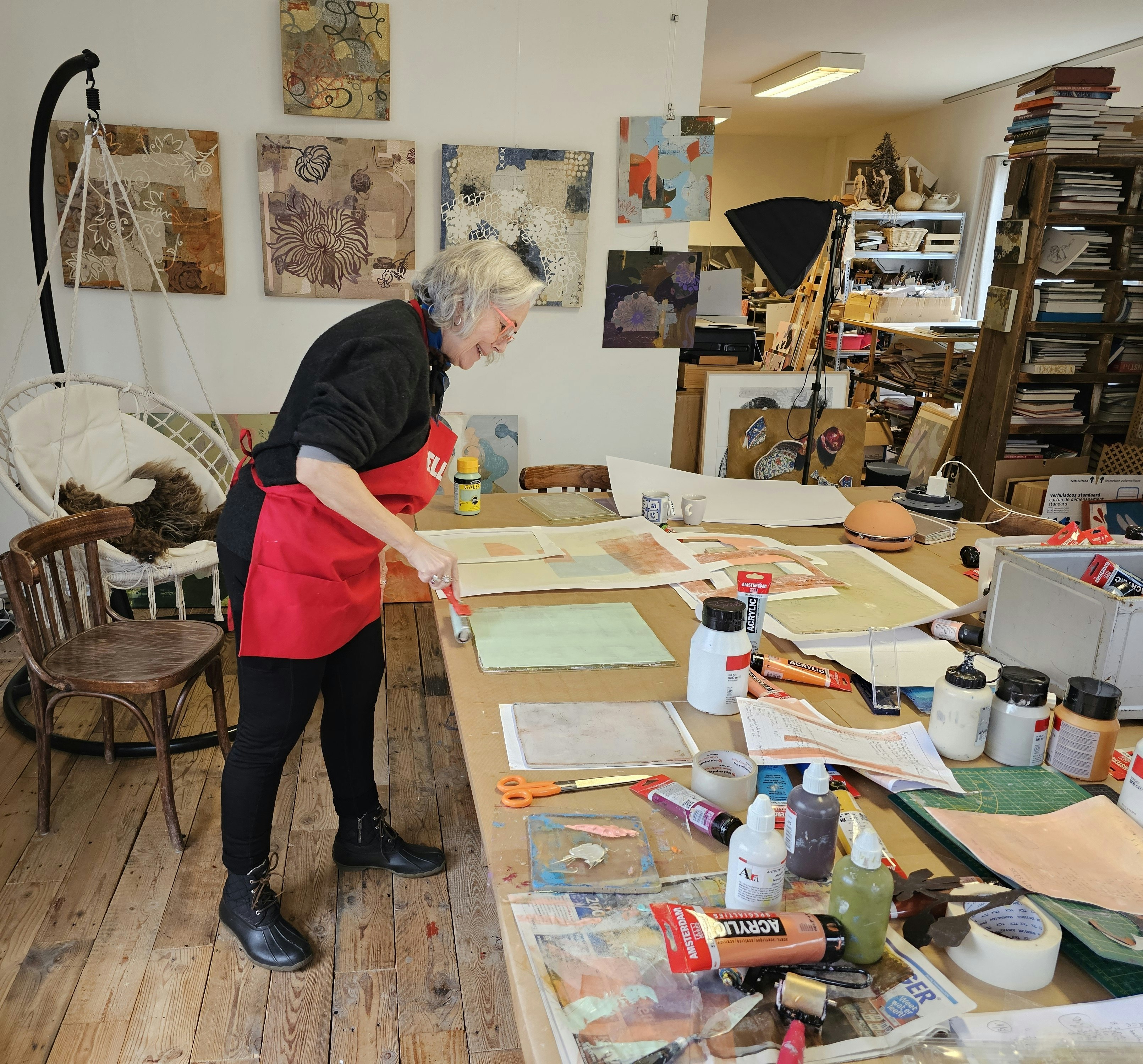 - Deep dive into hand printing collage papers using Gelli Plate and various techniques.