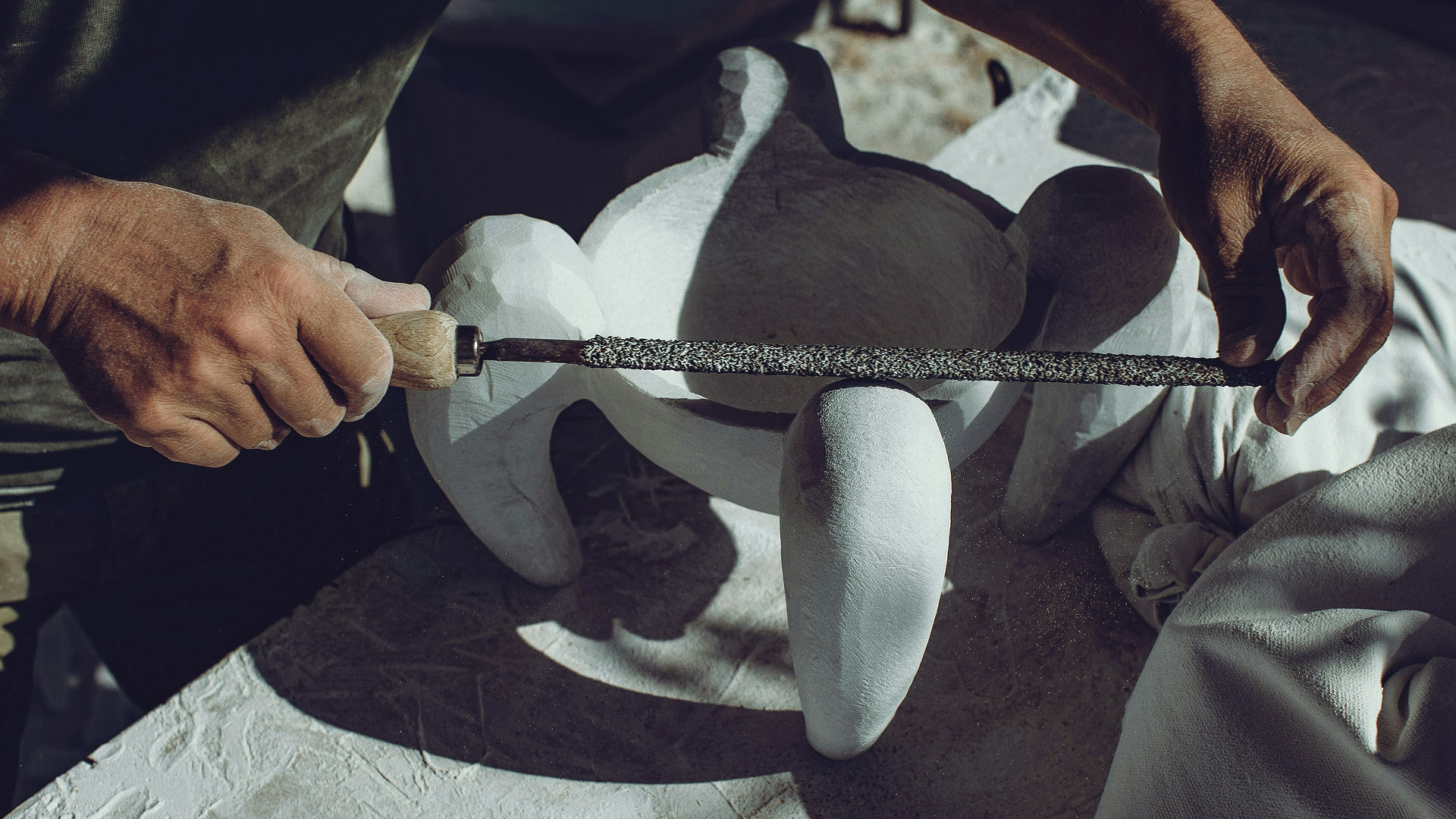The rhythms of island life, the wind, and the sun infuse his practice with a quiet sense of place. Tom now invites you into his breezy, open-air atelier to explore the timeless craft of marble carving and uncover something ancient in the stone—and in yourself.