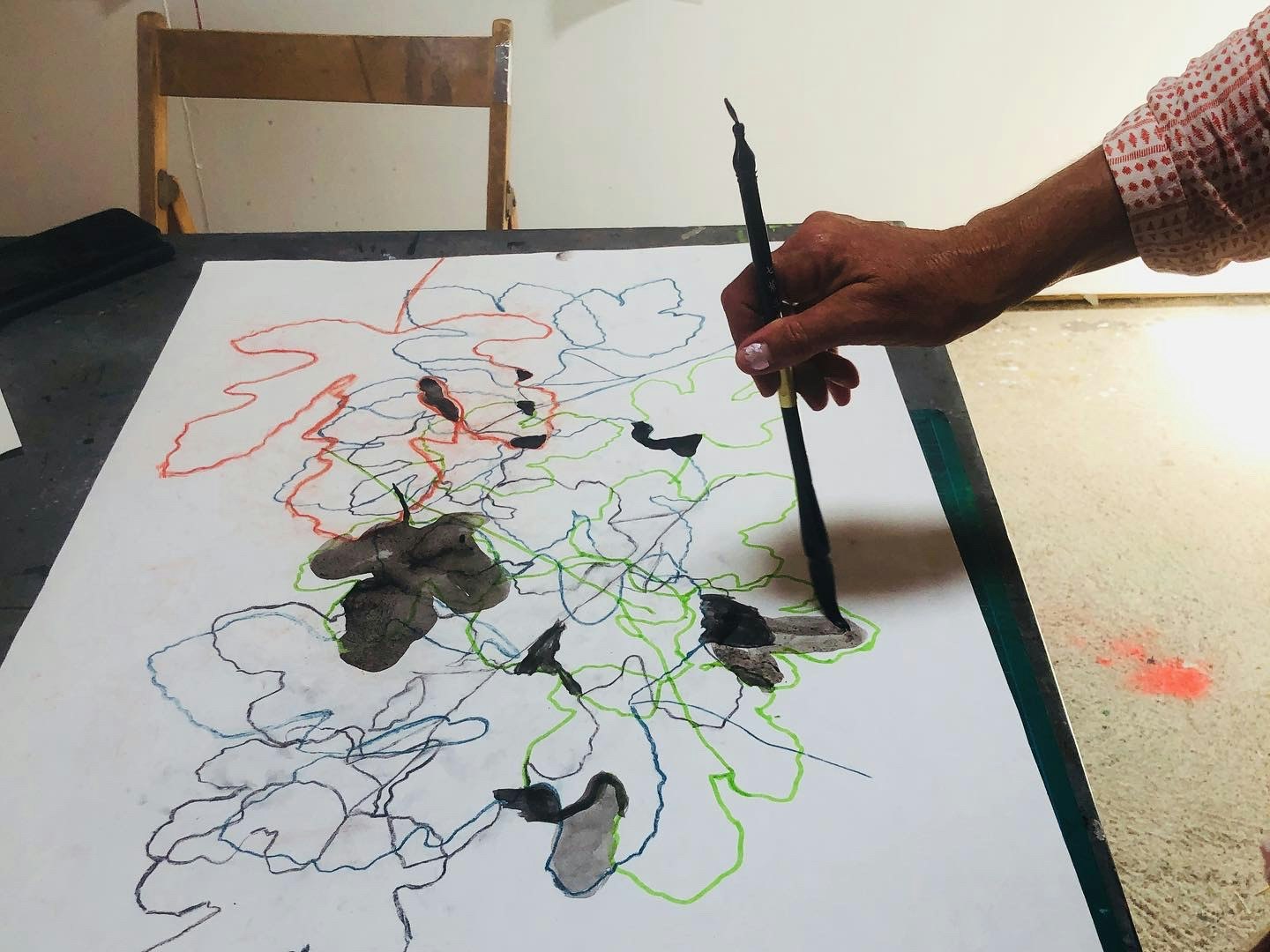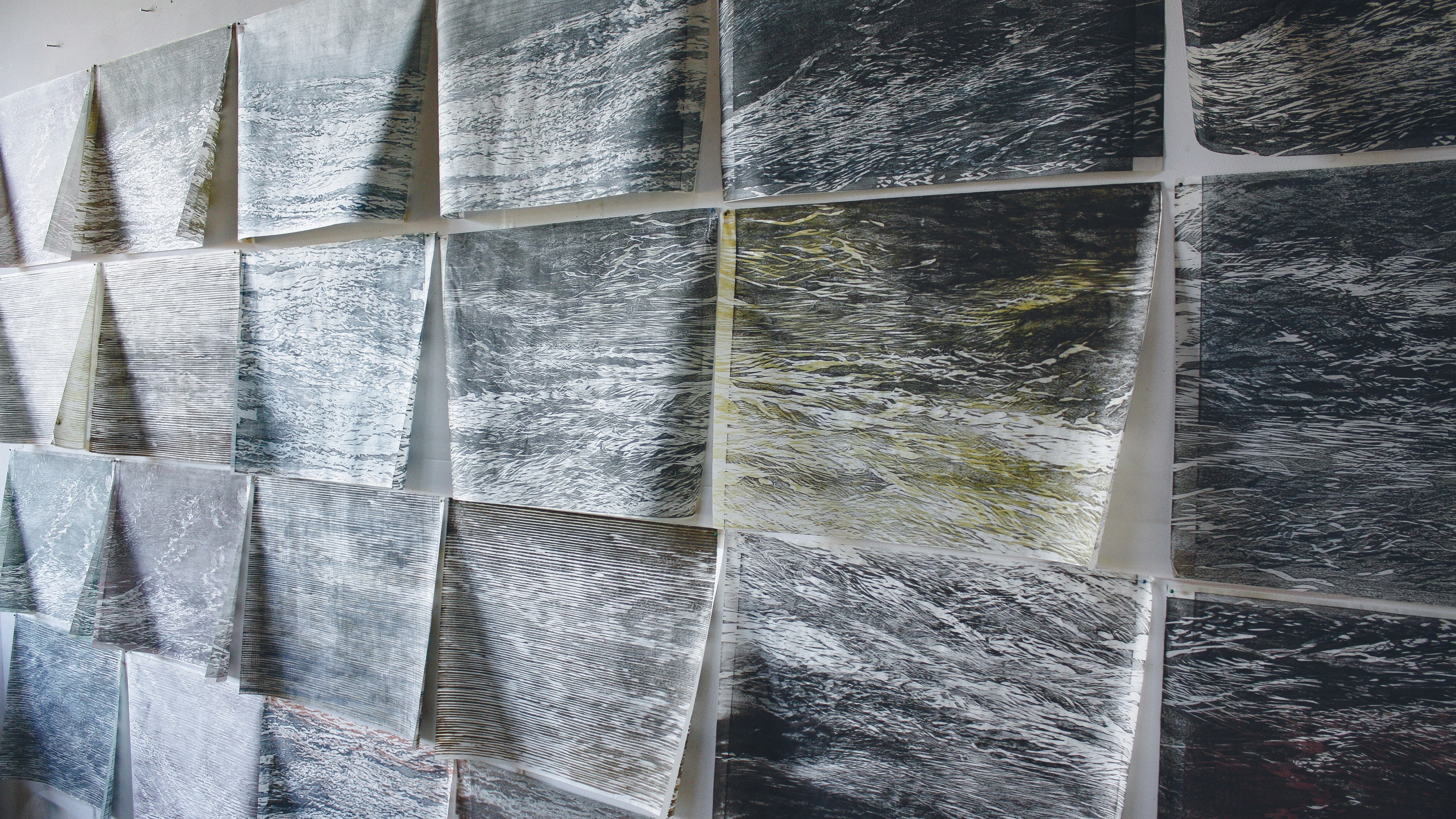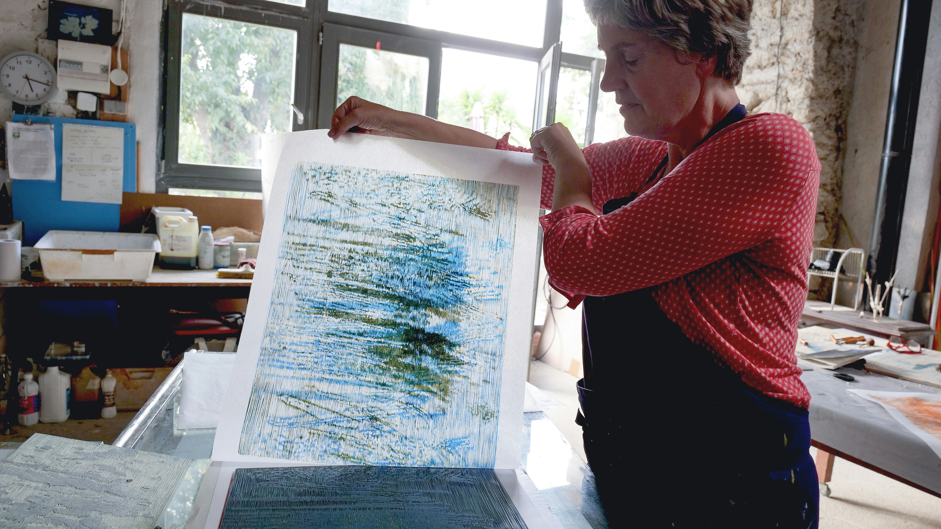Victoria is an accomplished printmaker who explores landscapes through woodcuts, etchings, and large installations inspired from birdsongs. She works from her charming French countryside studio, drawing inspiration from outdoor walks and recorded sounds at dawn or dusk near her home.
