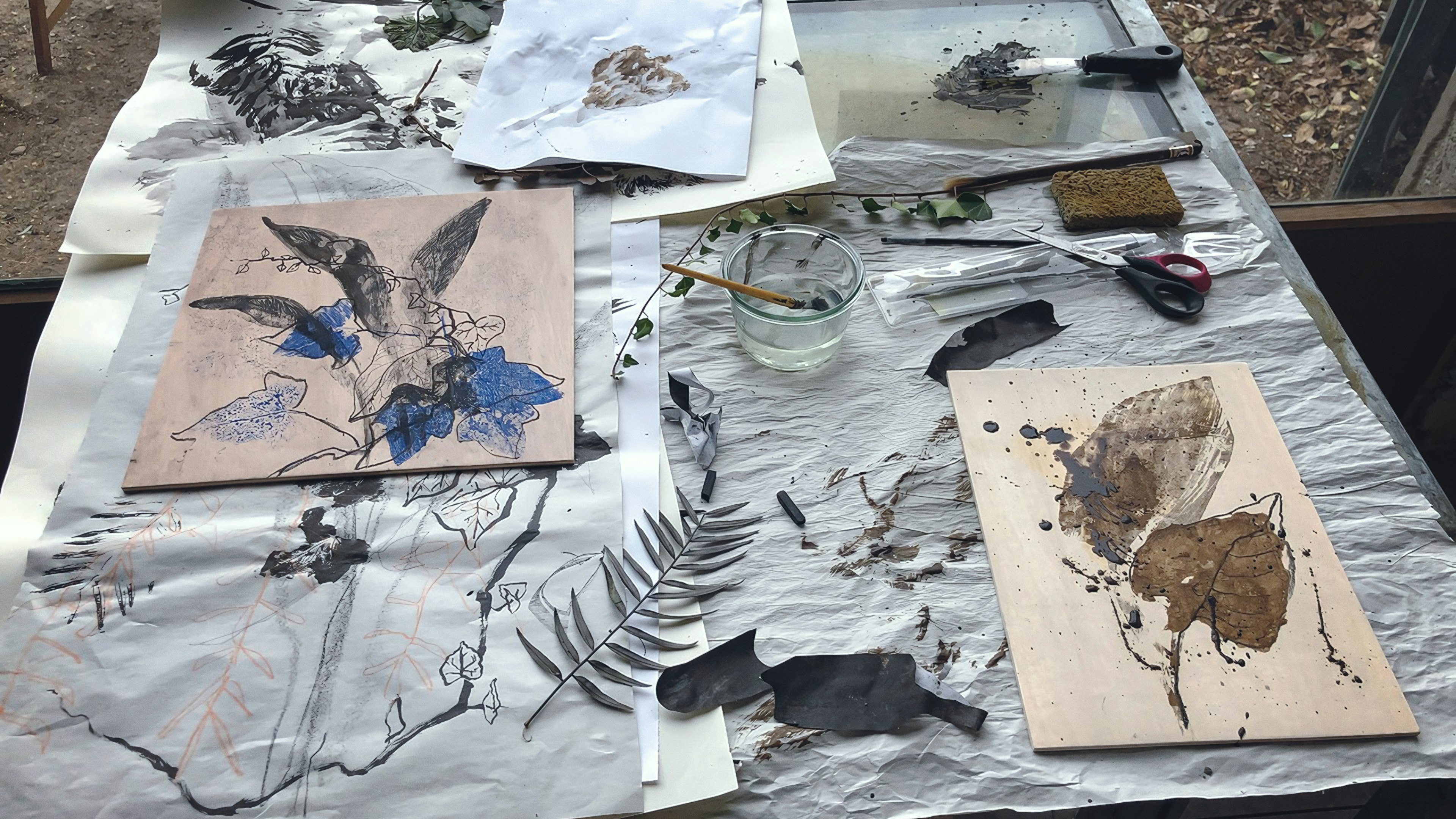 - Explore techniques for plate registration, textured mark creation, pigmented ink printing, and watercolor mixing to create prints.