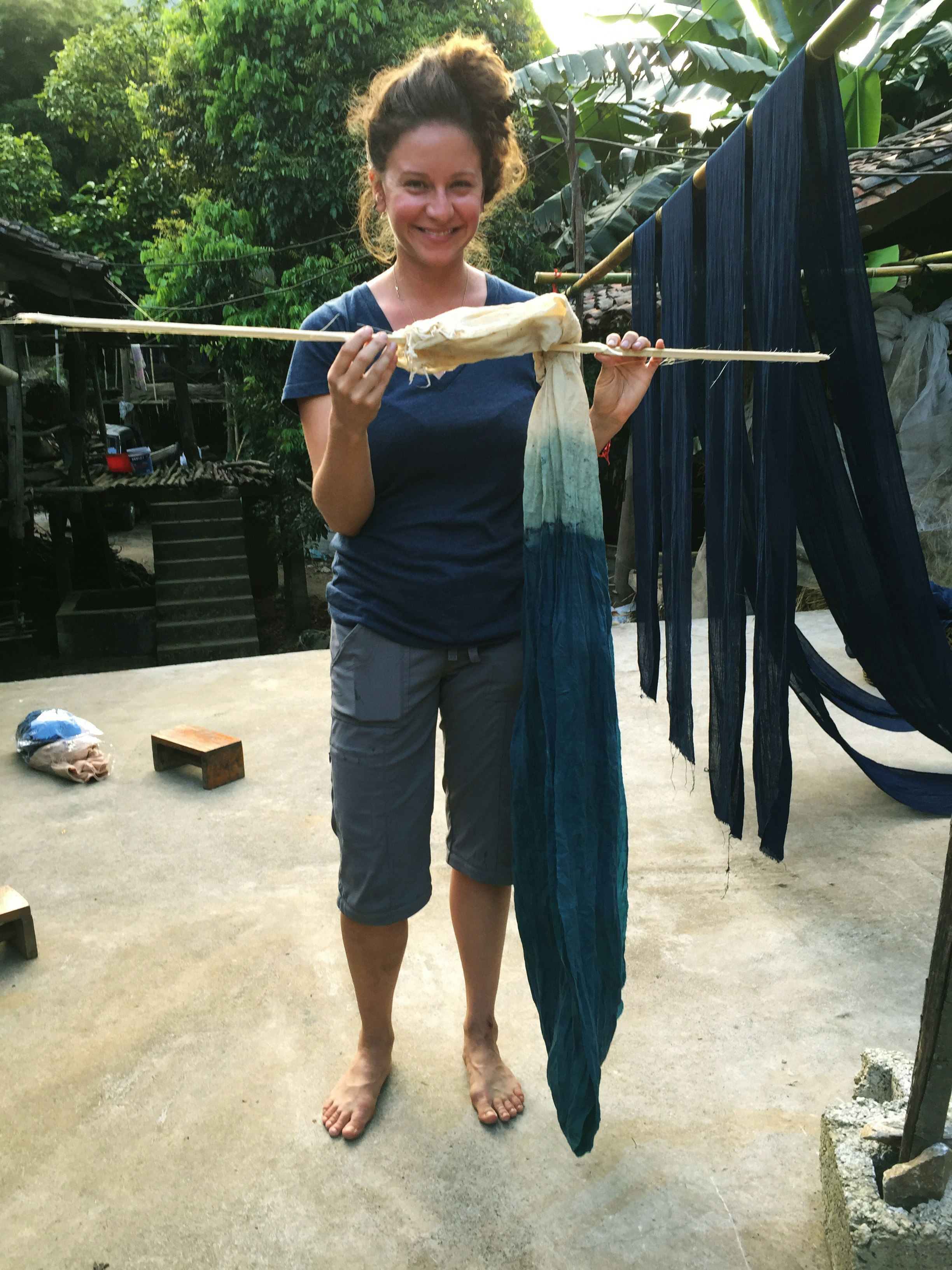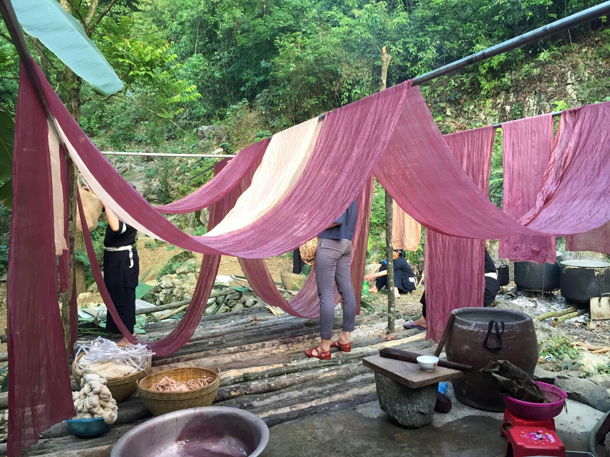 Vu's work is beautiful, and learning about natural dyeing is one of the first steps in our journey to learn more and more about sustainable and organic fabrics and clothing production. My fondest memory was when we were heading back to the village and she veered off the main road onto a field. I was on the second motorbike, and we followed. She saw some of the other ladies she works with herding t Read more