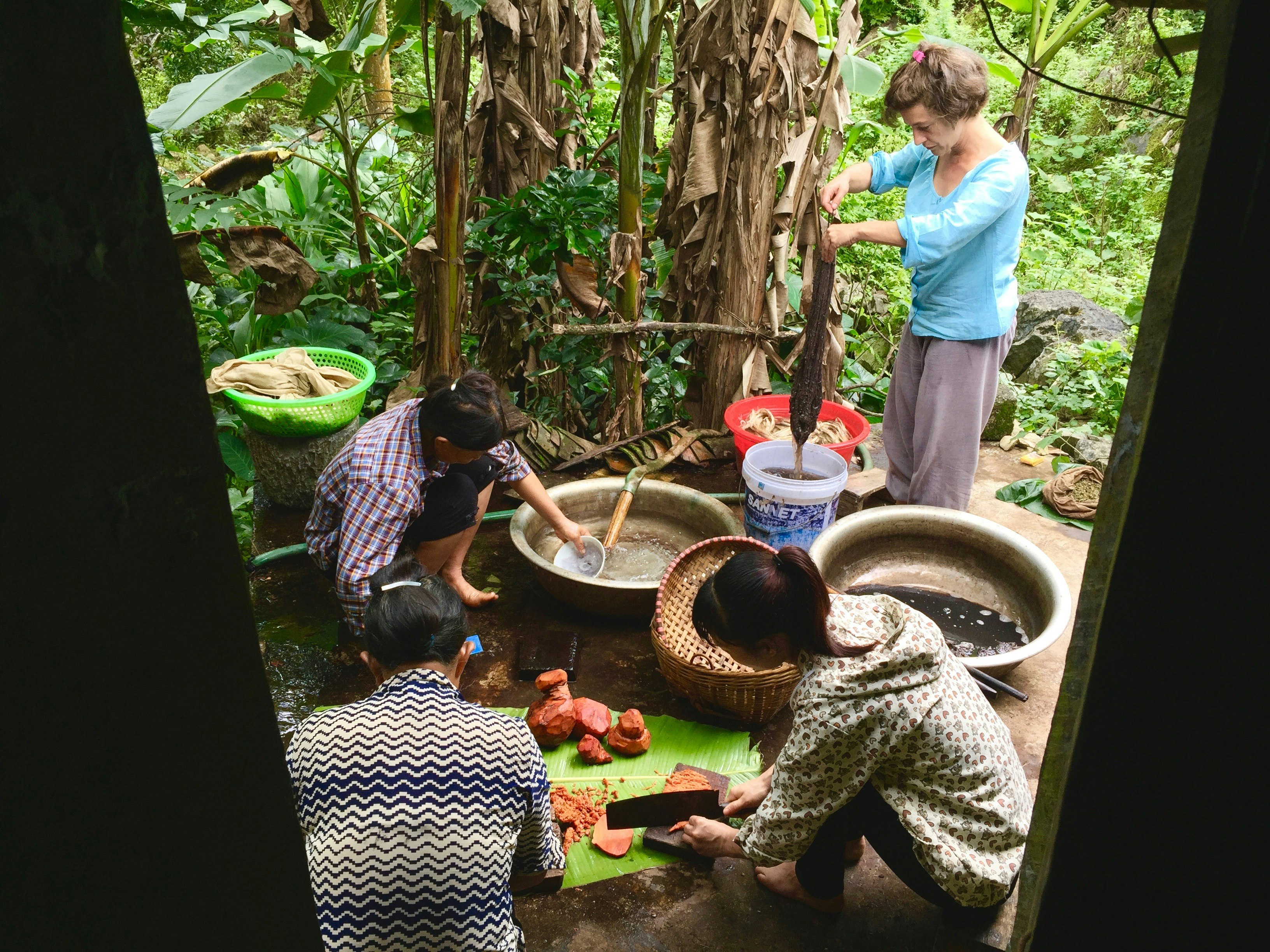 I passed memorable days with Thao sharing our days with the women in the little village of Cao Bang, not far from the Chinese border. The experience was wonderful, not only because the magic of the indigo process, but by the experience of living the calm and simplicity of the traditional way of life, spending a week leaving in a rural area with out any burden imposed on us by the western life. Goi Read more